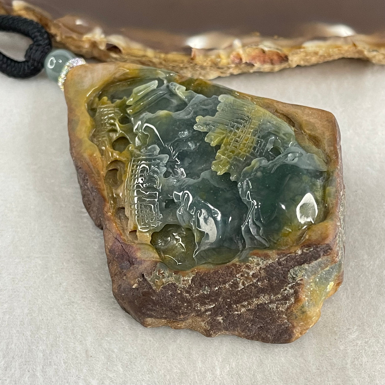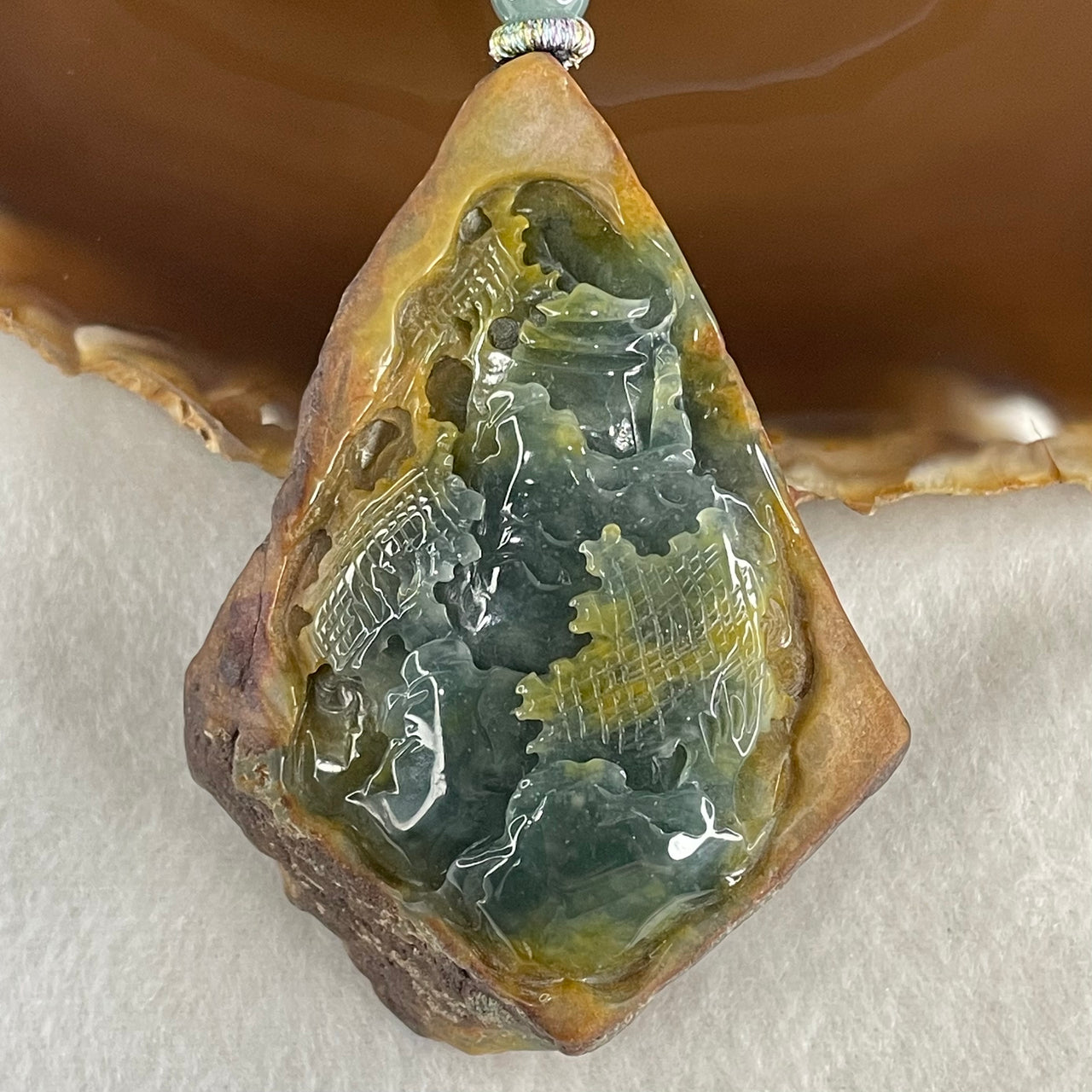 Type A Brown Blueish Green with Yellow Jadeite Shan Shui with Guiren Benefactor Pendant 93.95g 66.8 by 49.0 by 13.8mm$1,800.00$1,800.00Unit price / per -