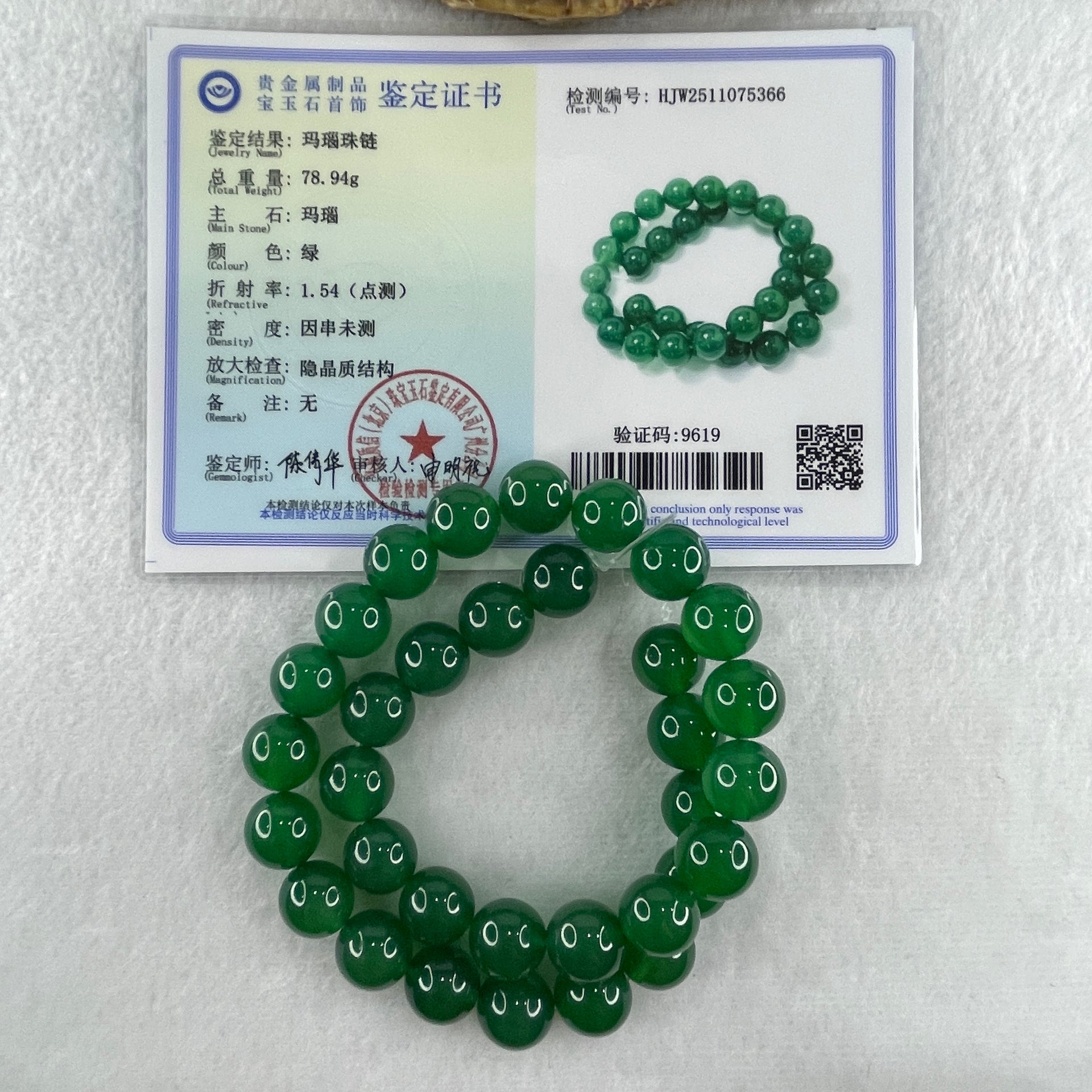 Certified Natural Green Agate Chalcedony Beads Loose Beads for Bracelet 78.94g 39cm 12.2mm 33 Beads