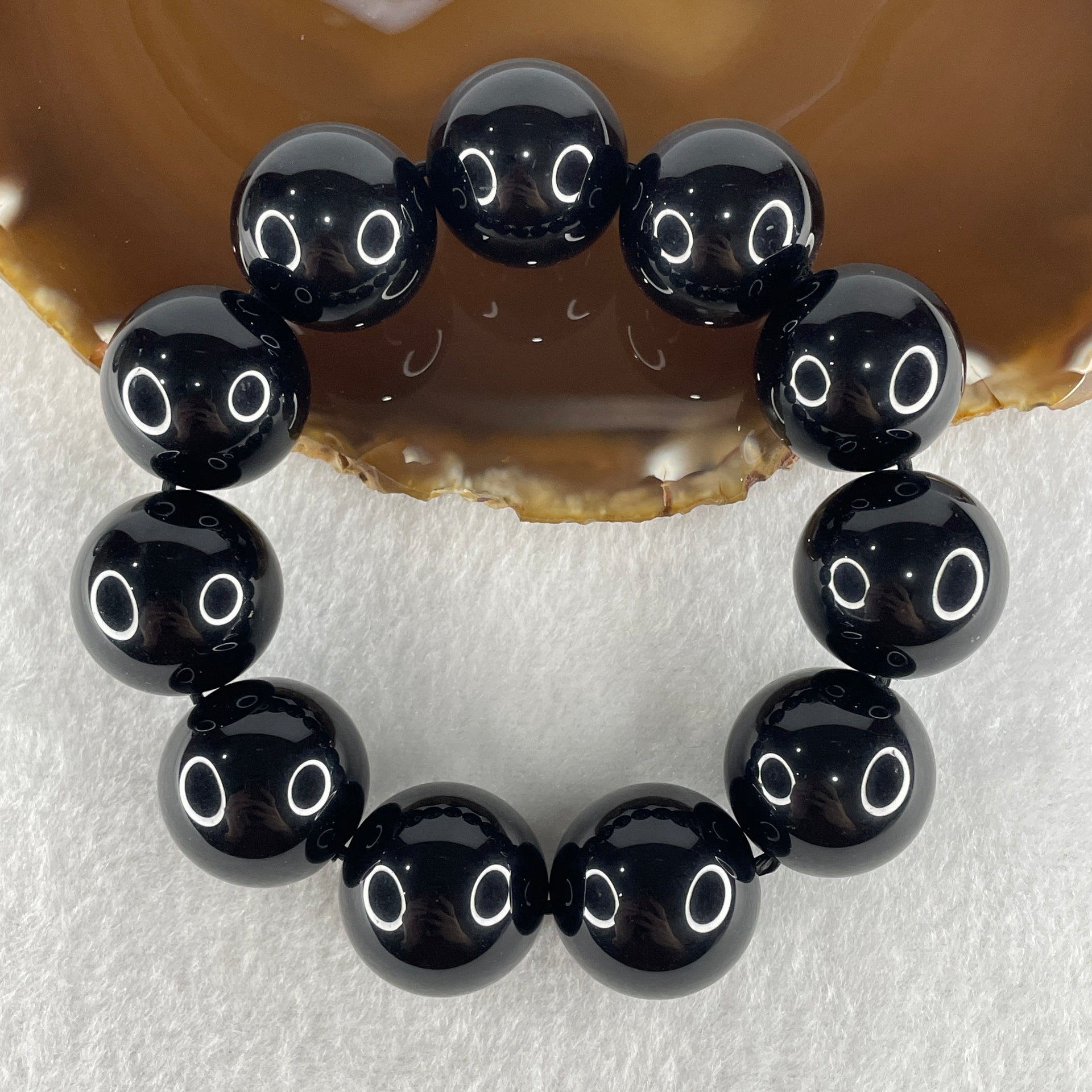 Natural Black Moldavite Meteorite Crystal Beads Bracelet 114.72g 16cm 20.4mm 11 Beads