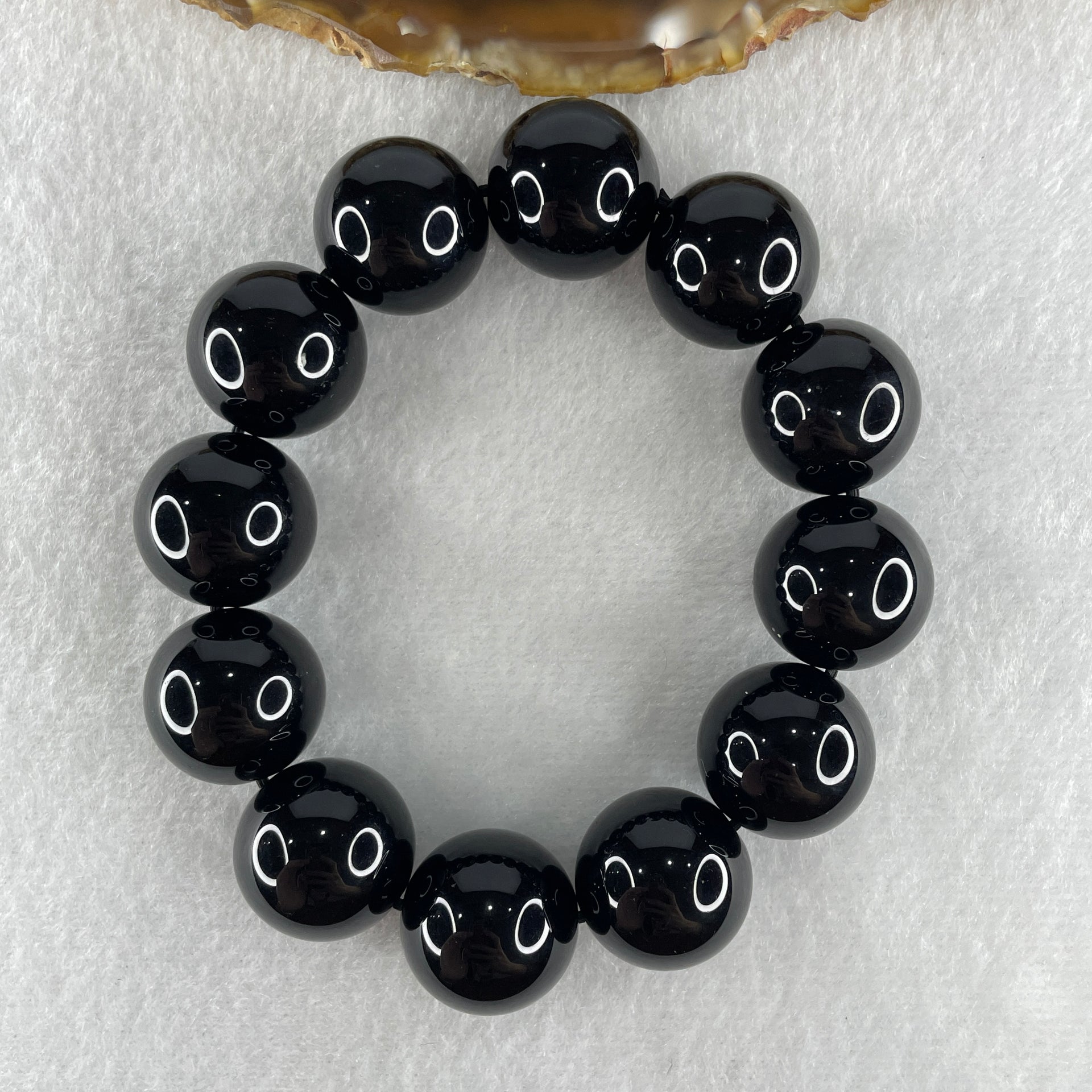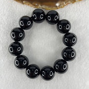 Natural Black Moldavite Meteorite Crystal Beads Bracelet 88.57g 16cm 18.3mm 12 Beads
