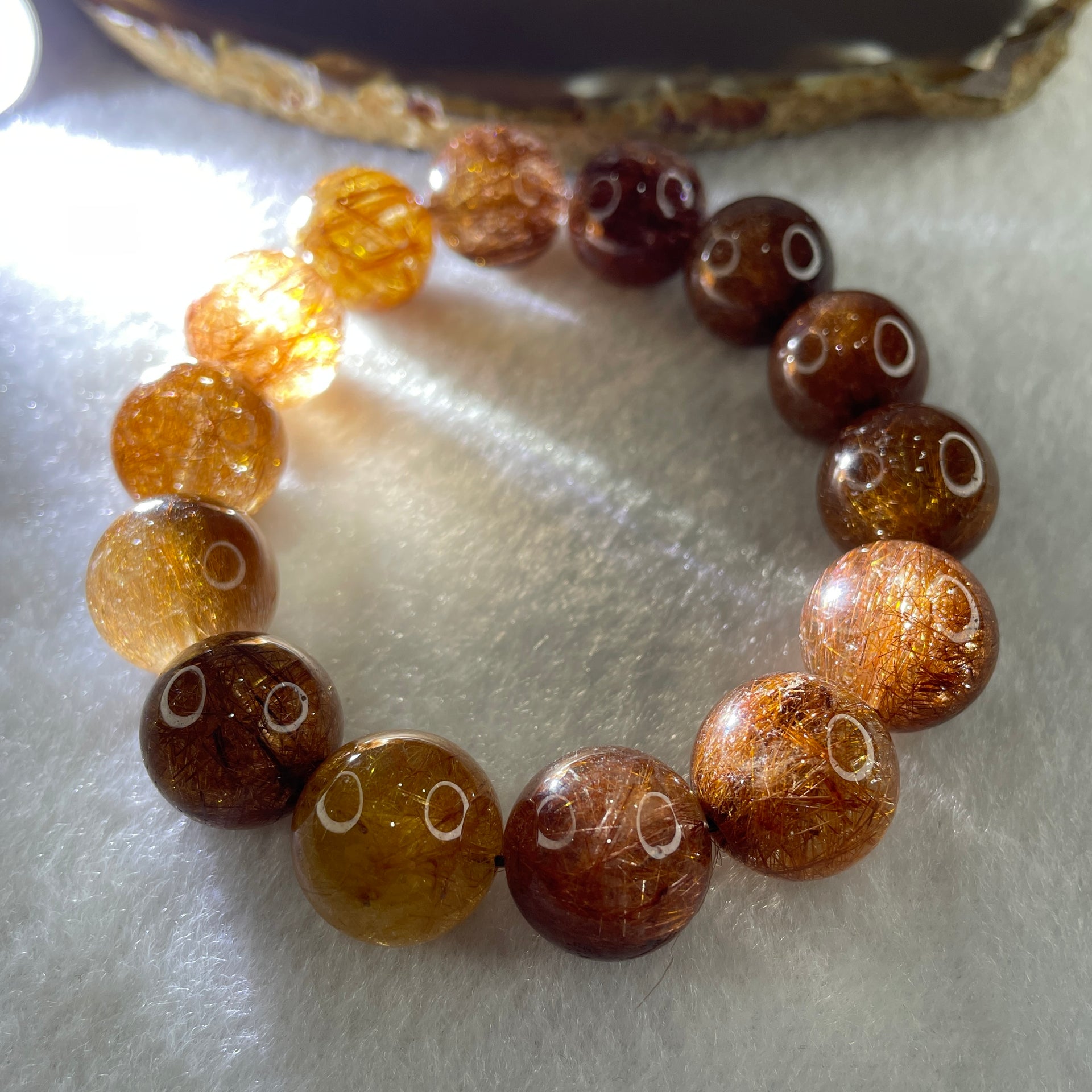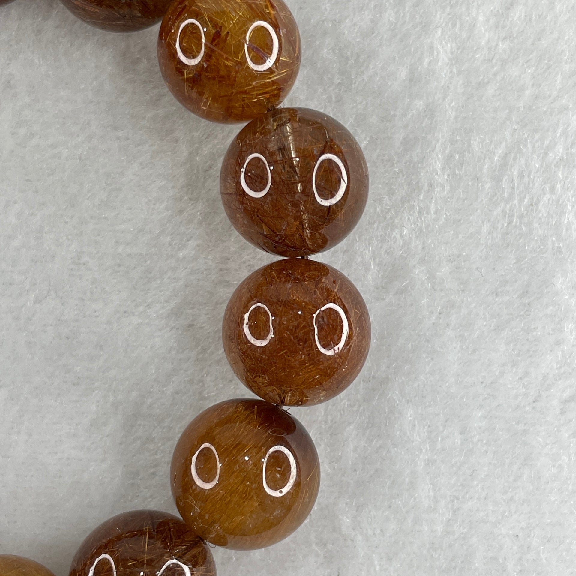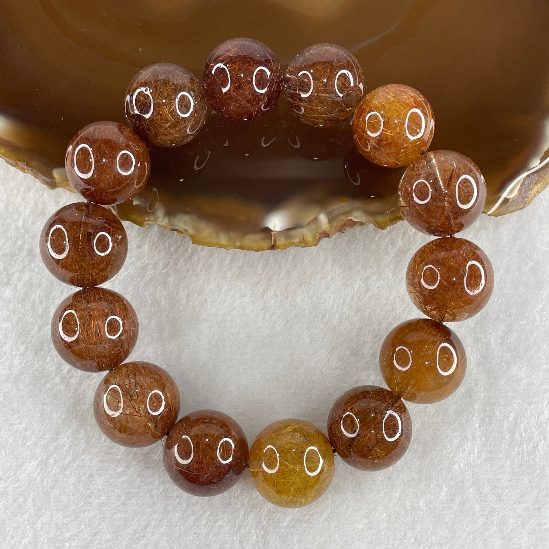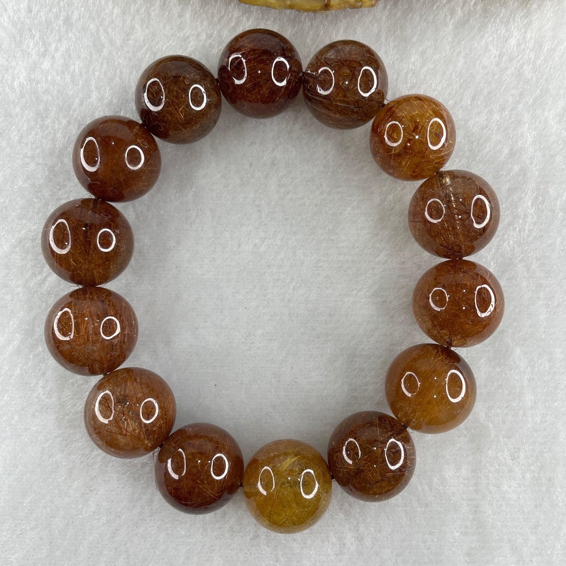 Natural Reddish Copper Rutilated Quartz Beads Bracelet 68.35g 16cm 15.4mm 14 Beads
