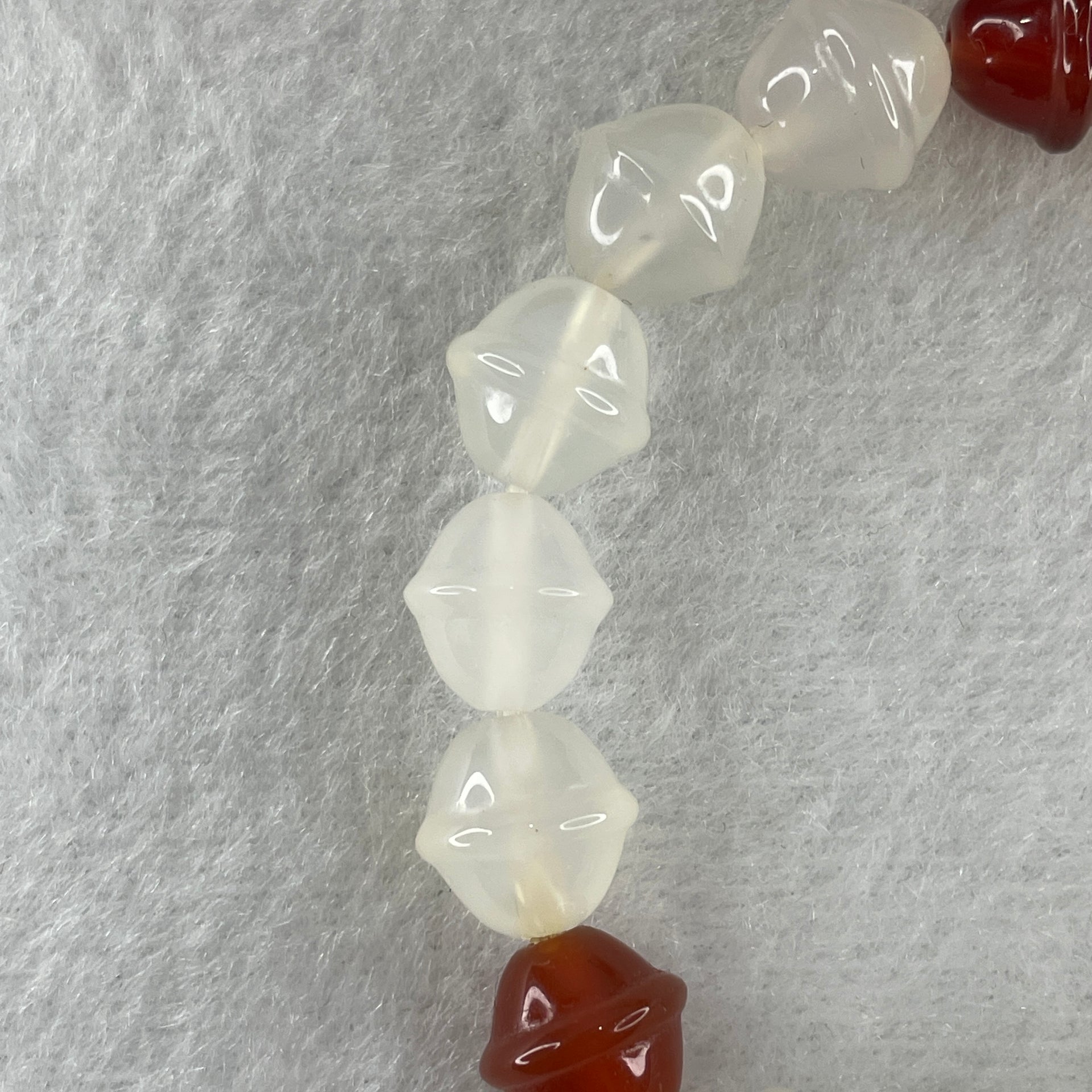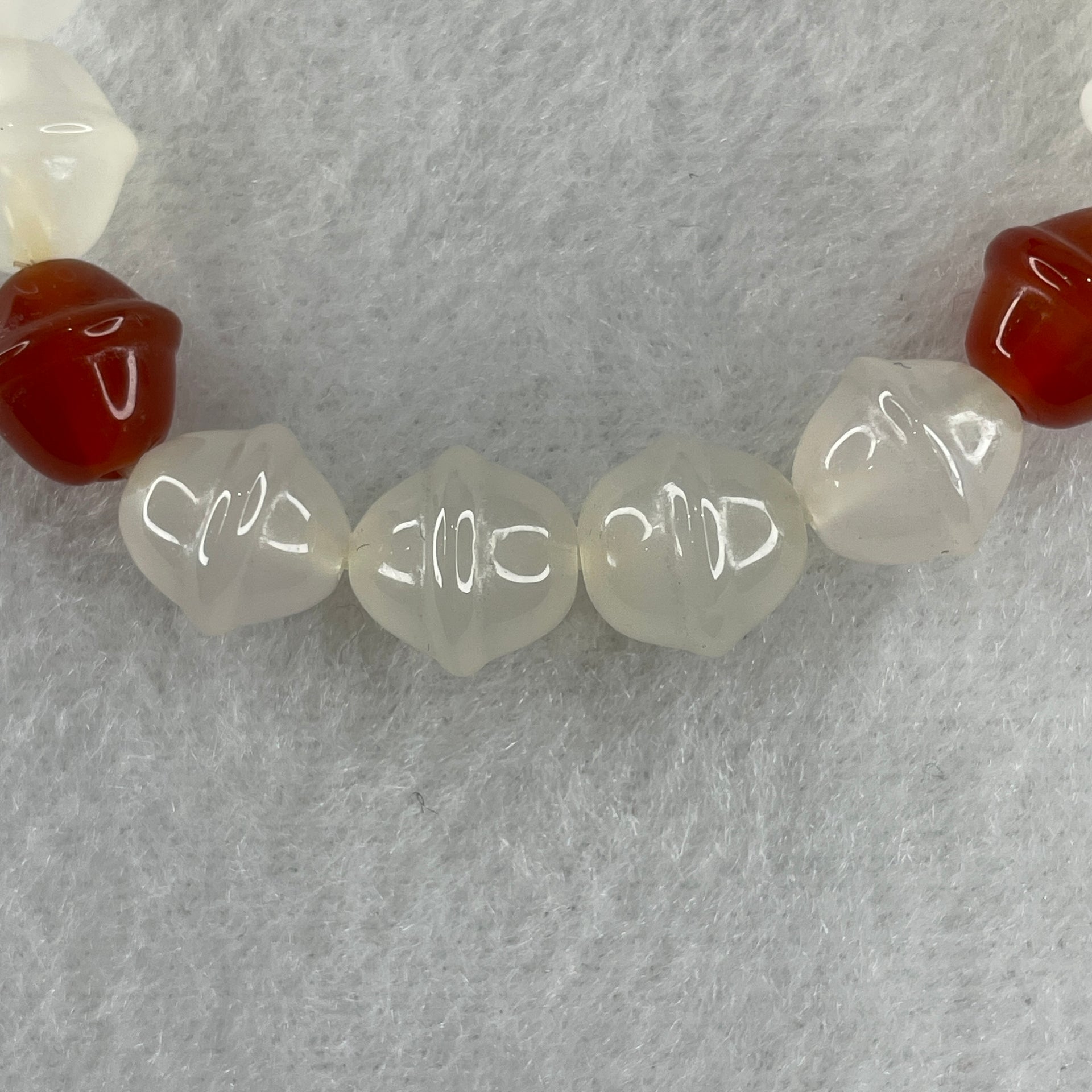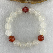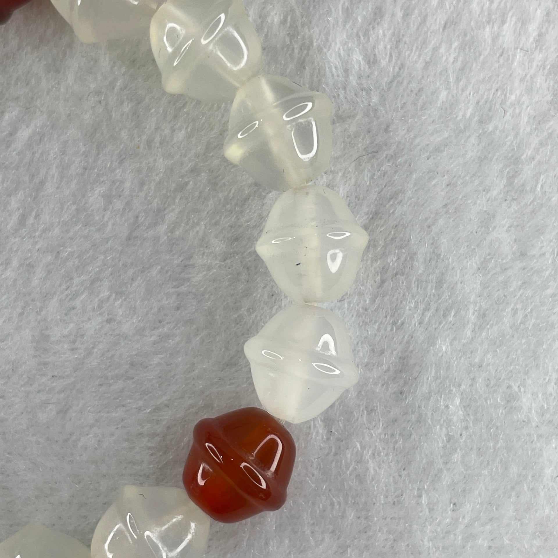 Natural White and Red Agate Chalcedony Walnut Beads Bracelet 19.06g 13.5mm 10.3mm 17 Beads
