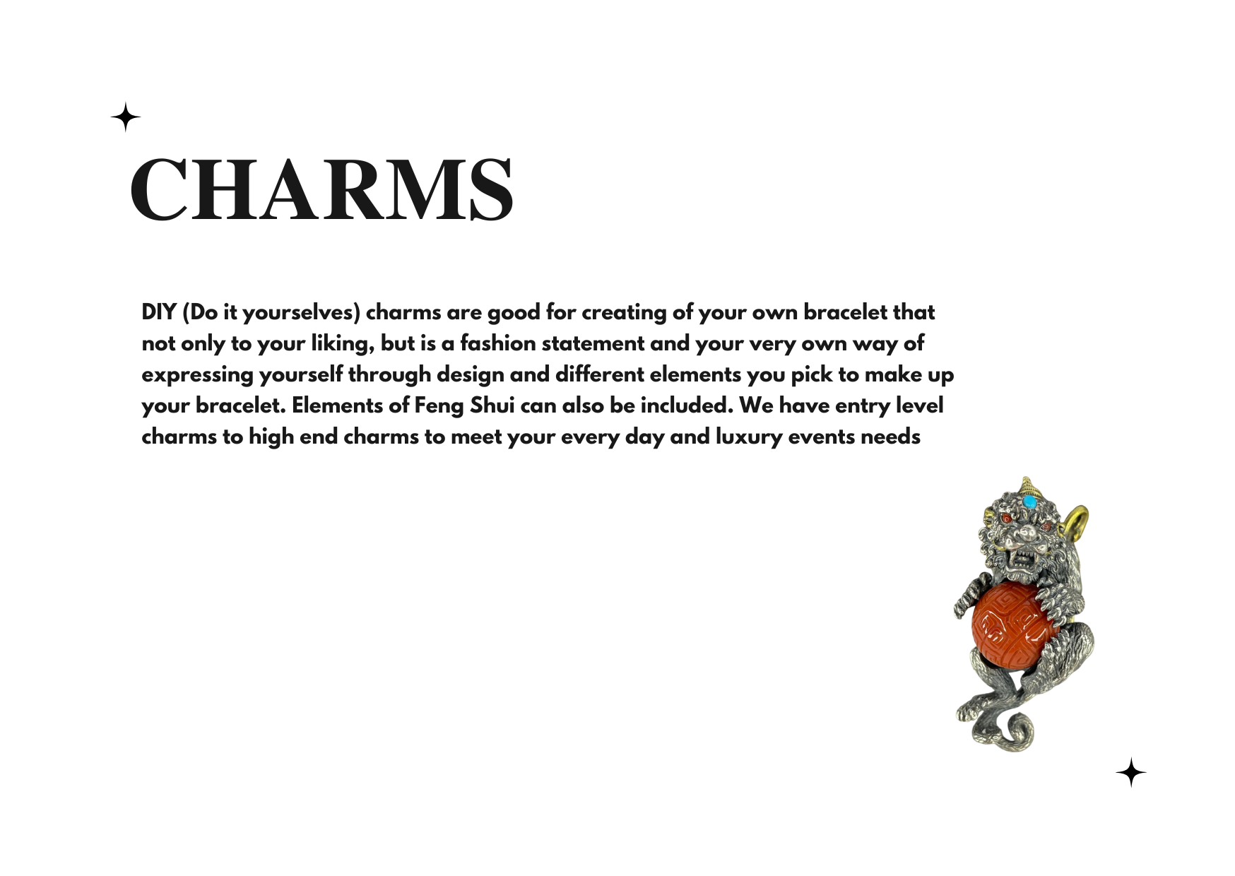DIY(自己动手)饰品非常适合制作您自己的手镯,它不仅符合您的喜好,而且是一种时尚宣言,是您通过设计和您挑选的不同元素来表达自己的方式。还可以包括风水元素。我们提供入门级饰品到高端饰品,以满足您的日常和豪华活动需求。