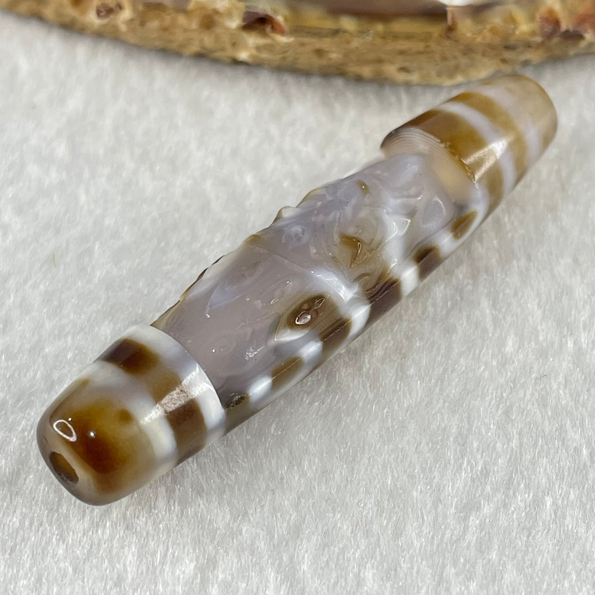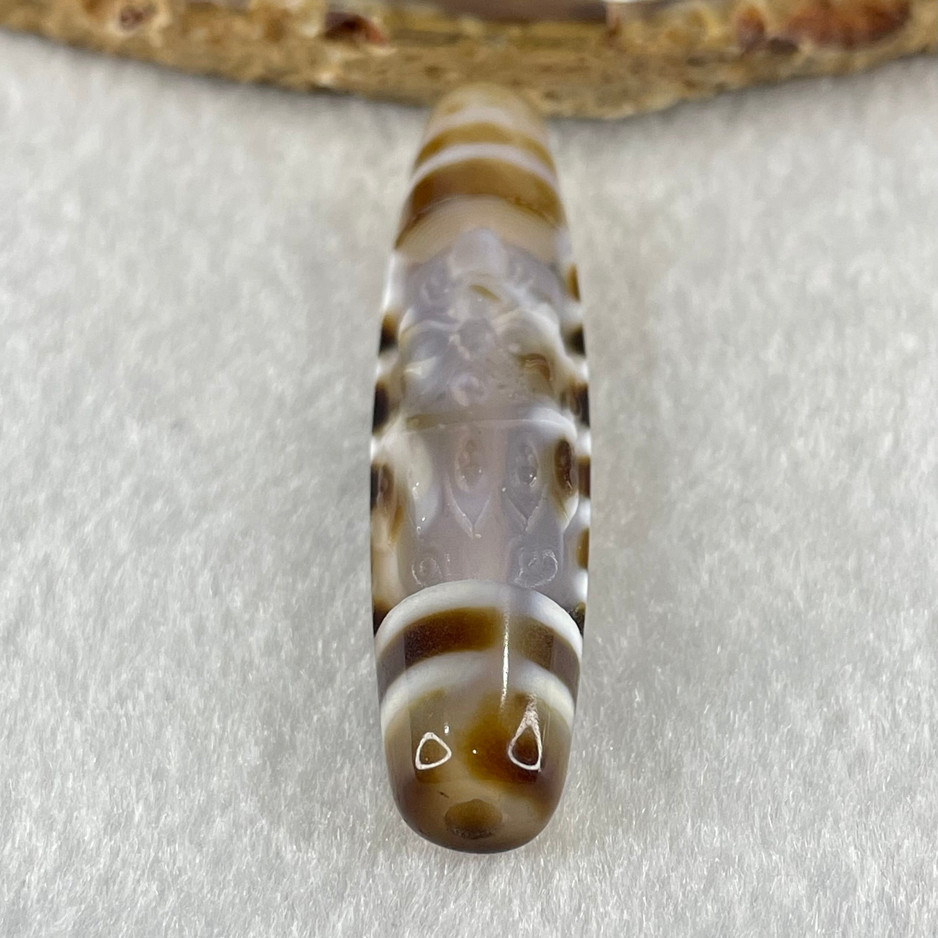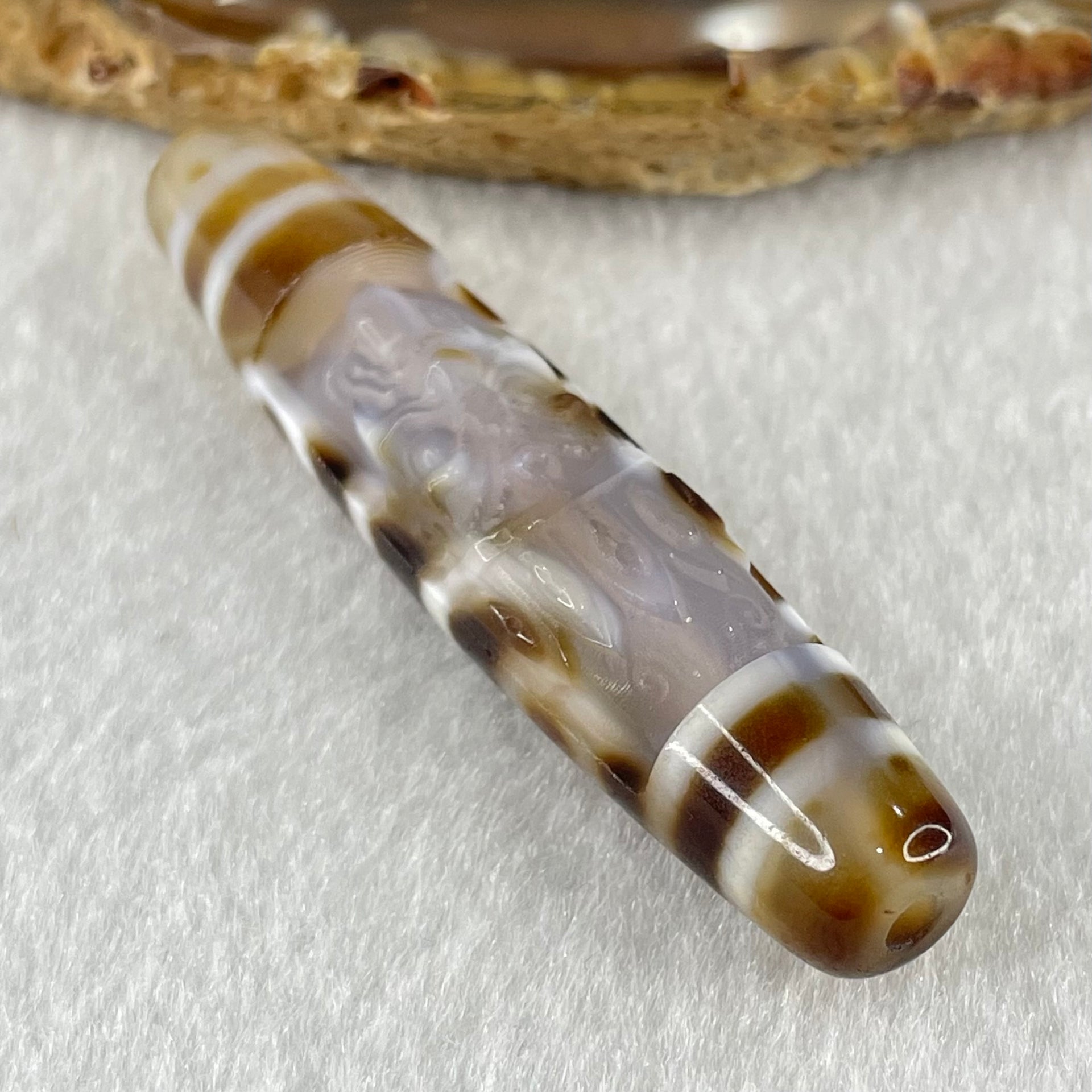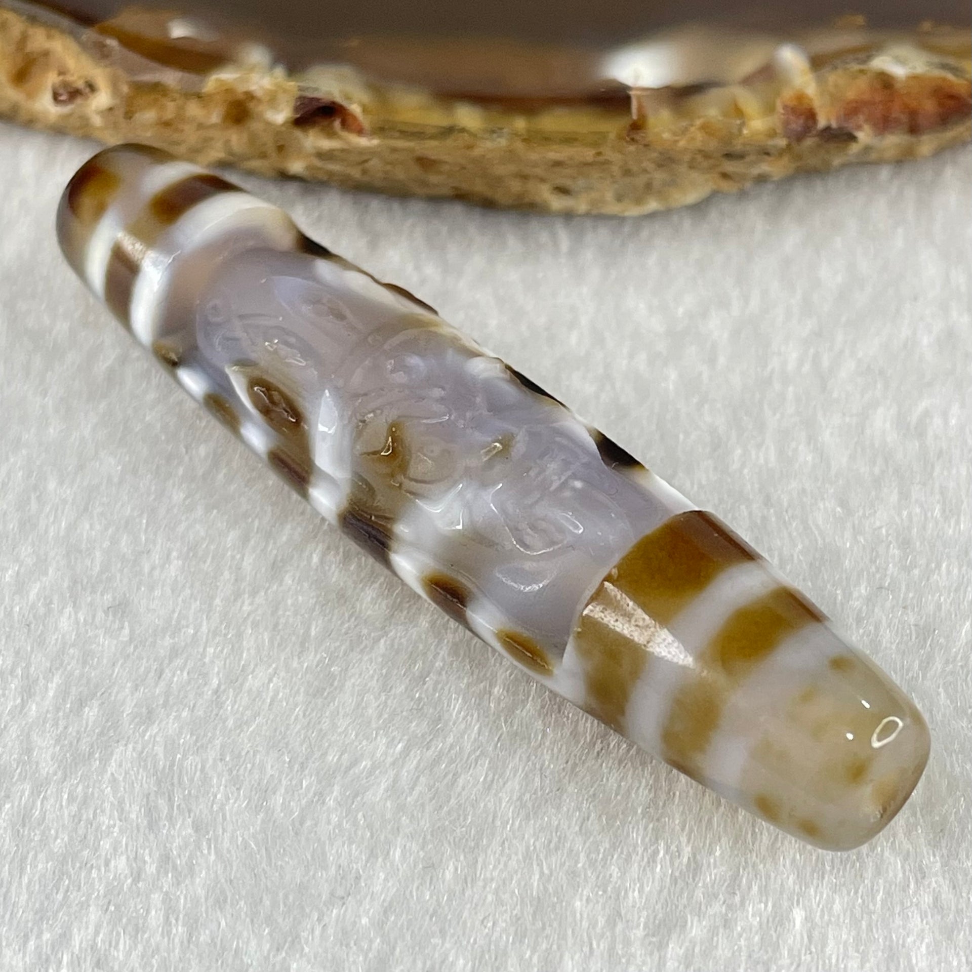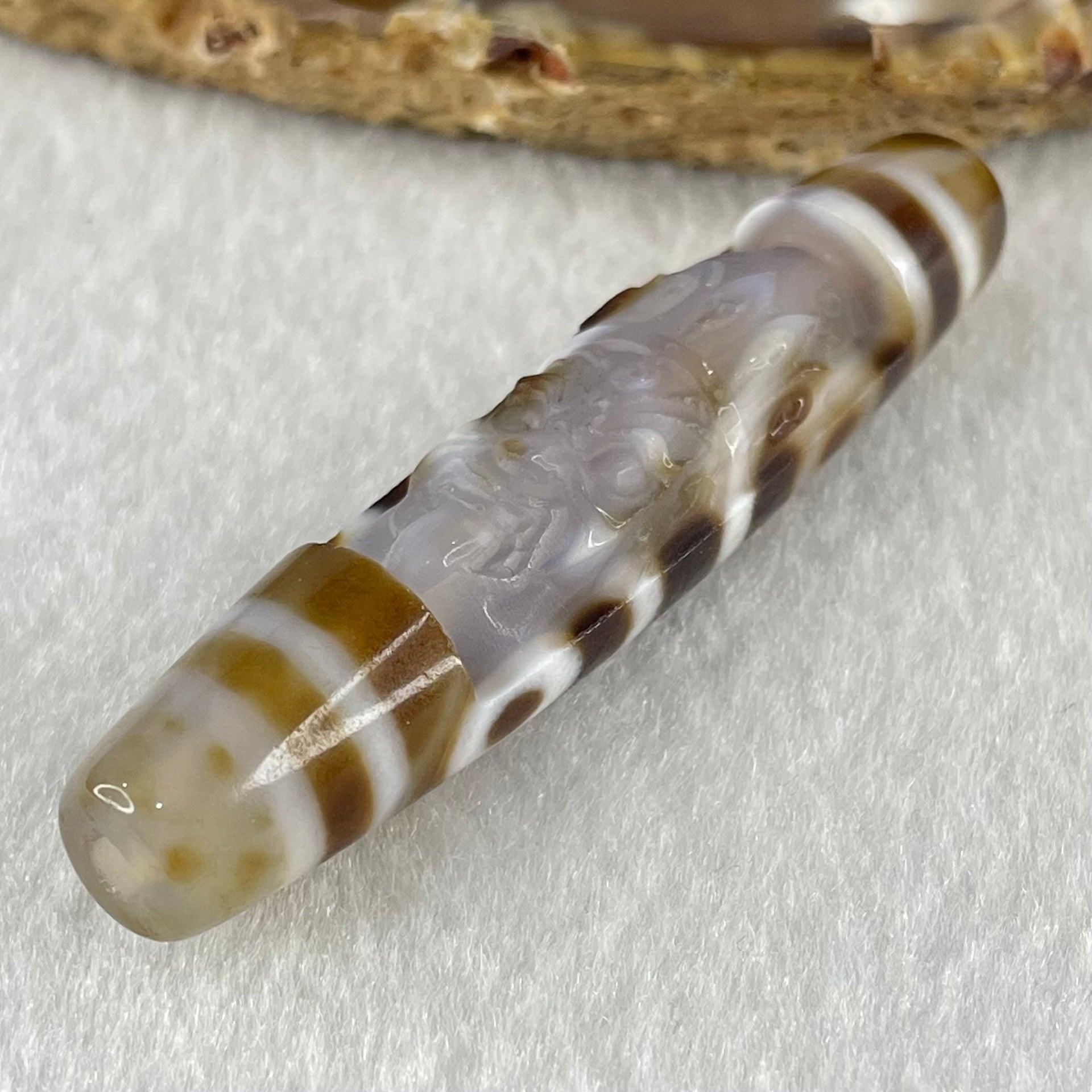 Natural Powerful Tibetan Old Oily Agate 6 Eyes with Zha Ji La Mu Female Cai Shen Carvings Dzi Bead Heavenly Master (Tian Zhu) 三眼扎基拉姆女财神天珠 12.78g 58.0 by 12.8mm