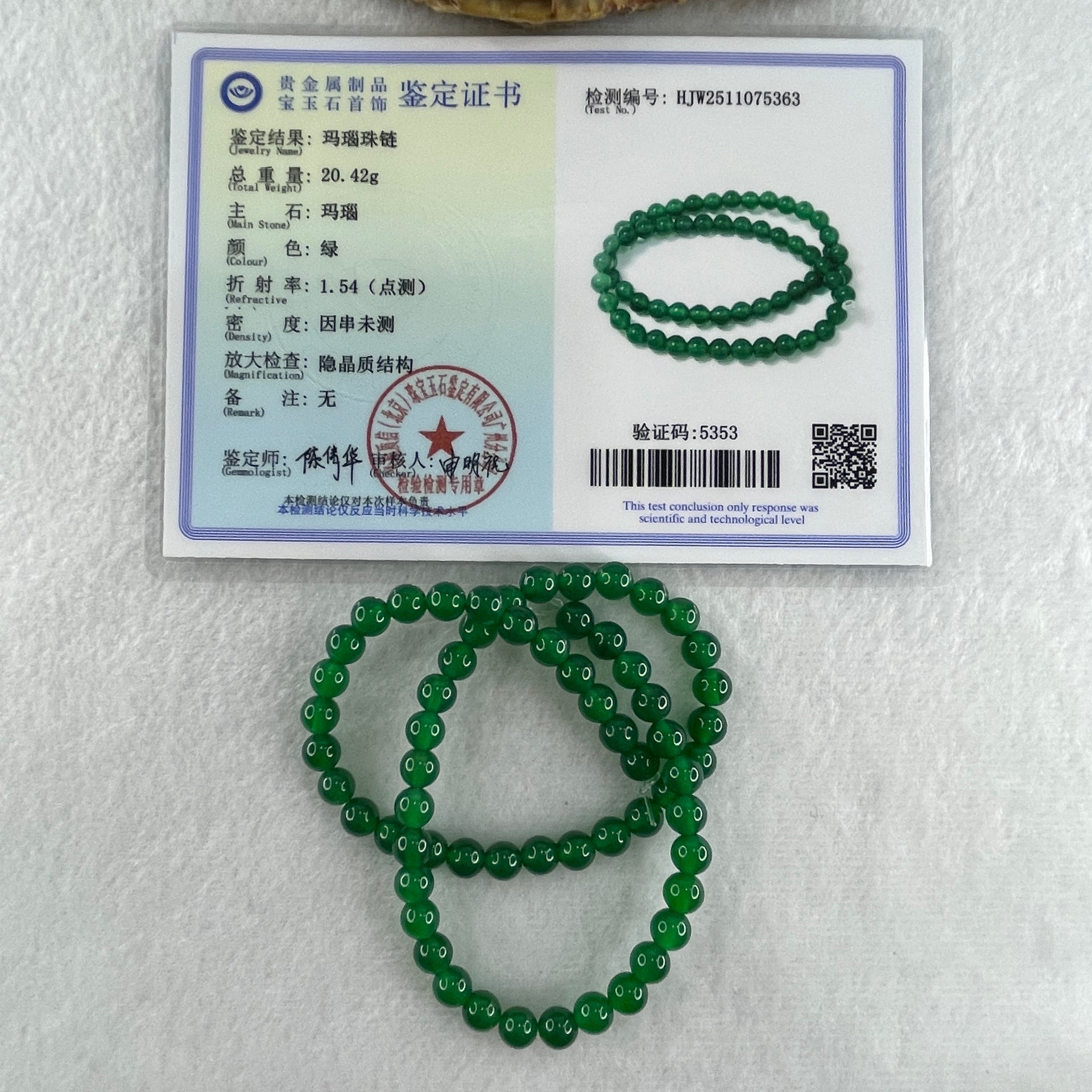 Certified Natural Green Agate Chalcedony Beads Loose Beads for Bracelet 20.42g 38cm 6.4mm 62 Beads