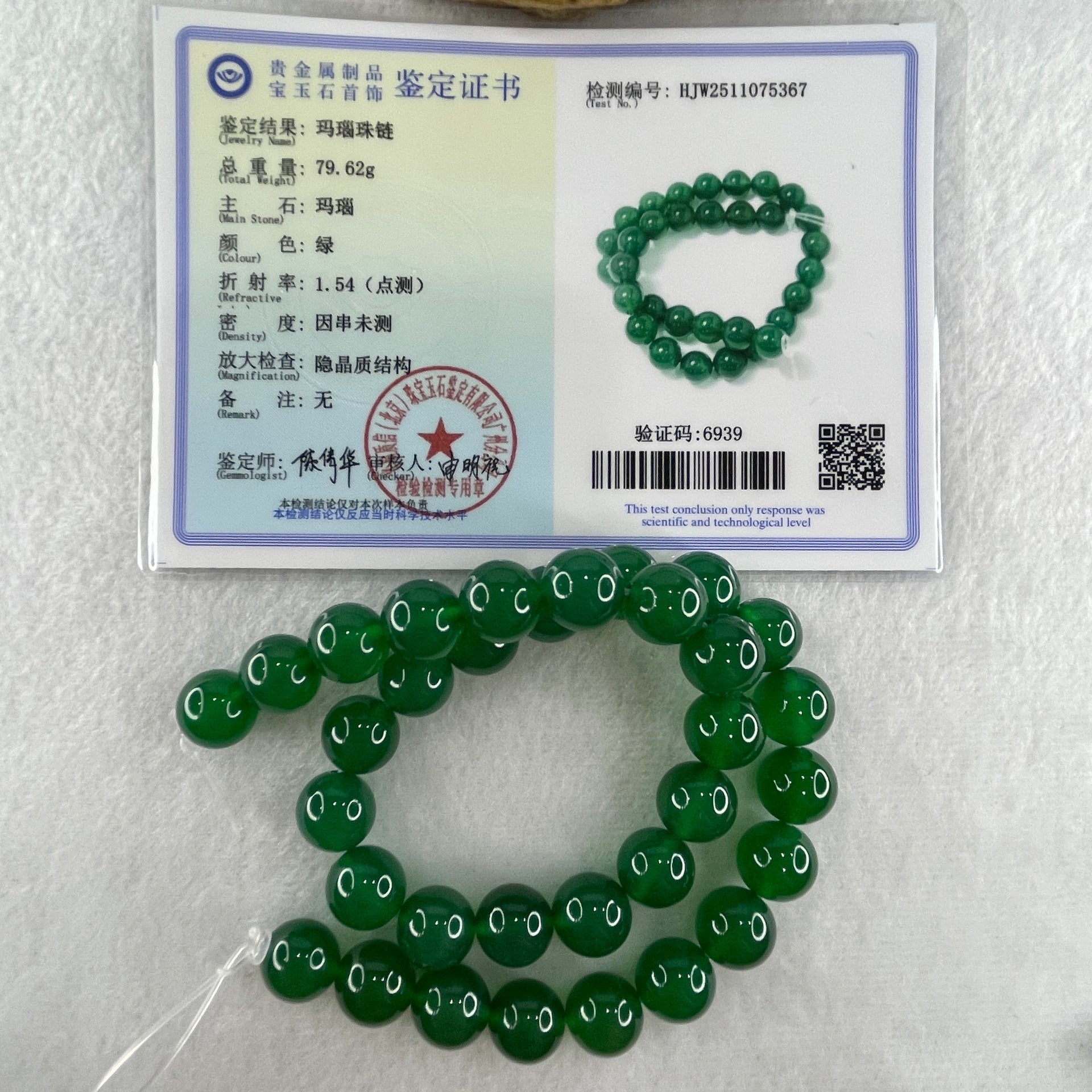 Certified Natural Green Agate Chalcedony Beads Loose Beads for Bracelet 79.62g 38cm 12.3mm 33 Beads