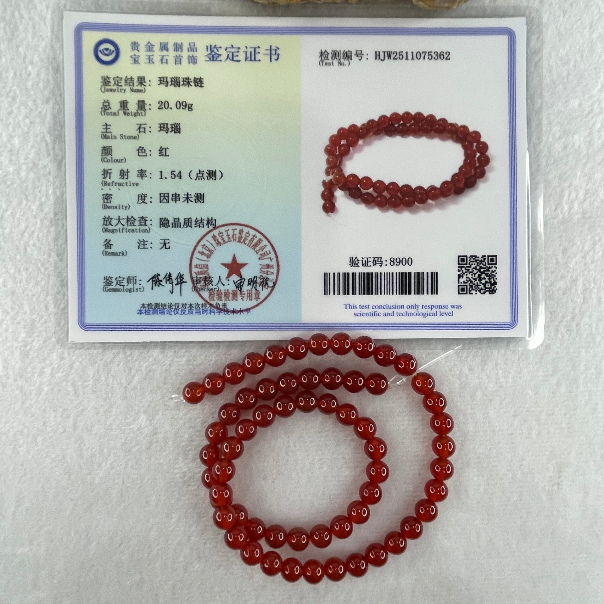 Certified Natural Red Agate Chalcedony Beads Loose Beads for Bracelet 20.09g 37.5cm 6.4mm 61 Beads