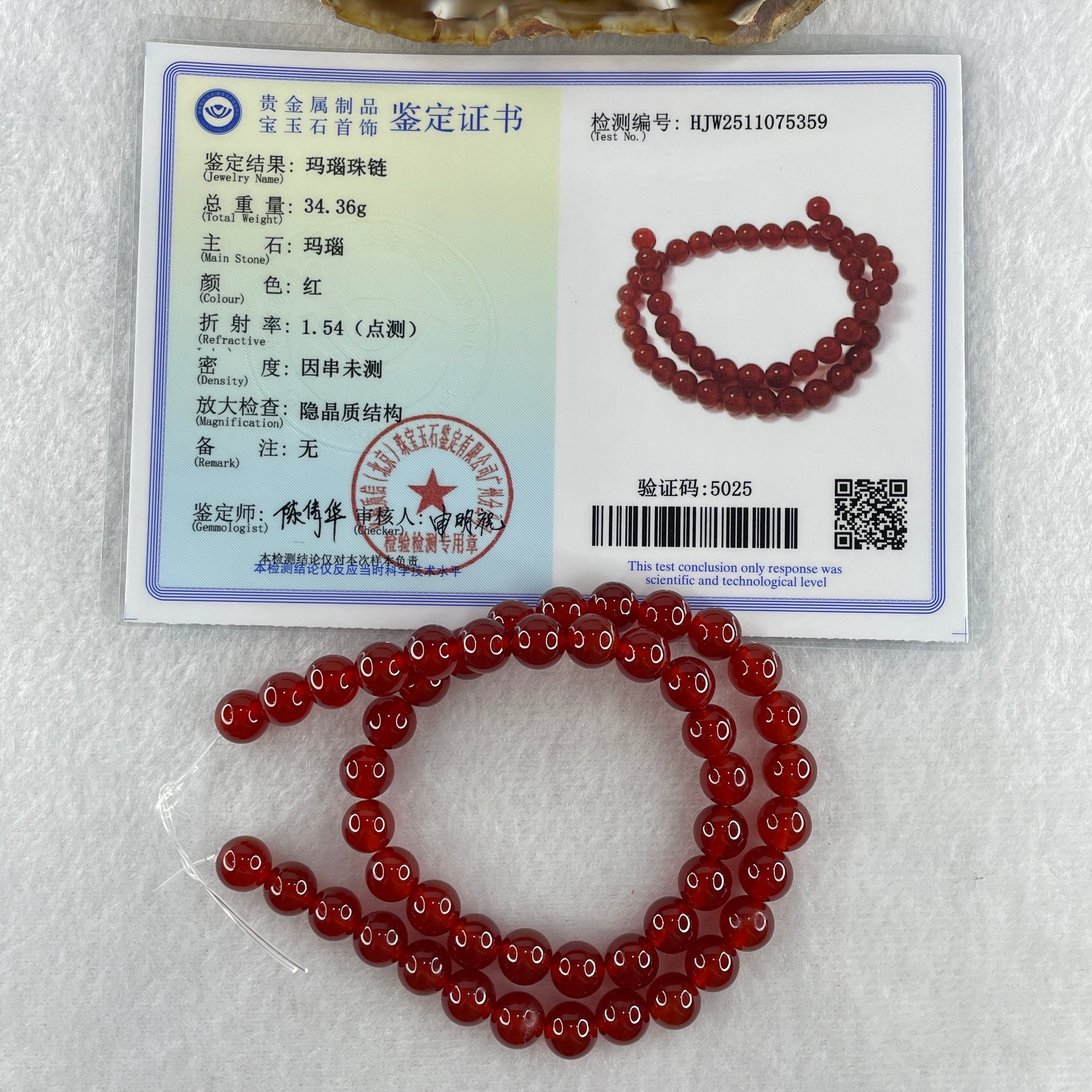 Certified Natural Red Agate Chalcedony Beads Loose Beads for Bracelet 34.36g 37cm 8.2mm 48 Beads