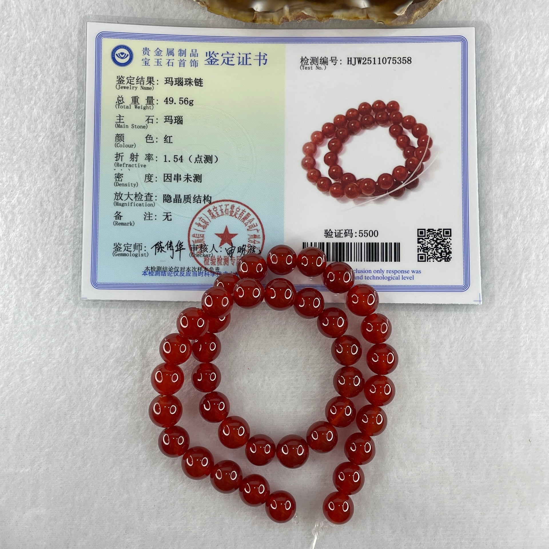 Certified Natural Red Agate Chalcedony Beads Loose Beads for Bracelet 49.56g 36.5cm 10.3mm 38 Beads