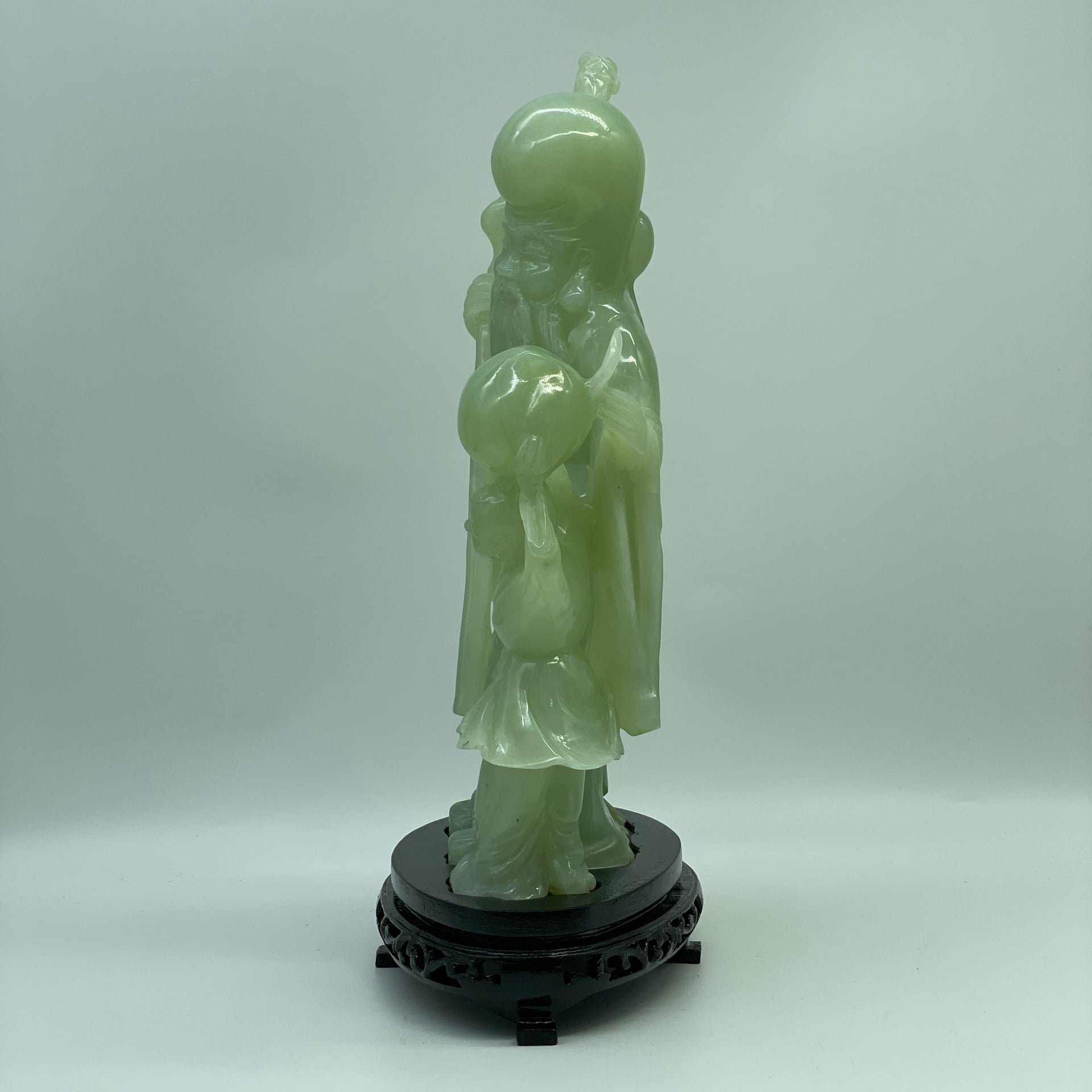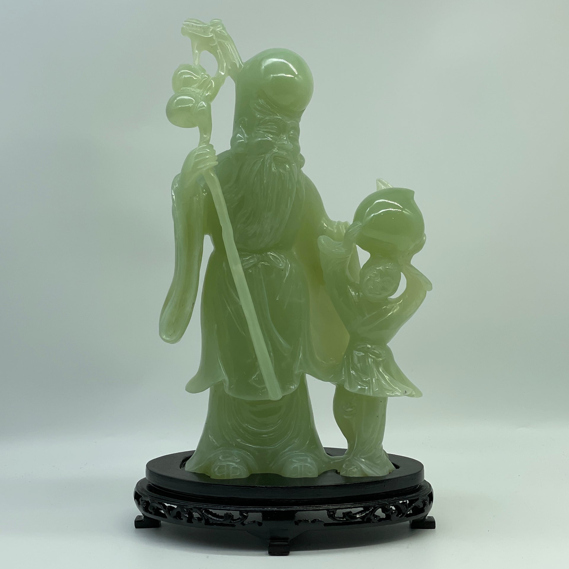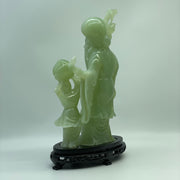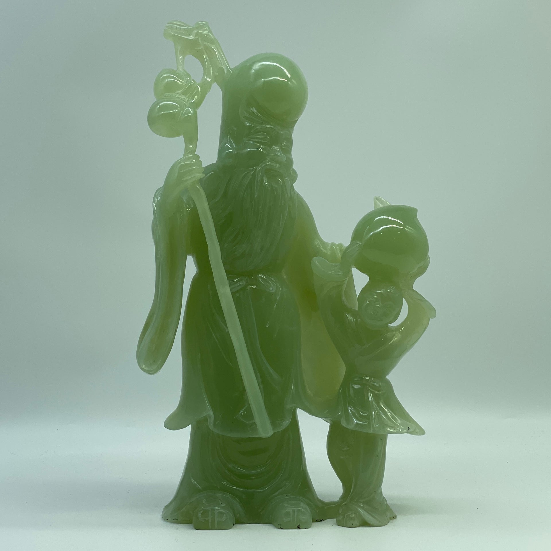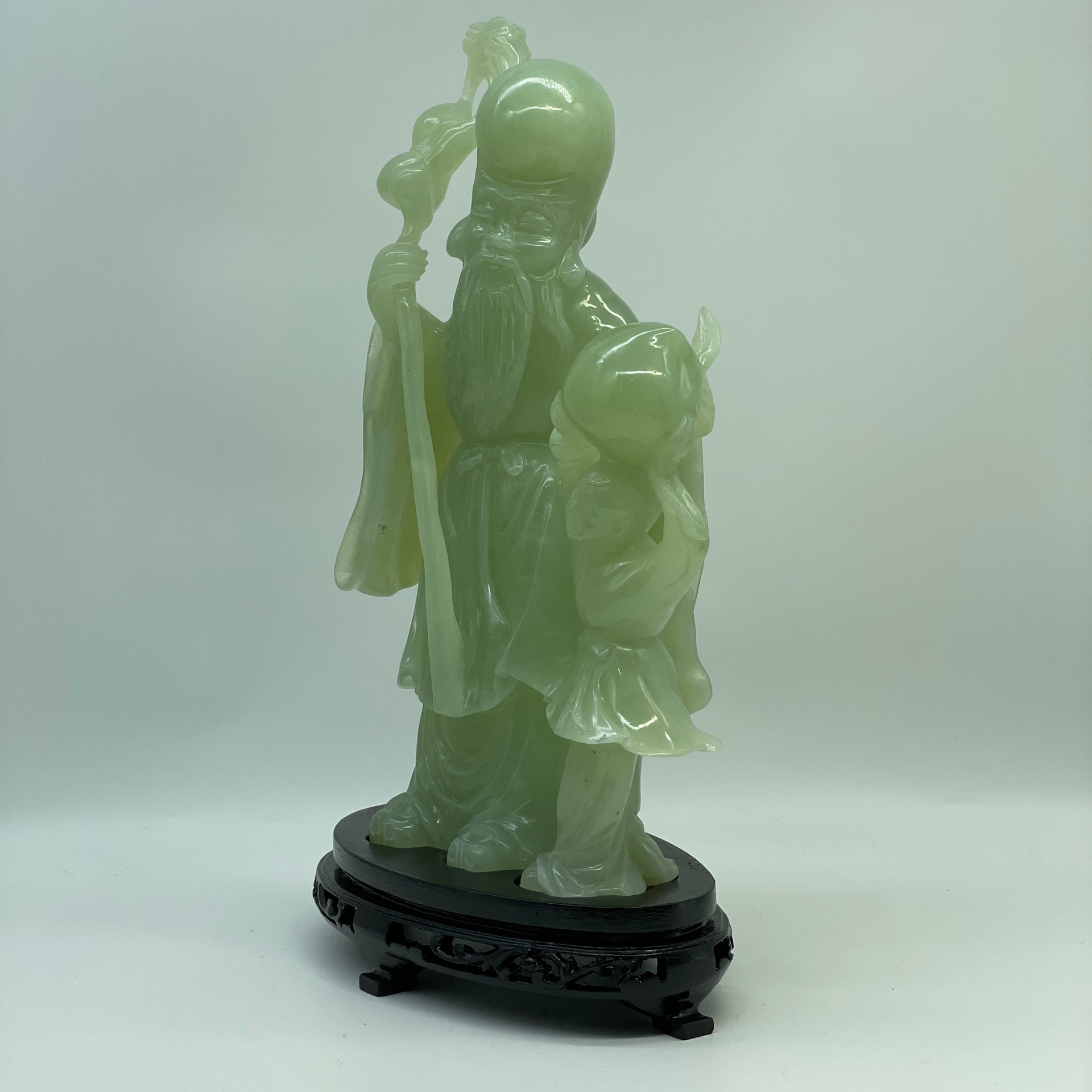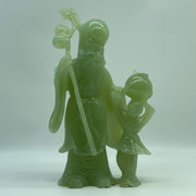 Natural Green Serpentine Shou Xing Gong and Tong Zi with Wooden Stand Display 2,618.6g 190.0 by 115.0 by 315.0mm