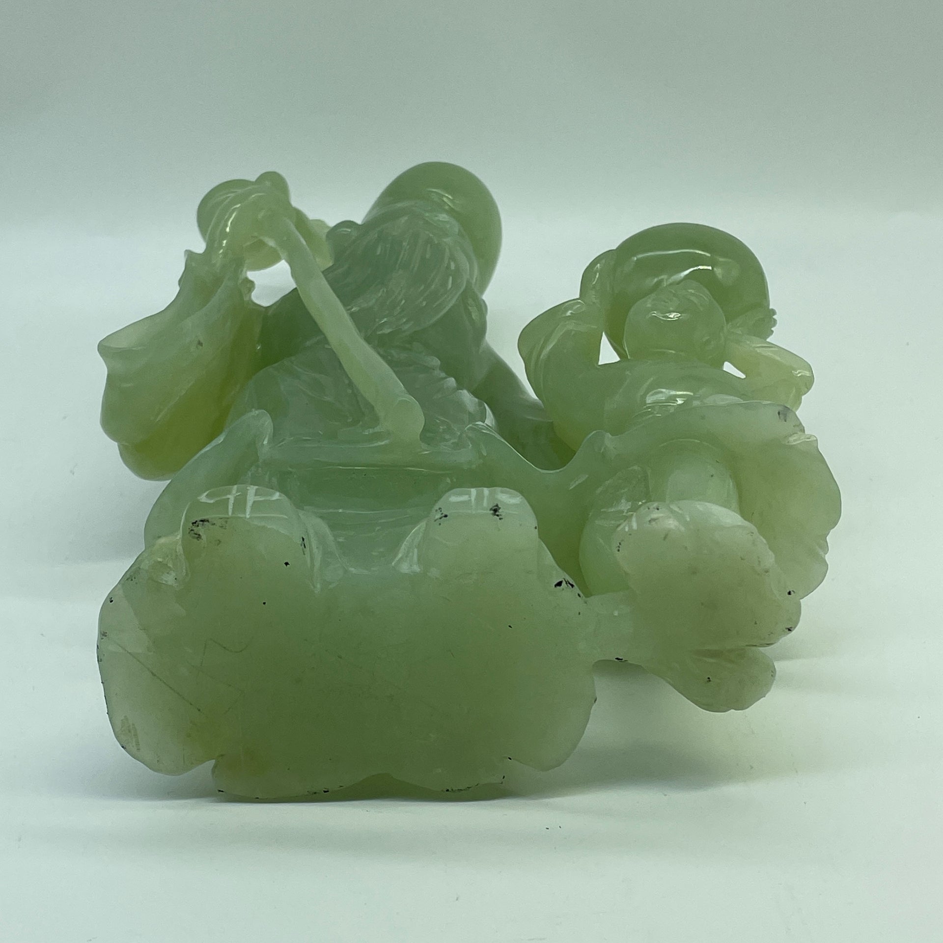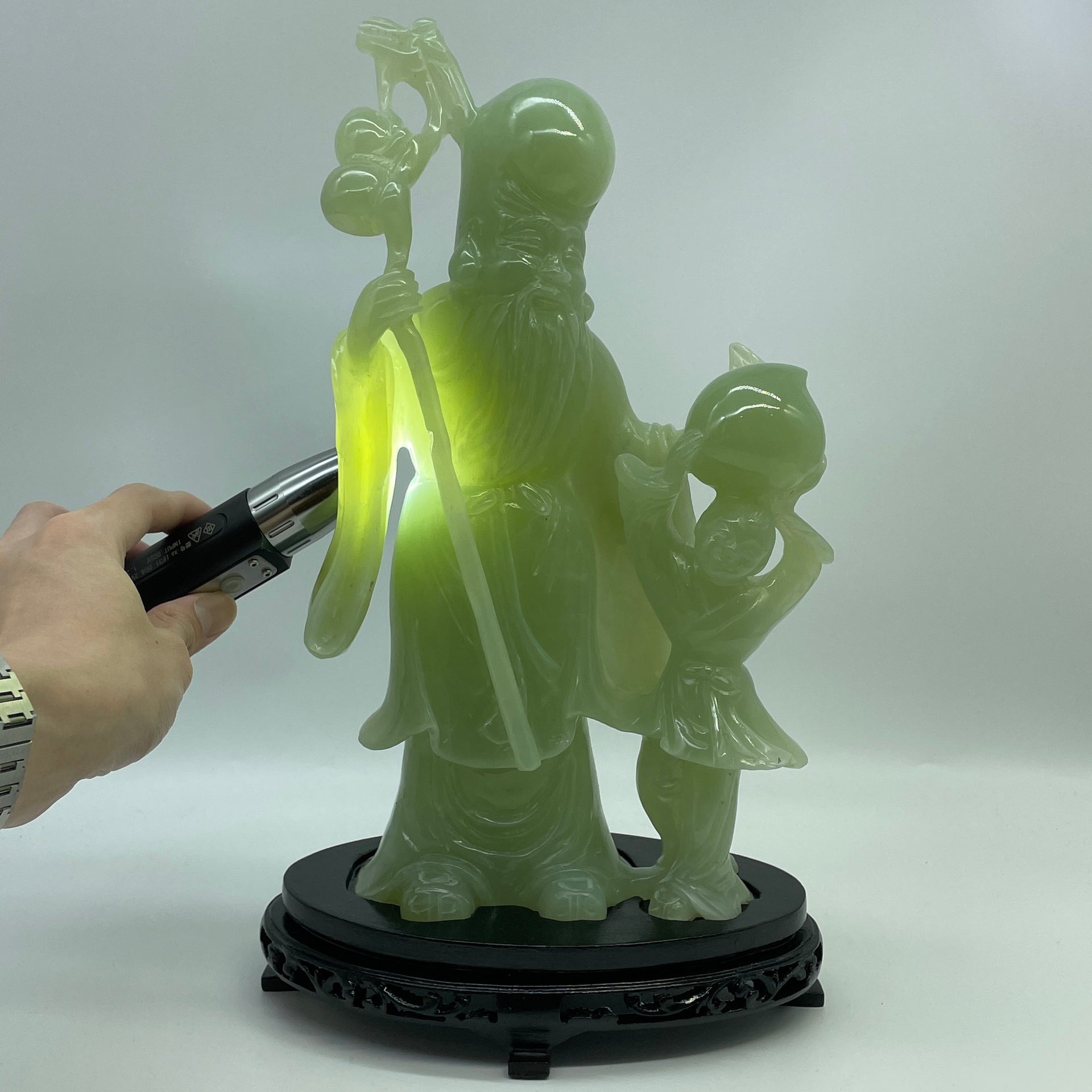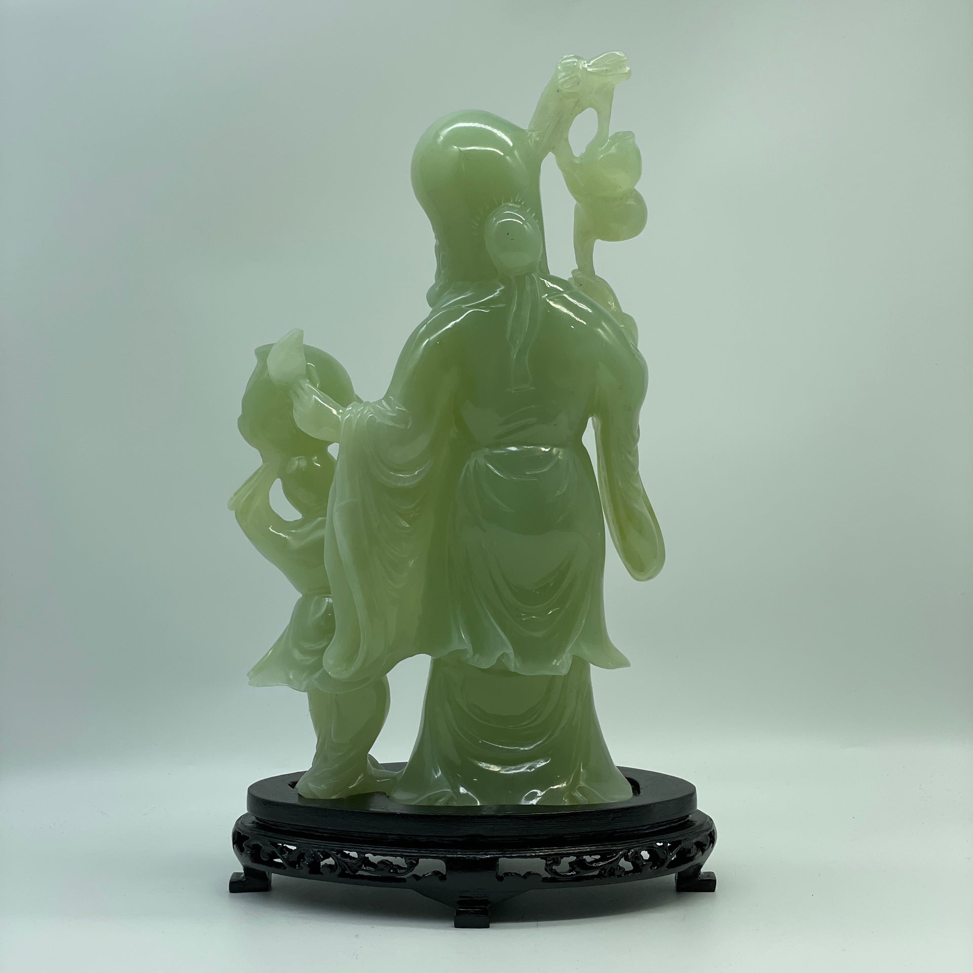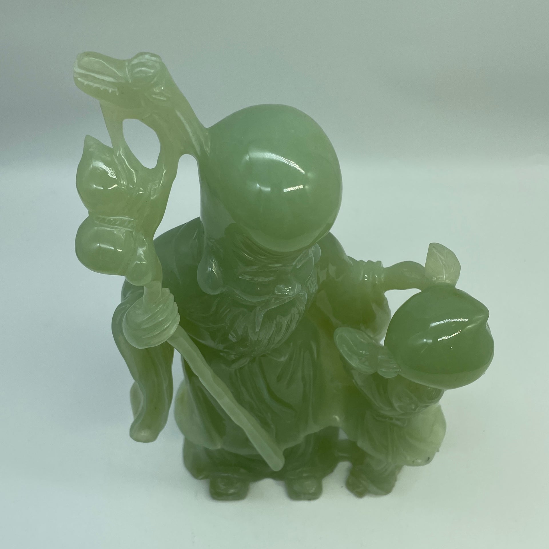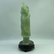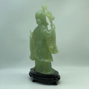 Natural Green Serpentine Shou Xing Gong and Tong Zi with Wooden Stand Display 2,618.6g 190.0 by 115.0 by 315.0mm