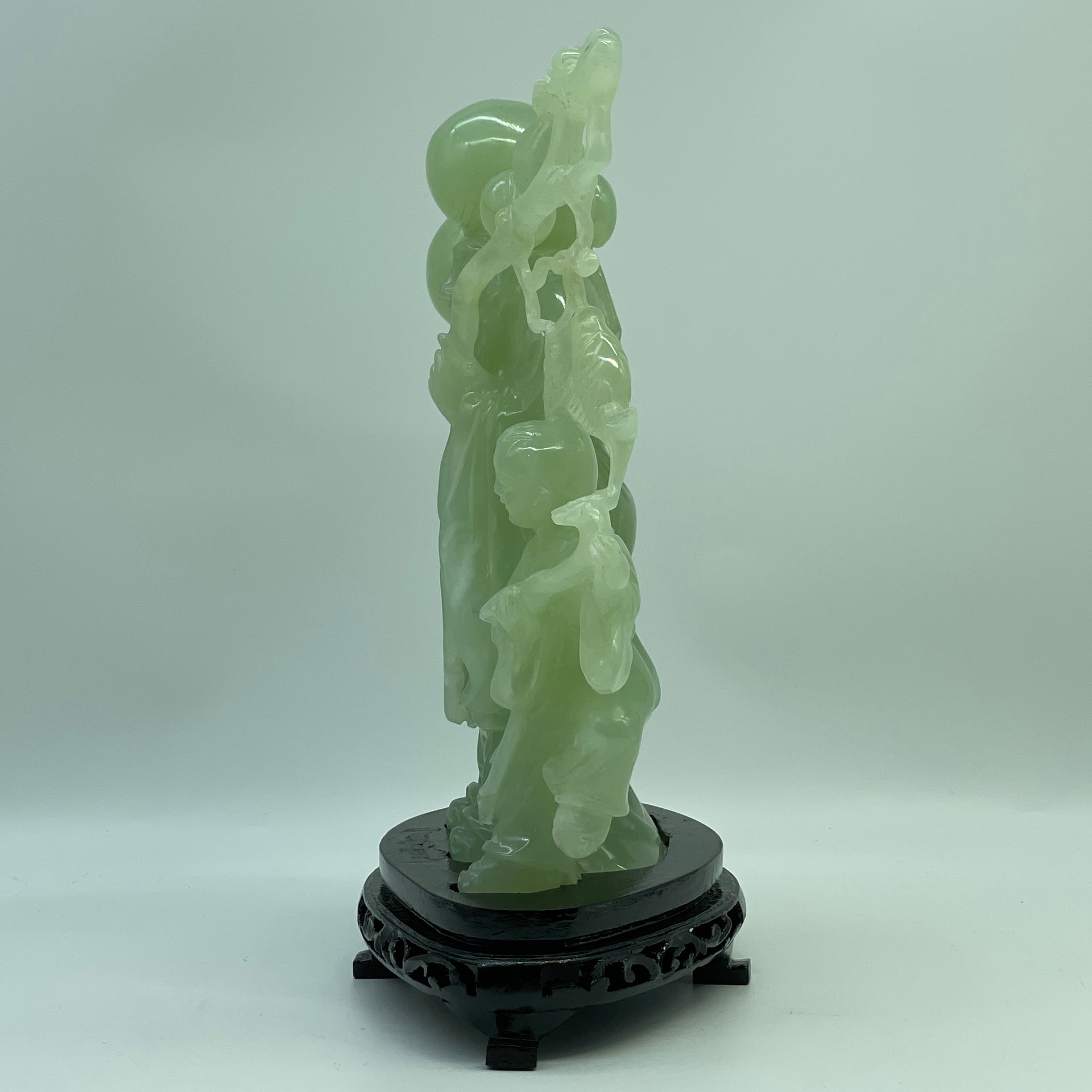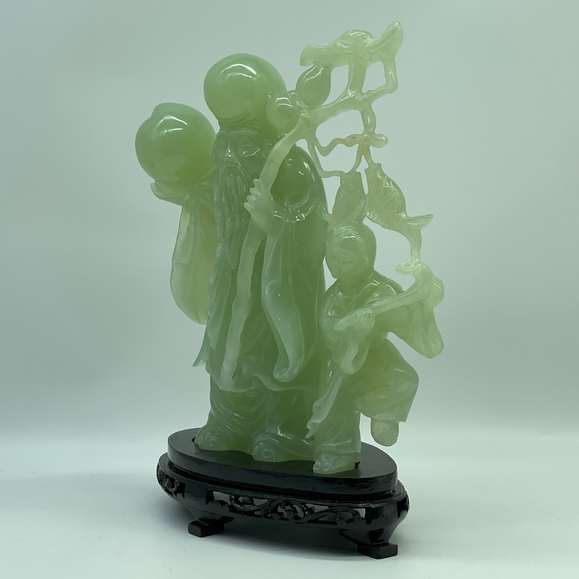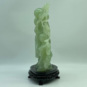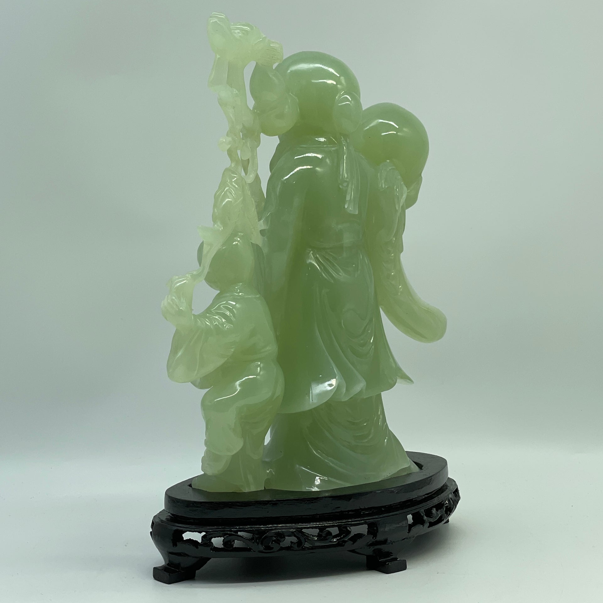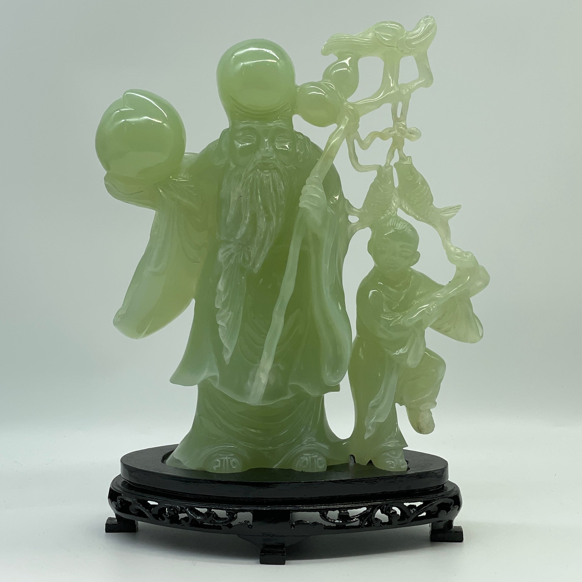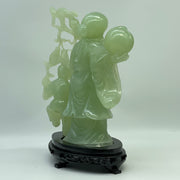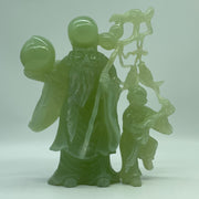 Natural Green Serpentine Shou Xing Gong with Tong Zi with Wooden Stand Display 2,263.0g 219.0 by 120.0 by 271.0mm