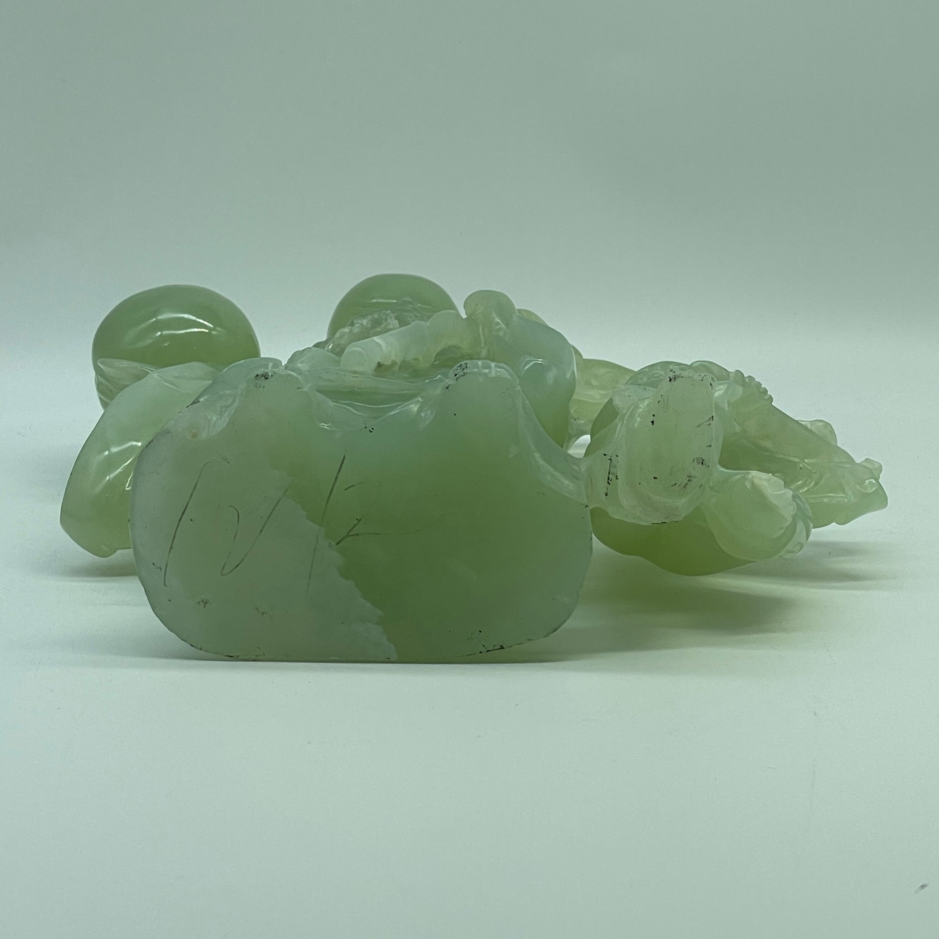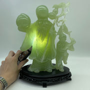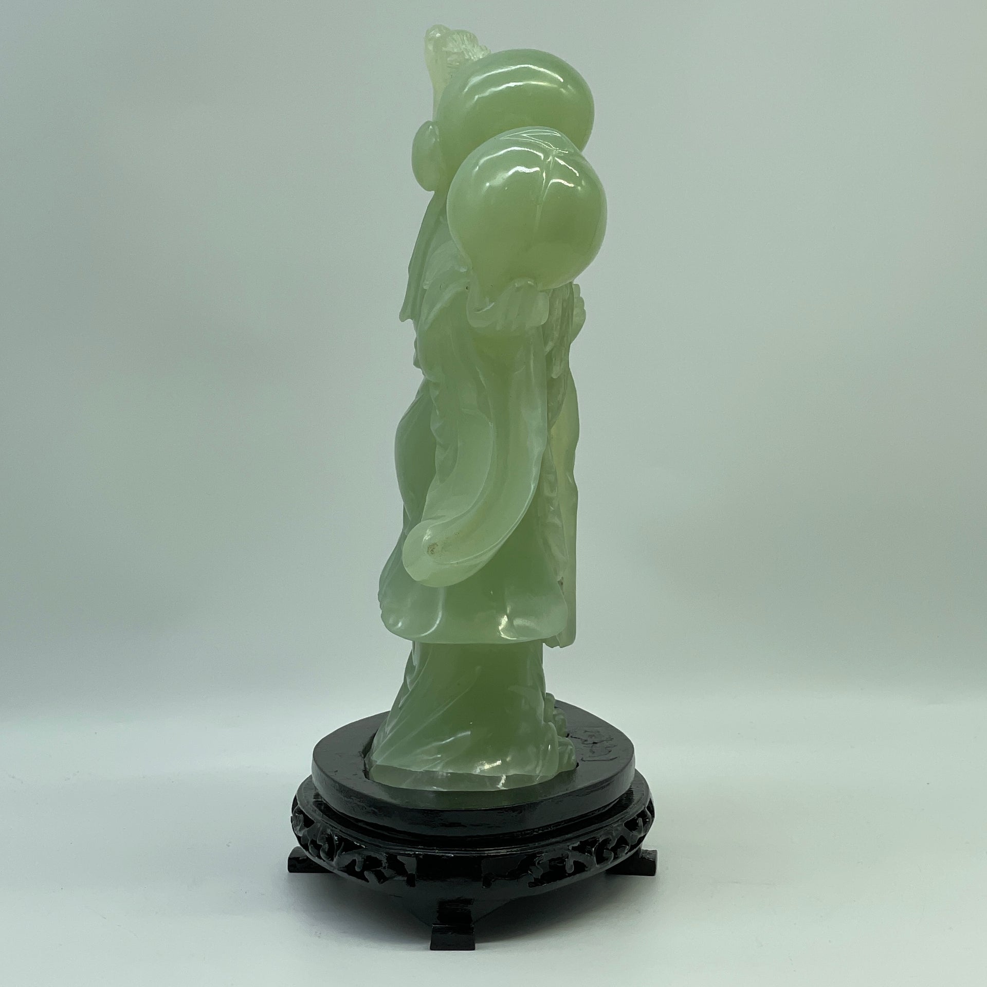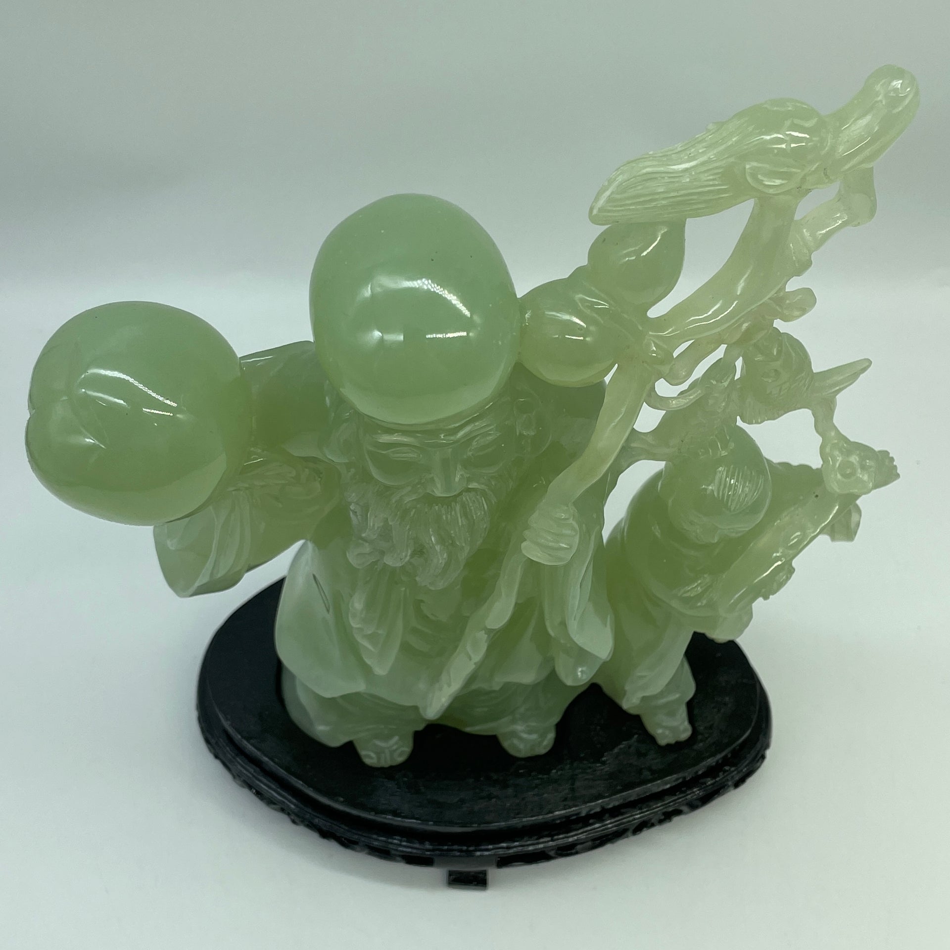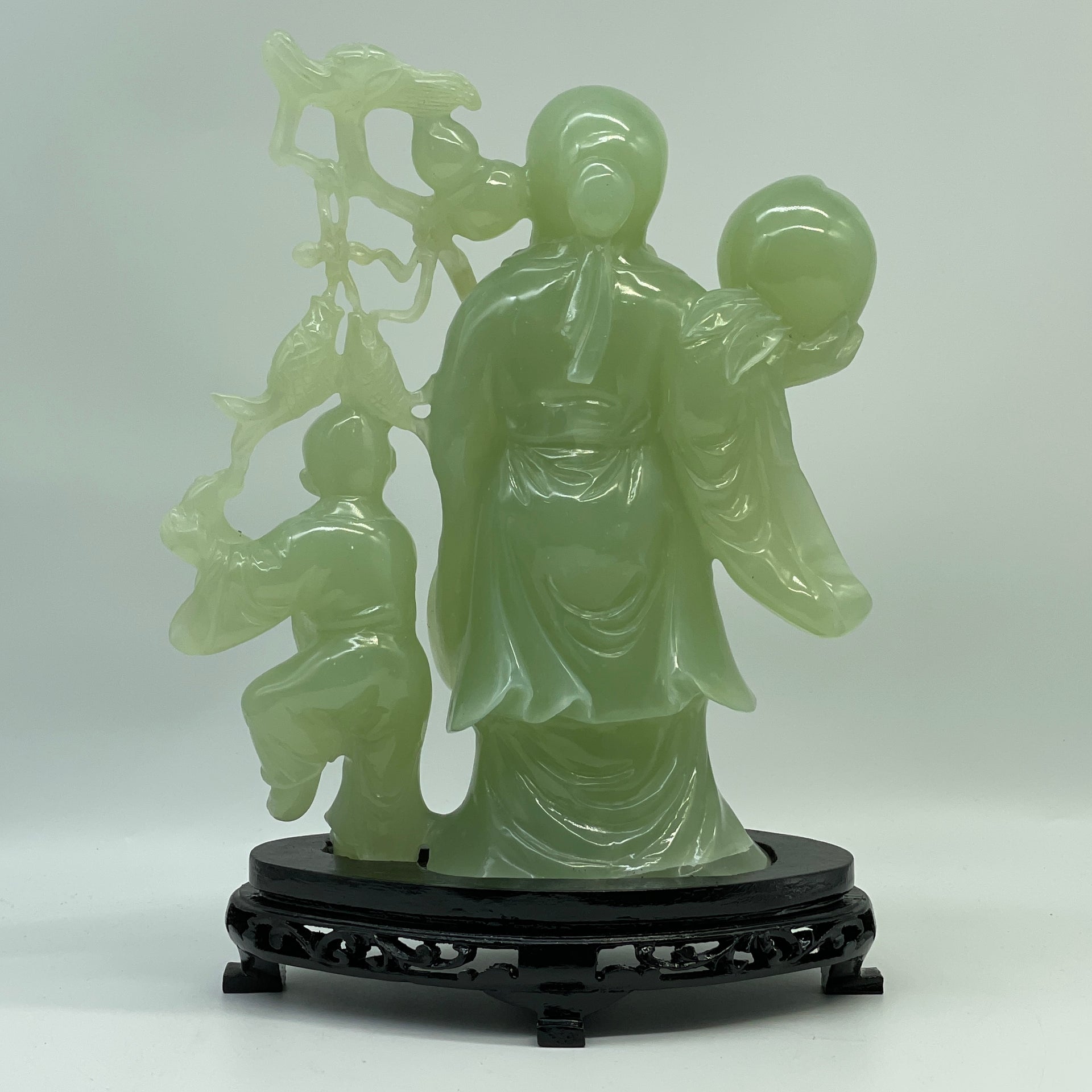 Natural Green Serpentine Shou Xing Gong with Tong Zi with Wooden Stand Display 2,263.0g 219.0 by 120.0 by 271.0mm