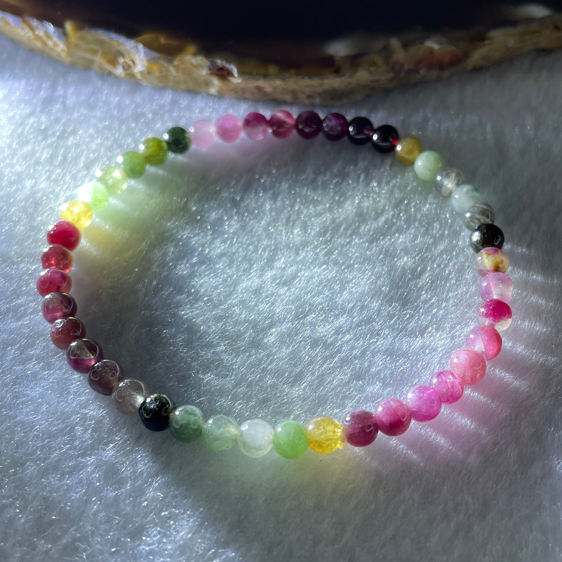 Natural Rainbow Tourmaline Beads Bracelet 5.53g 15.5cm 4.5mm 43 Beads