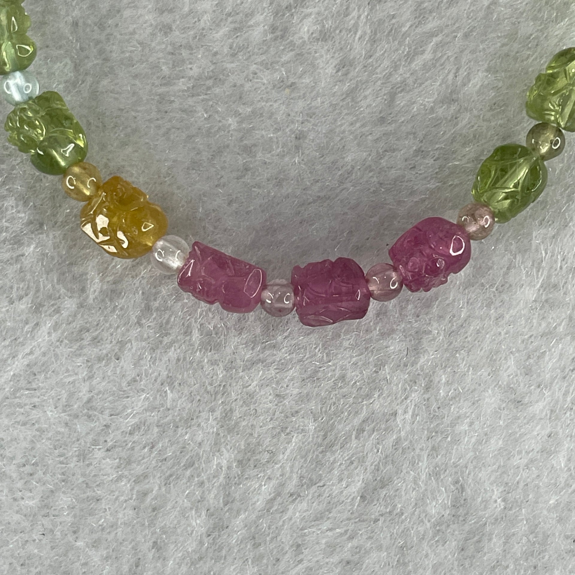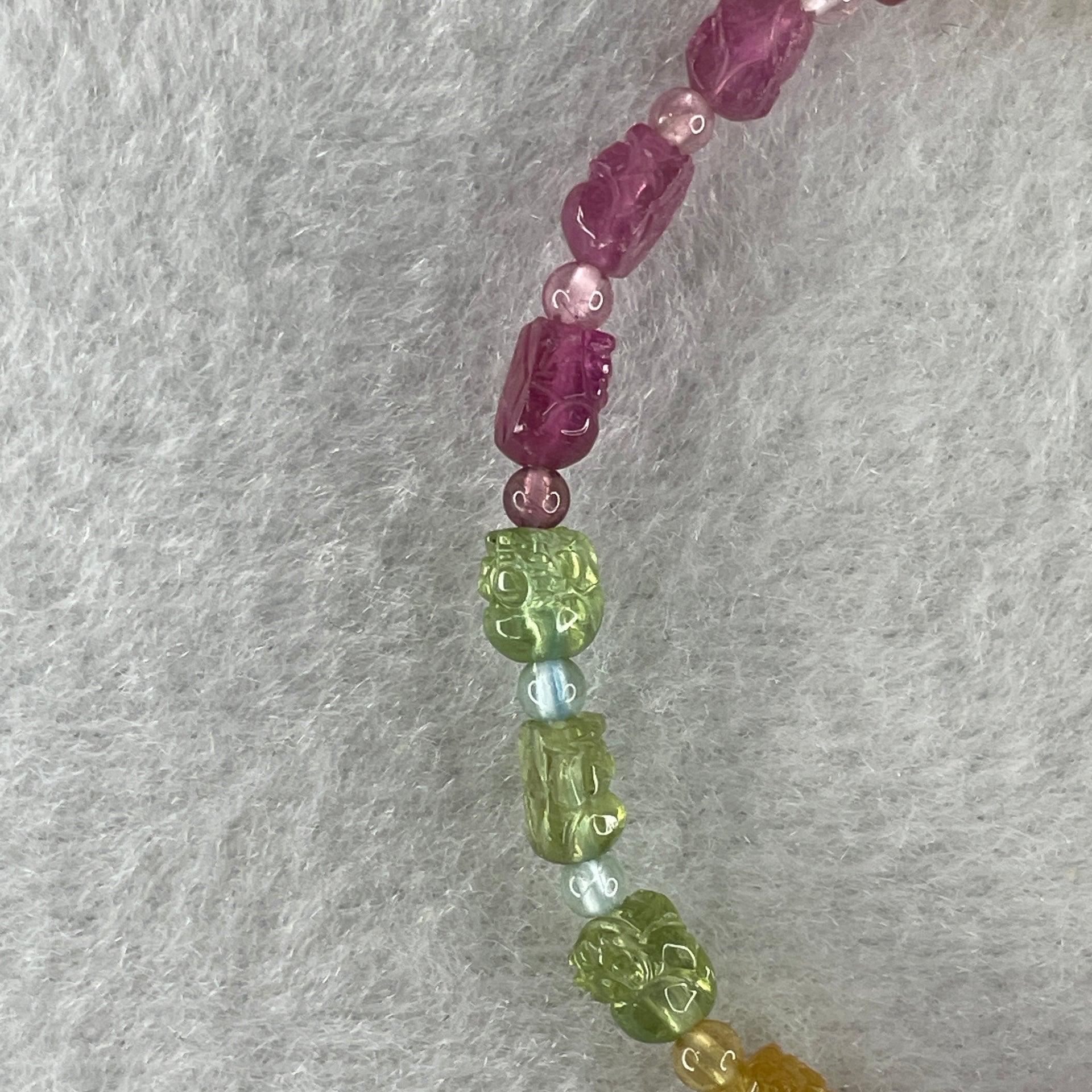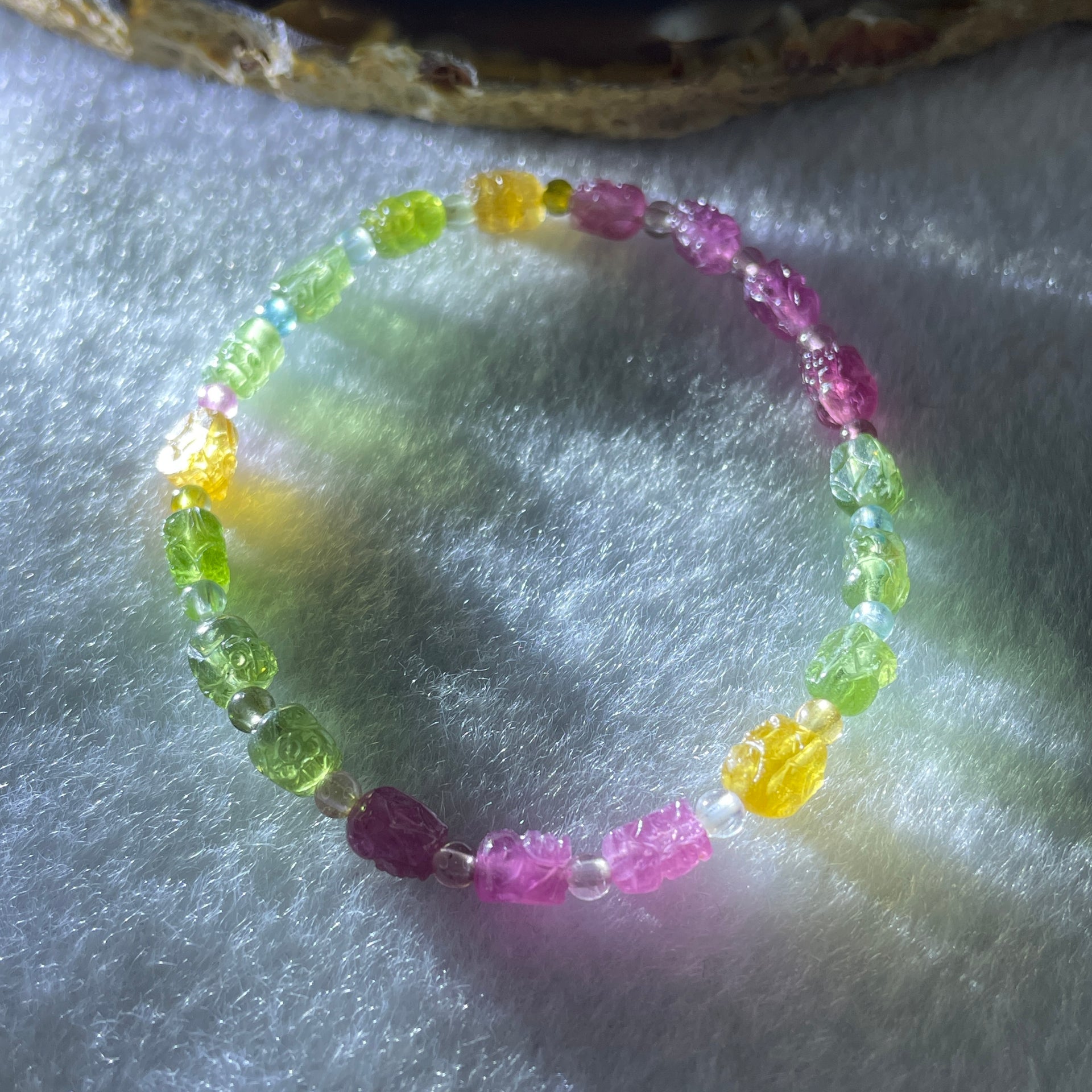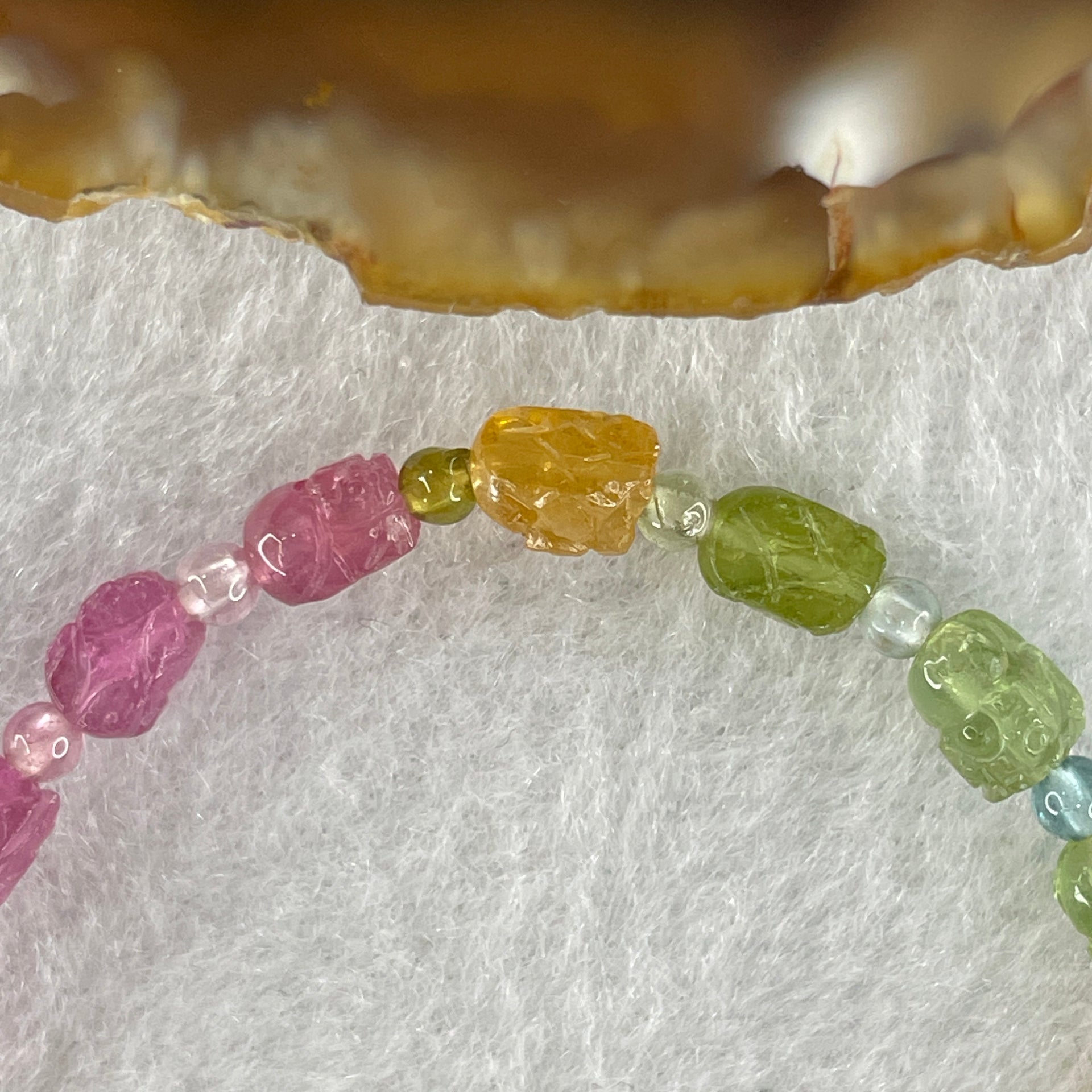 Very Good Grade Natural Rainbow Tourmaline Pixiu Beads Bracelet 4.30g 13.5cm 4.5mm 19 Beads
