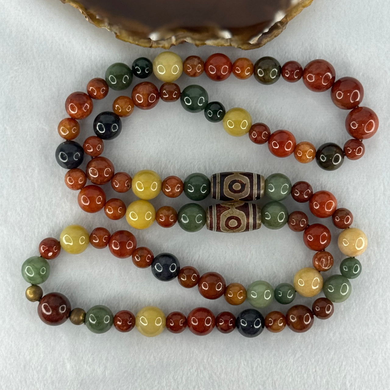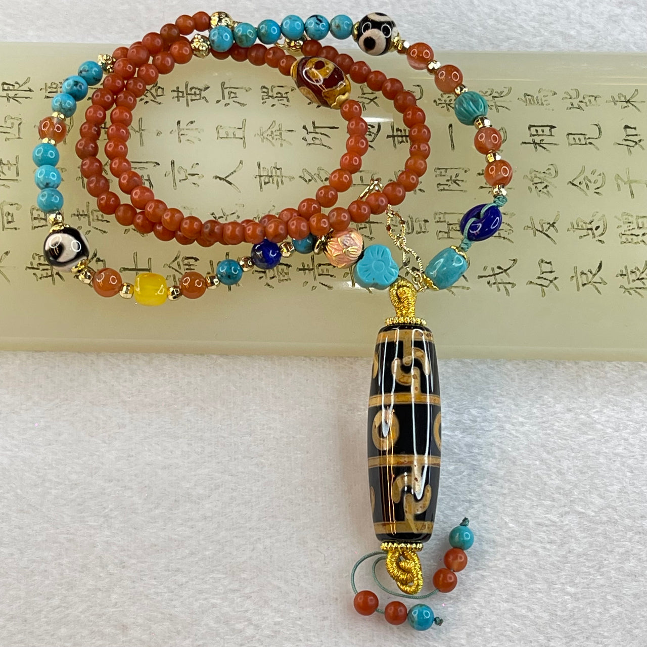 罕见天然强力西藏古董油性玛瑙九眼天珠天师(天珠)25.6 x 11.2 毫米,天然黑玛瑙 6.1 毫米 27 颗珠子 12.68 克 16 厘米$1,280.00$1,280.00Unit price / per -