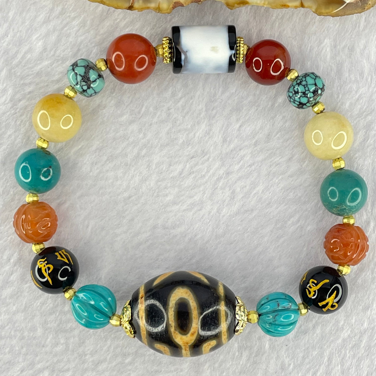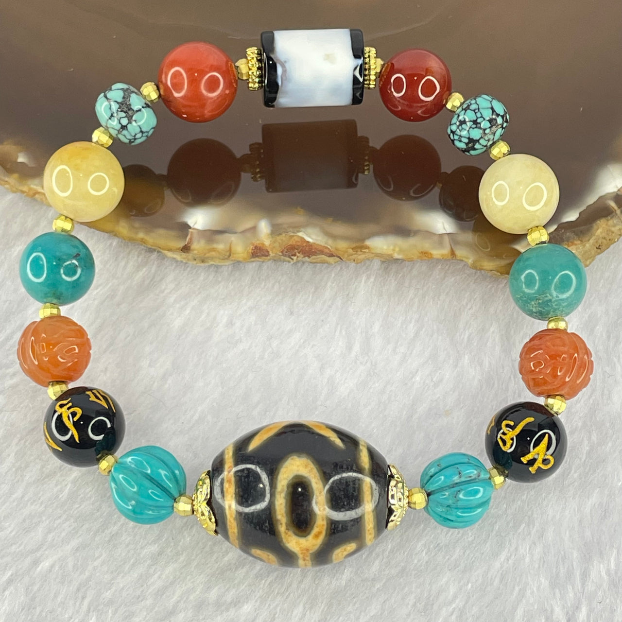 Muti Treasure 配西藏老油性玛瑙天珠手链(2 眼、3 眼、如意天珠)27.31 克 16 厘米 28.2 x 14.1 毫米、13.9 x 10.4 毫米、10.1 x 10.2 毫米$1,280.00$1,280.00Unit price / per -