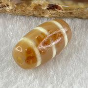 Natural Powerful Tibetan Old Oily Agate 3-Lines Dzi Bead Heavenly Master (Tian Zhu) 三行天诛 3.17g 19.5 by 10.4mm