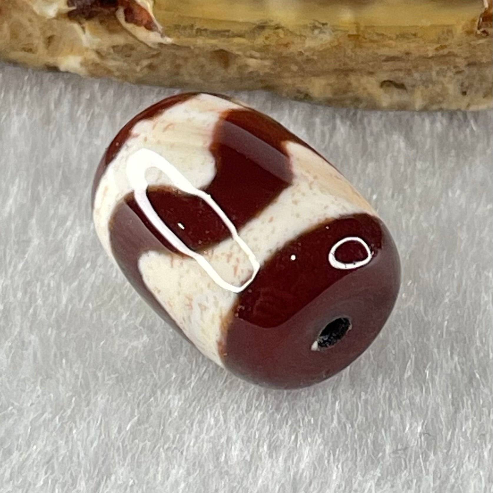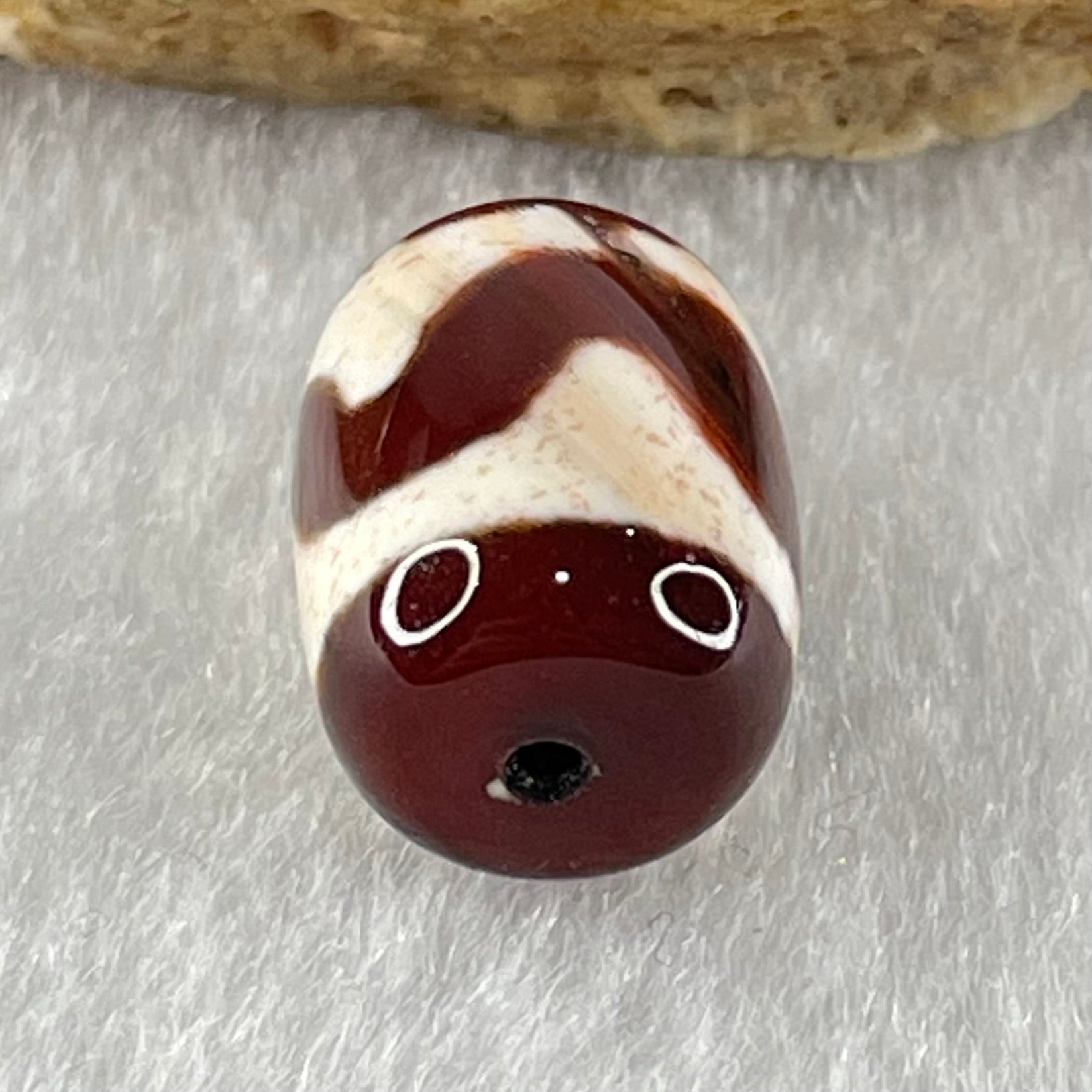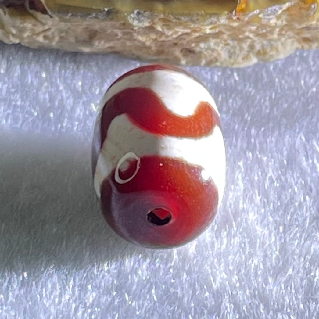 Natural Powerful Tibetan Old Oily Agate Tiger Tooth Daluo Dzi Bead Heavenly Master (Tian Zhu) 虎呀天诛 2.56g 14.1 by 10.4mm