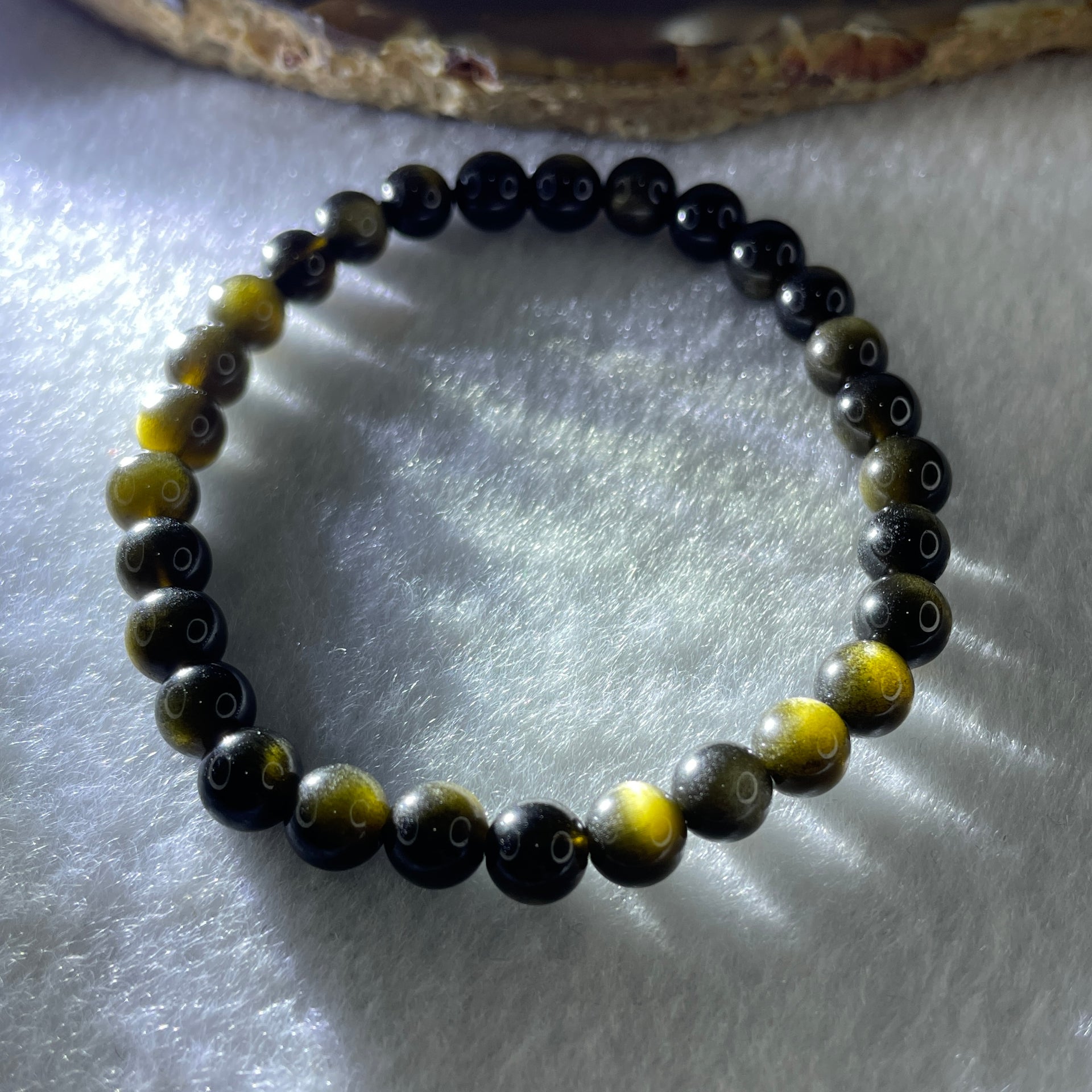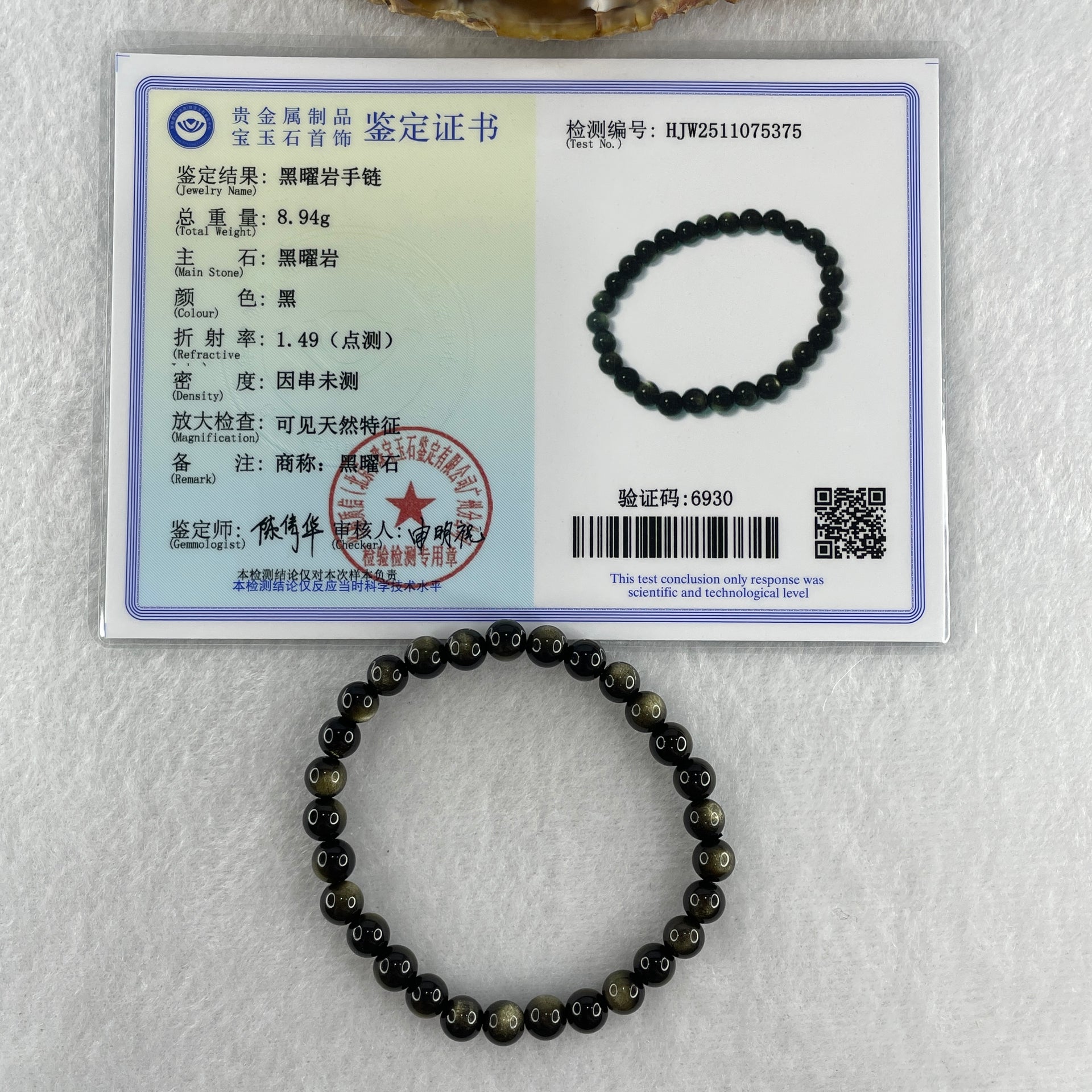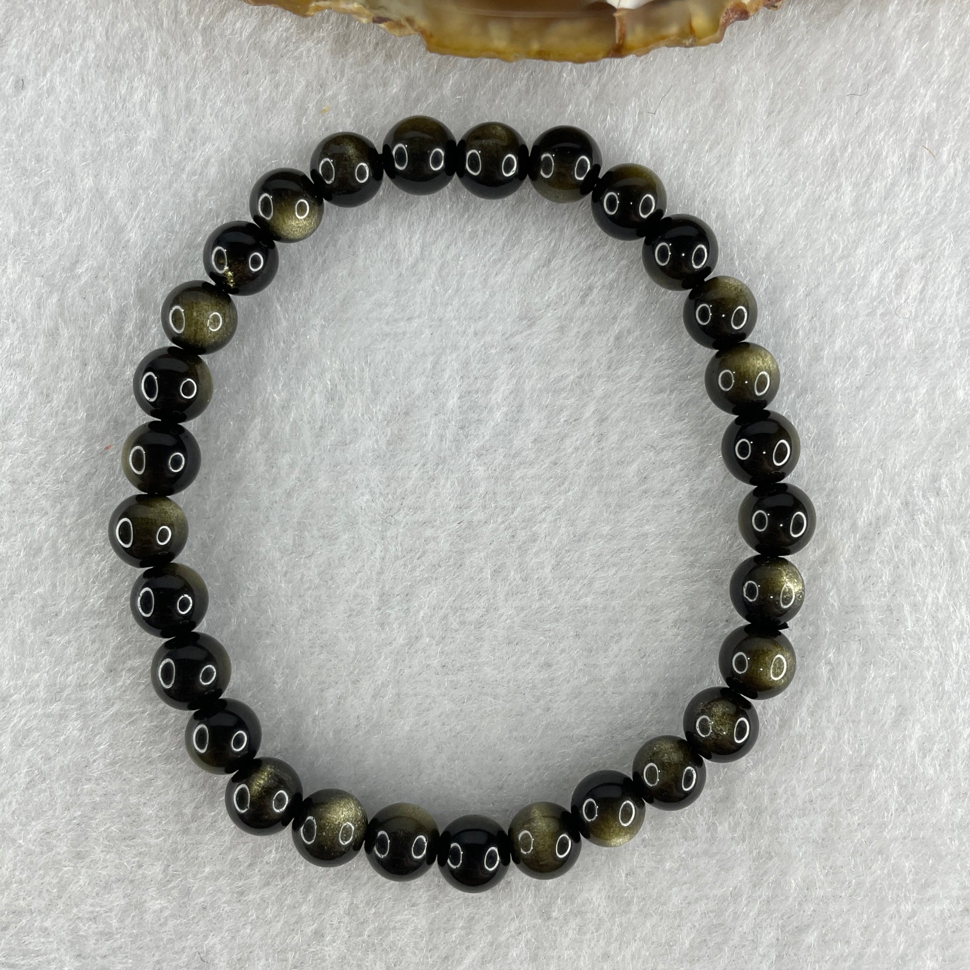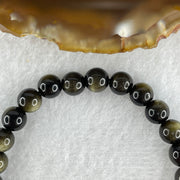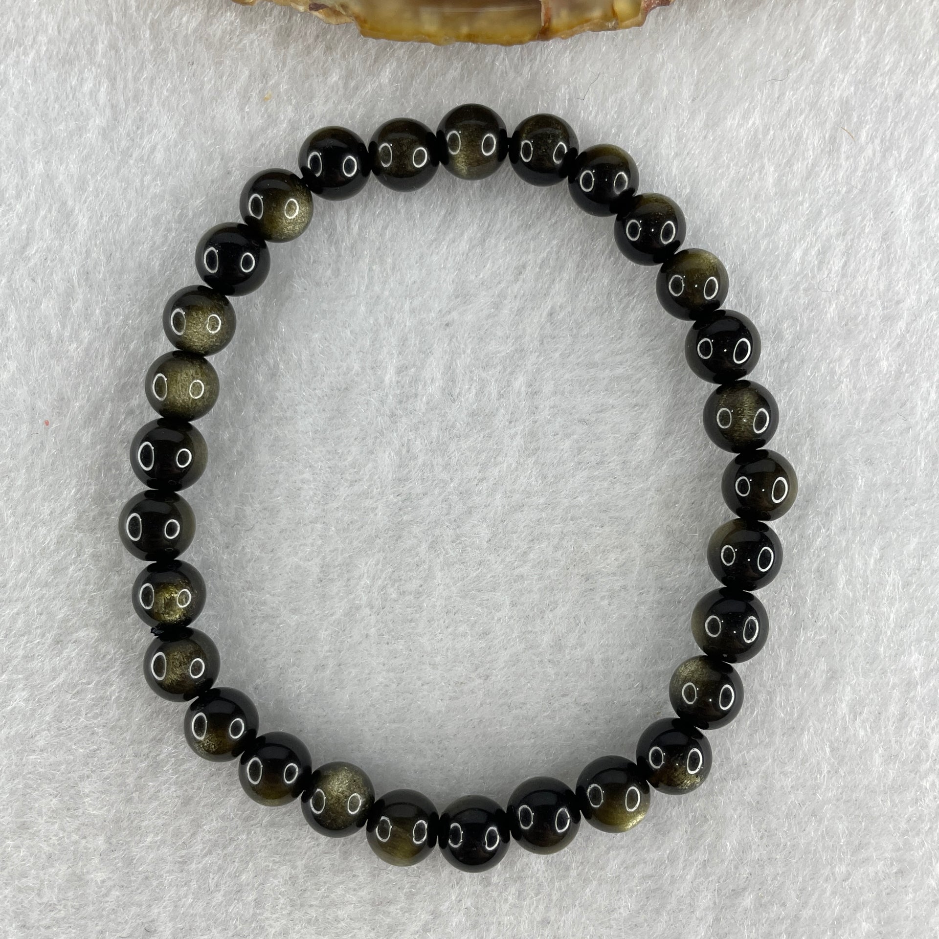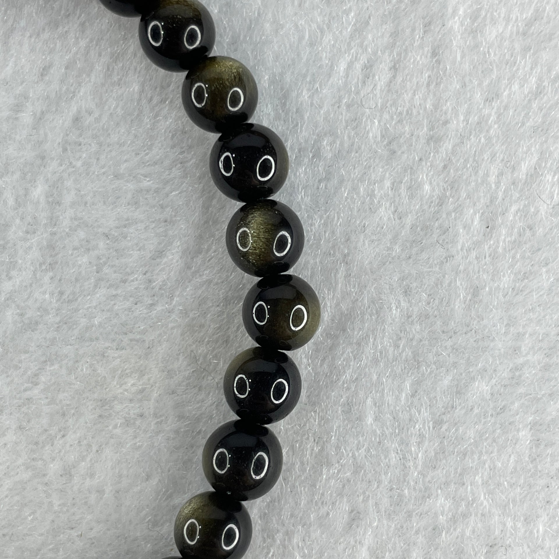 Certified Good Grade Natural Black Obsidian with Brown Hue Beads Bracelet 8.94g 15cm 6.4mm 29 Beads