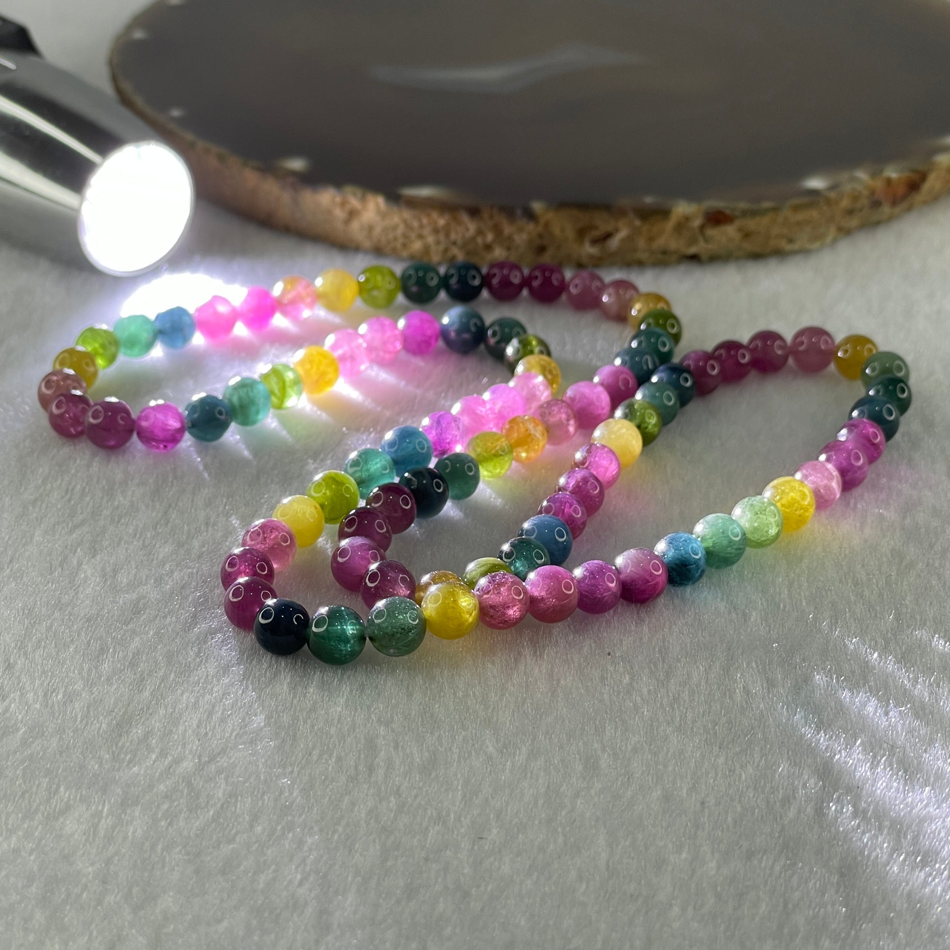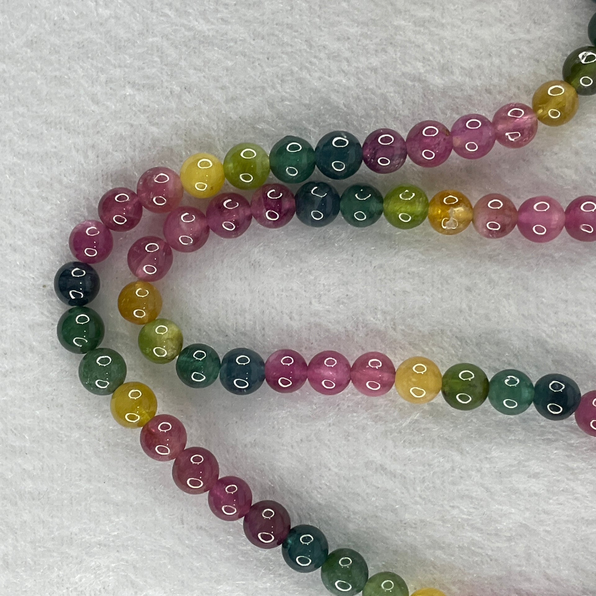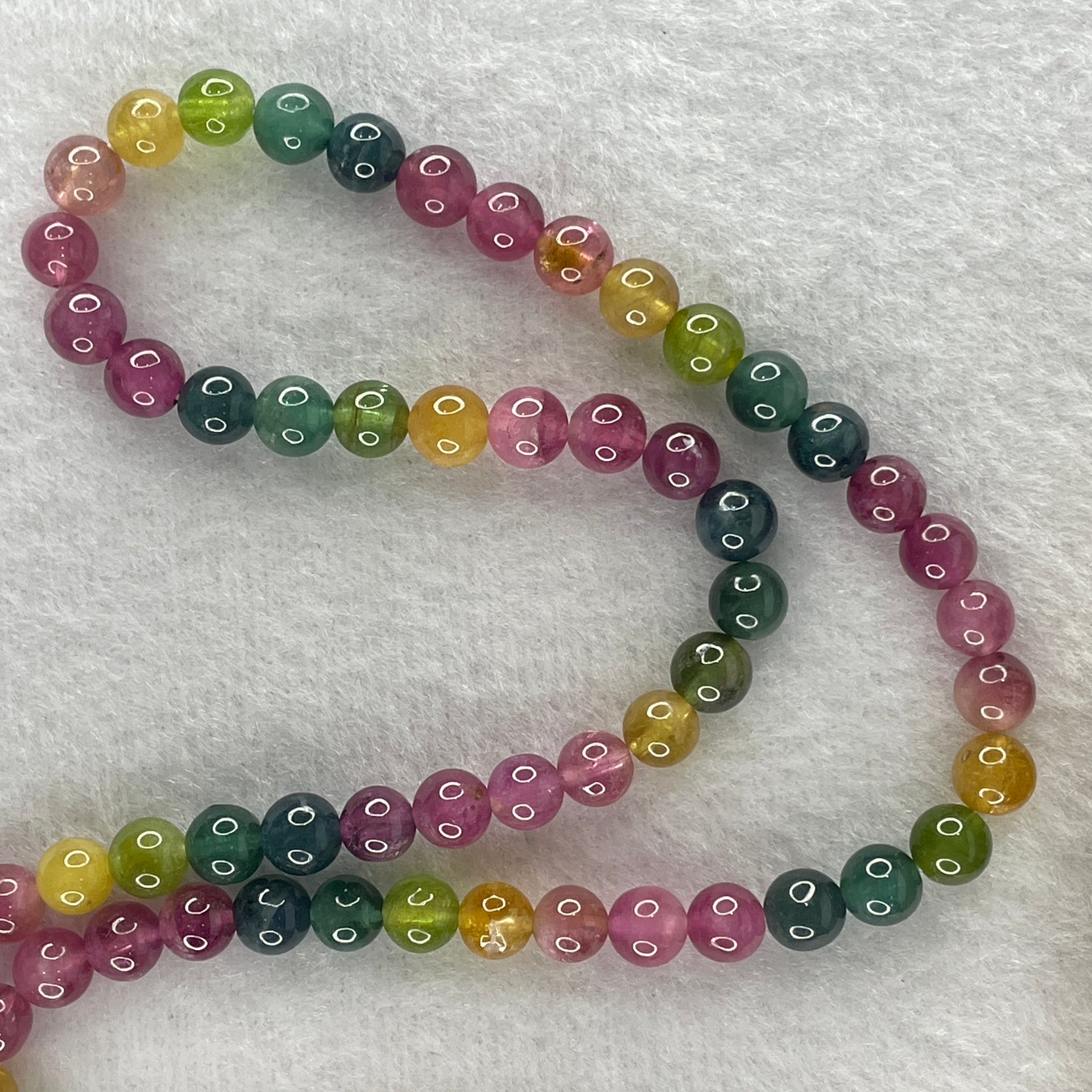 Good Grade Natural Intense Rainbow Tourmaline Crystal Beads Necklace 32.54g 52cm 6.3mm 90 Beads