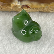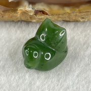 Certified Natural Green Nephrite Cat Charm for Pendant or Bracelet 3.40g 16.1 by 12.0 by 11.1mm