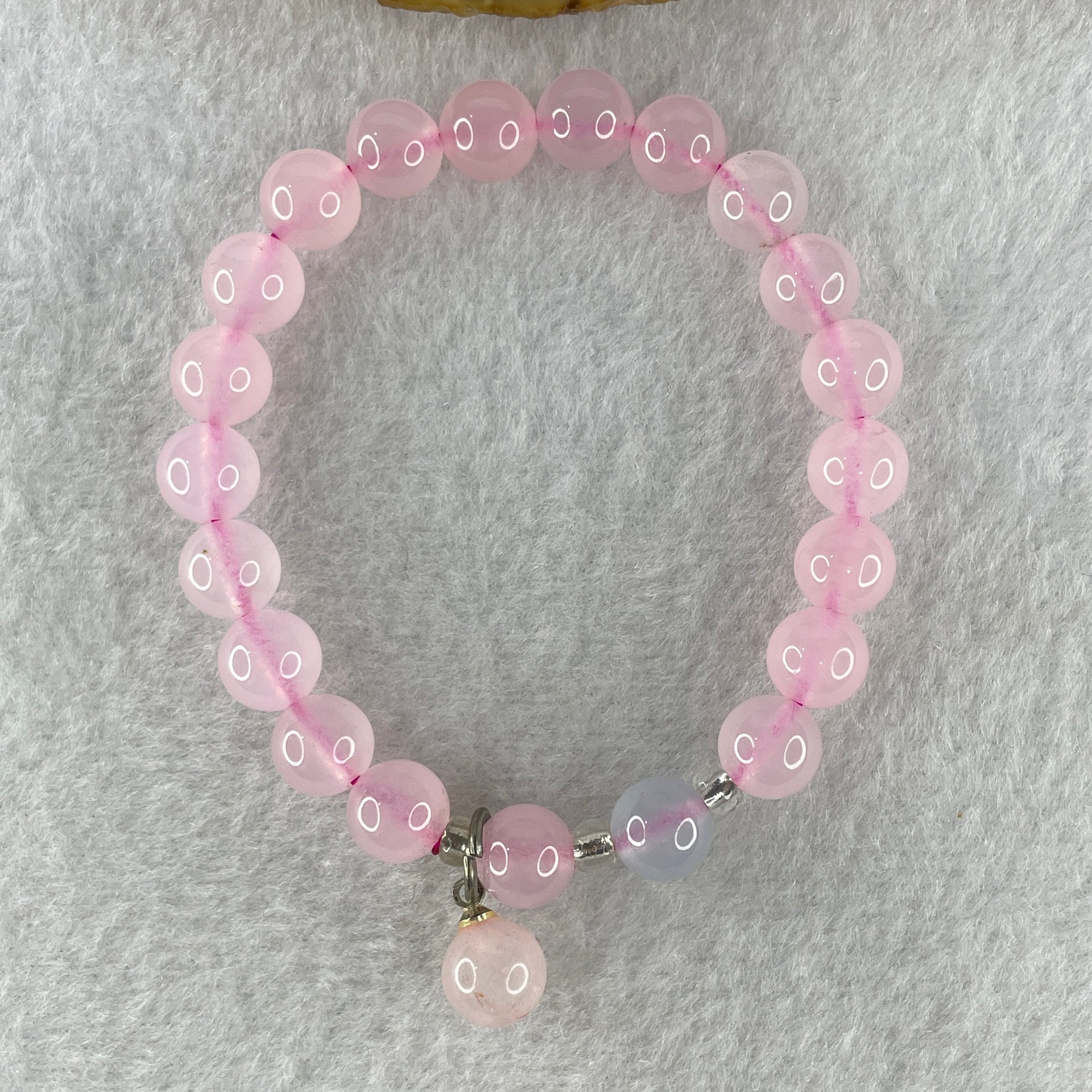 Natural Pink with Blue Chalcedony Agate Beads Bracelet 15.54g 14.5cm 8.0mm 21 Beads