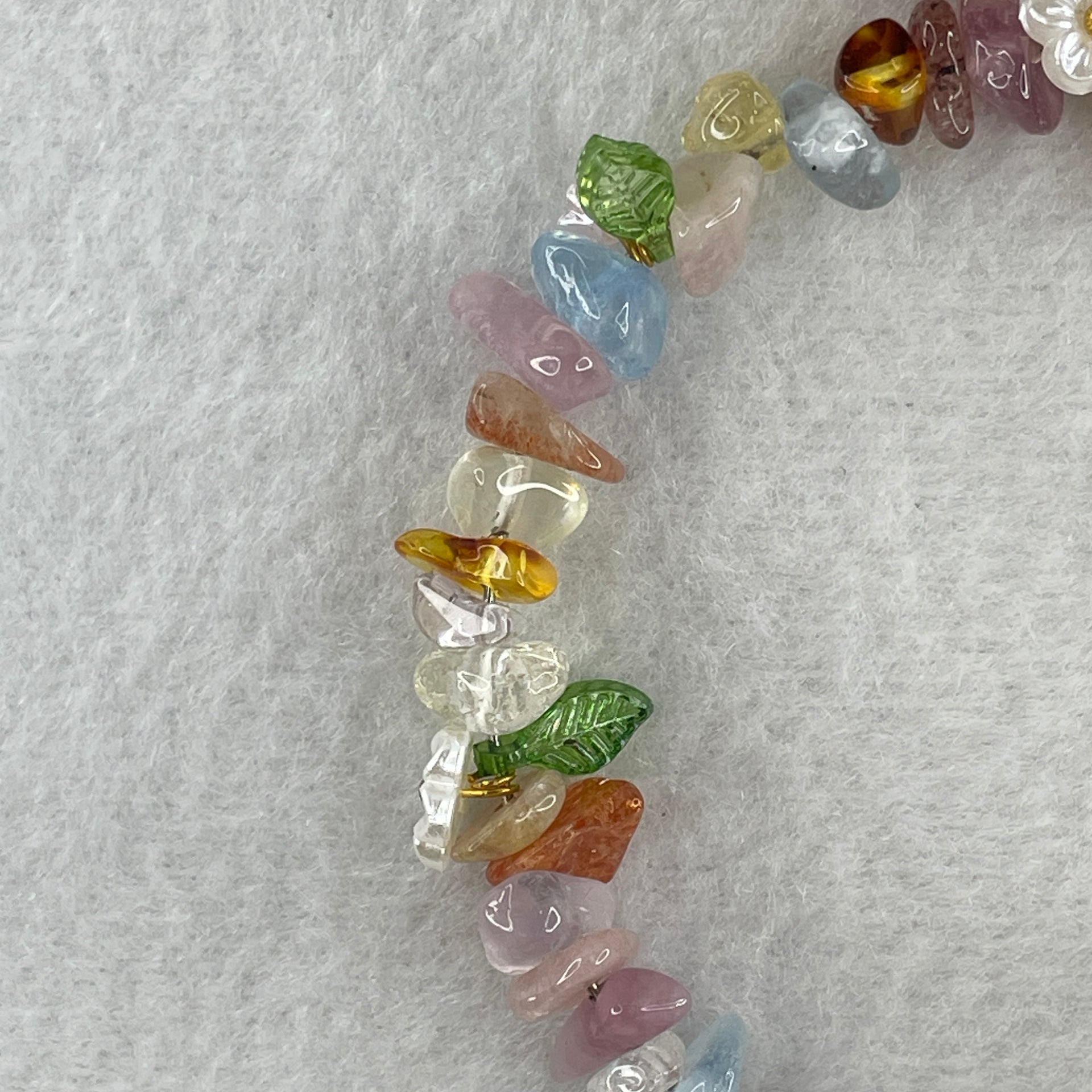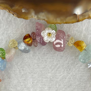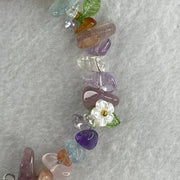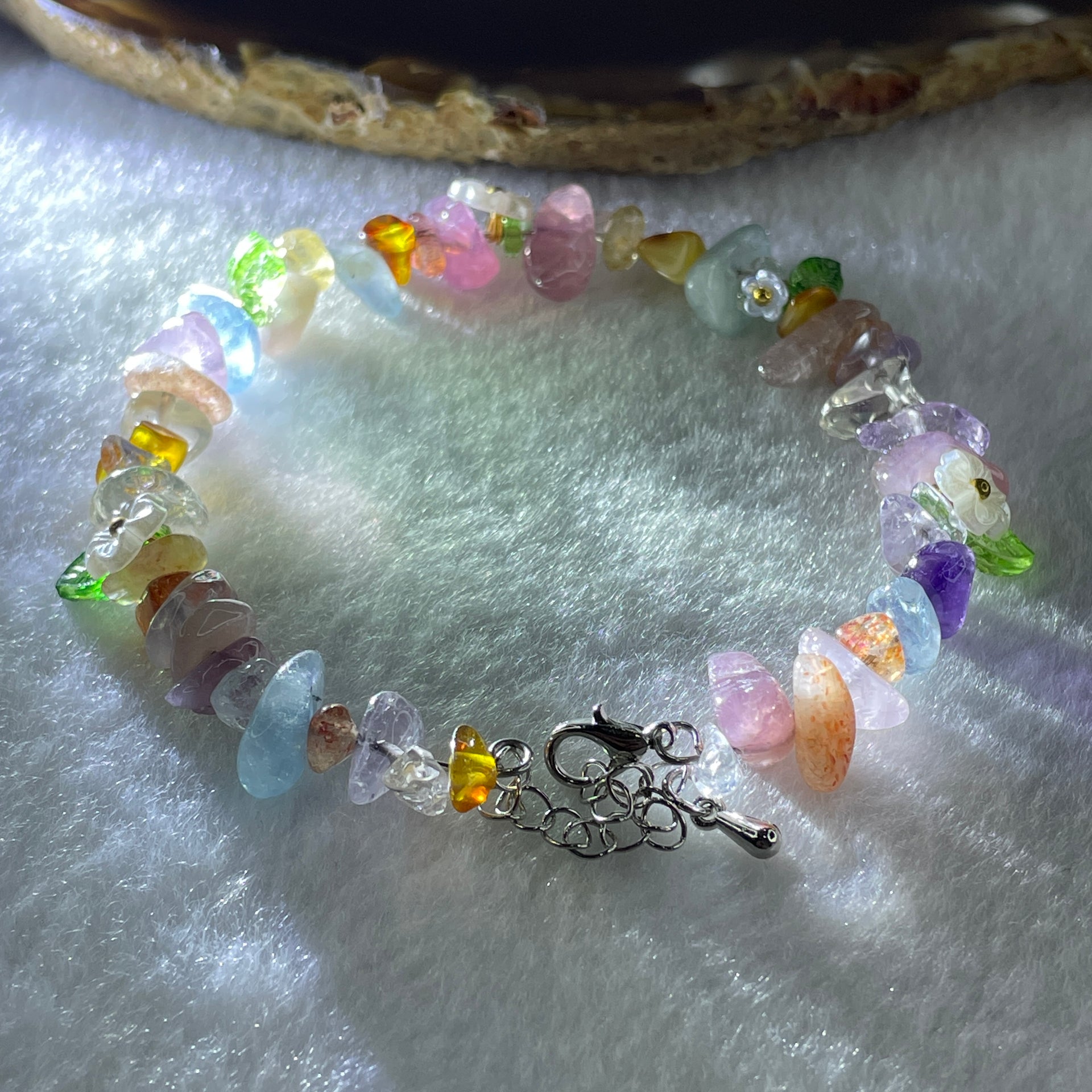 Natural Multi Treasures Mixed Quartz Irregular Shape Bracelet with Flowers Charm 14.03g 17cm 9.9mm 48pcs