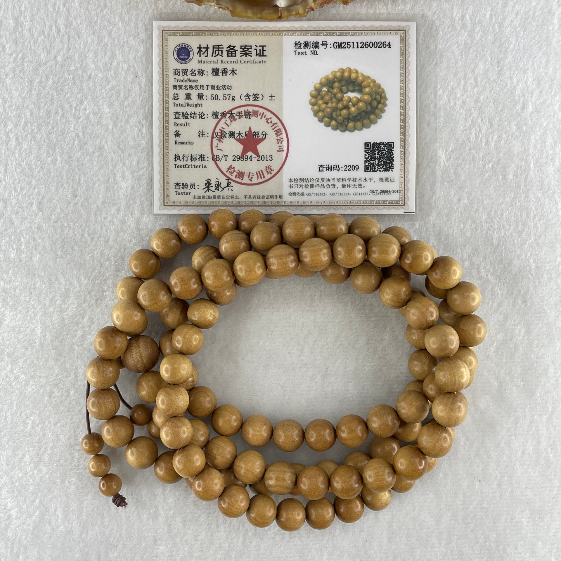 Certified Natural India Old Tree Sandalwood Beads Necklace 50.57g 106cm 10.2mm 108 Beads
