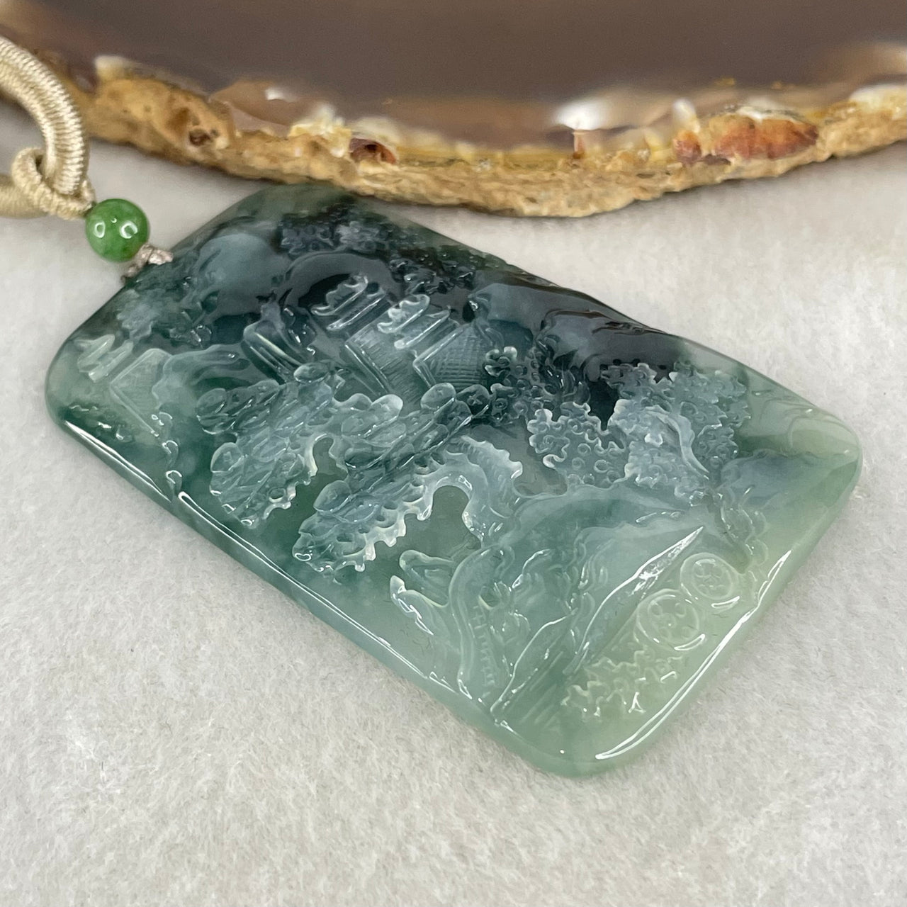 Type A Jelly Semi Icy Blueish Green Jadeite Shan Shui with Guiren Benefactor Pendant 34.79g 61.2 by 41.1 by 5.5mm$5,339.00$5,339.00Unit price / per -