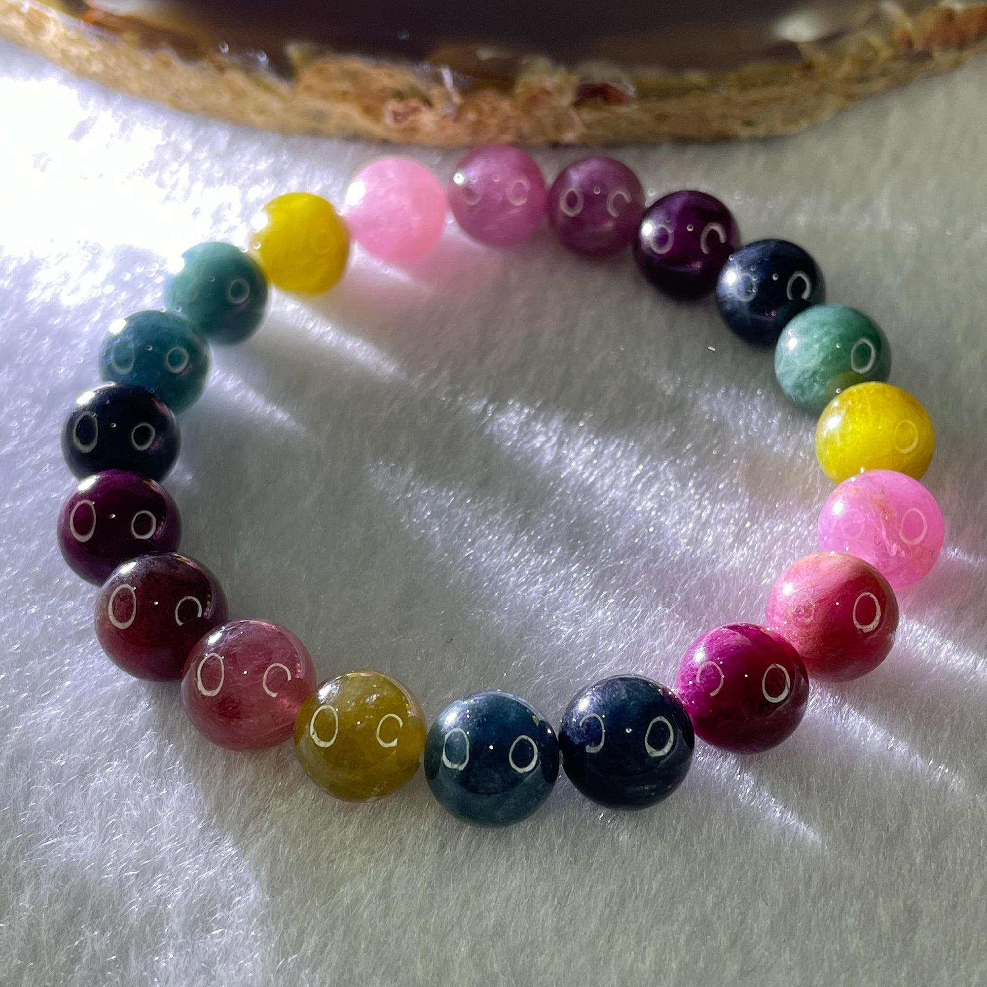 Above Average Grade Natural Intense Rainbow Tourmaline Crystal Beads Bracelet 20.30g 14cm 8.8mm 20 Beads