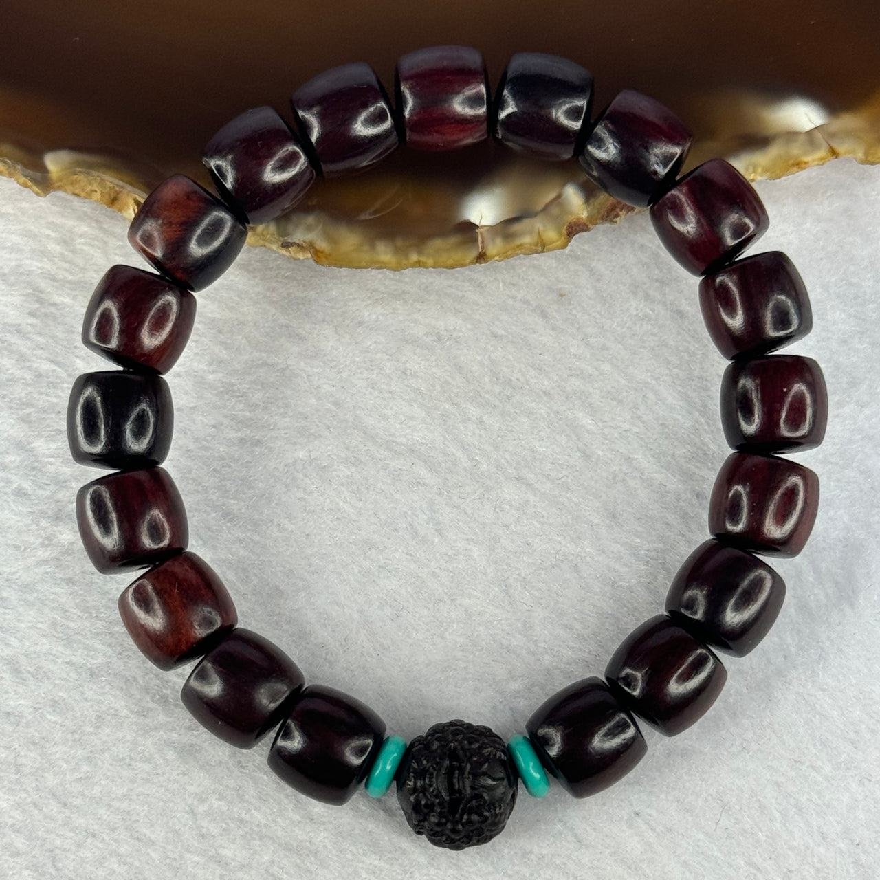 Sale天然血紫檀珠配旋转绿松石唵嘛呢呗美吽强力咒手链天然血檀木旋转唵嘛呢吽咪吽手链 10.71g 15cm 8.4mm 18 珠 / 30.1 x 17.4 x 6.4mm (轻微裂纹)$180.00$180.00$380.00Unit price / per -