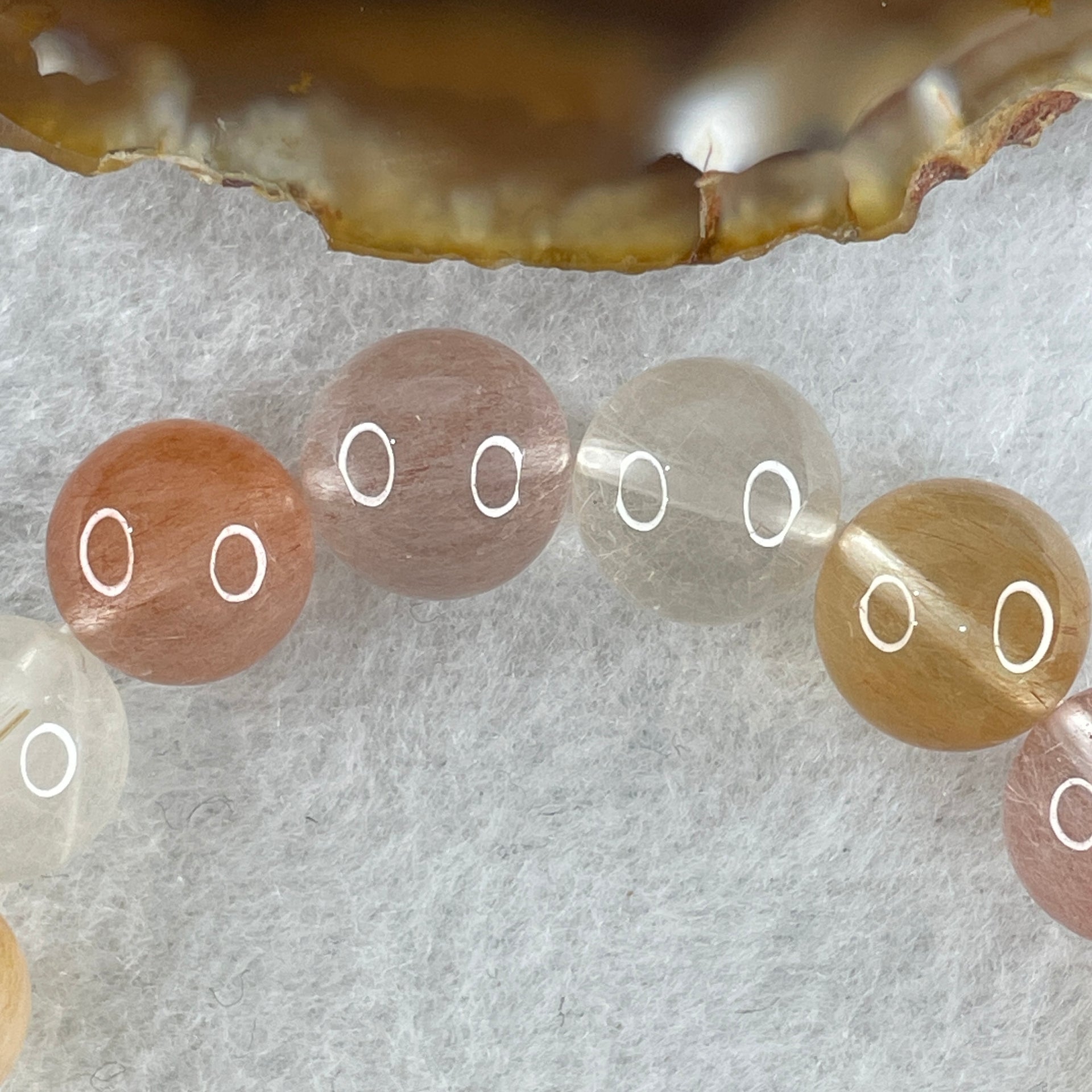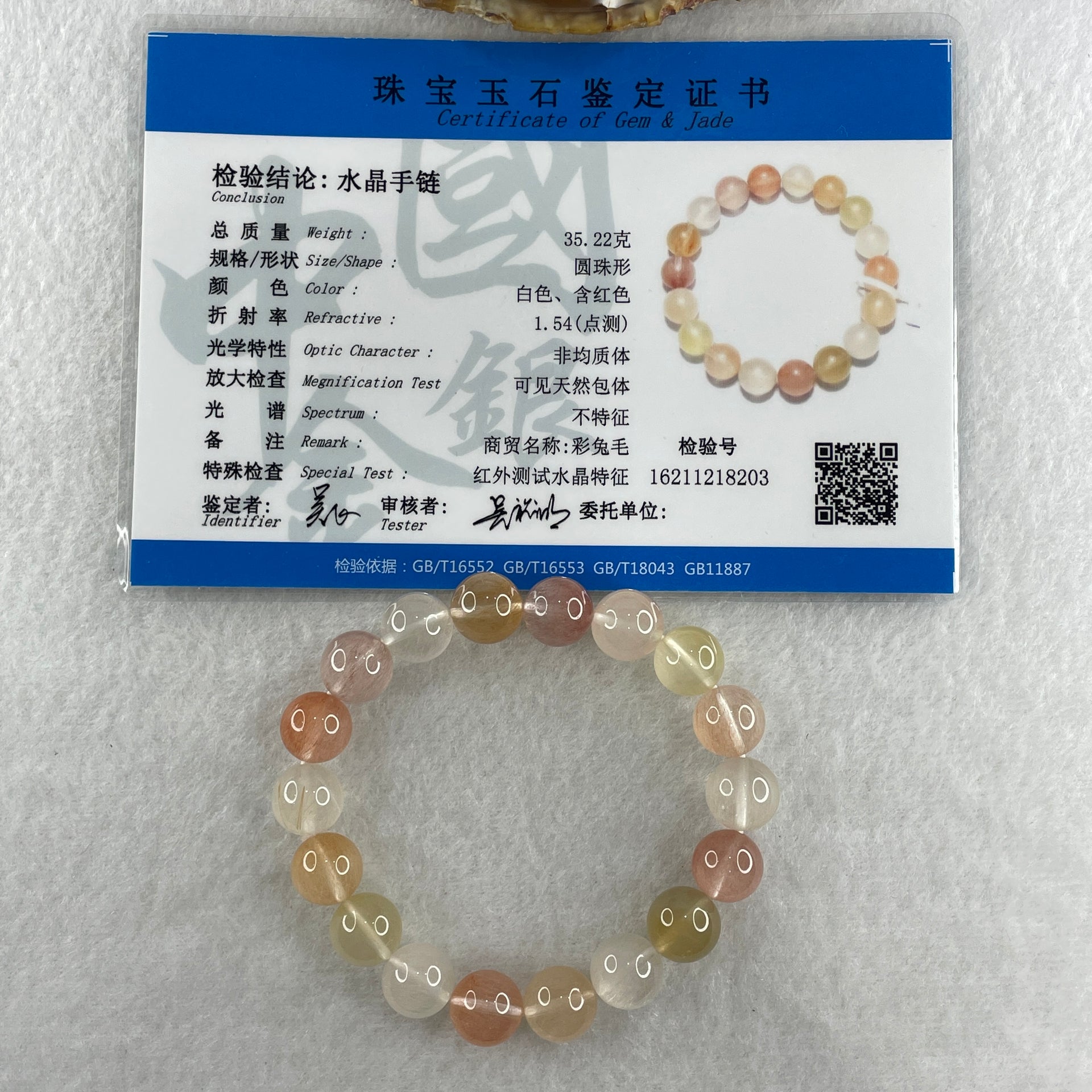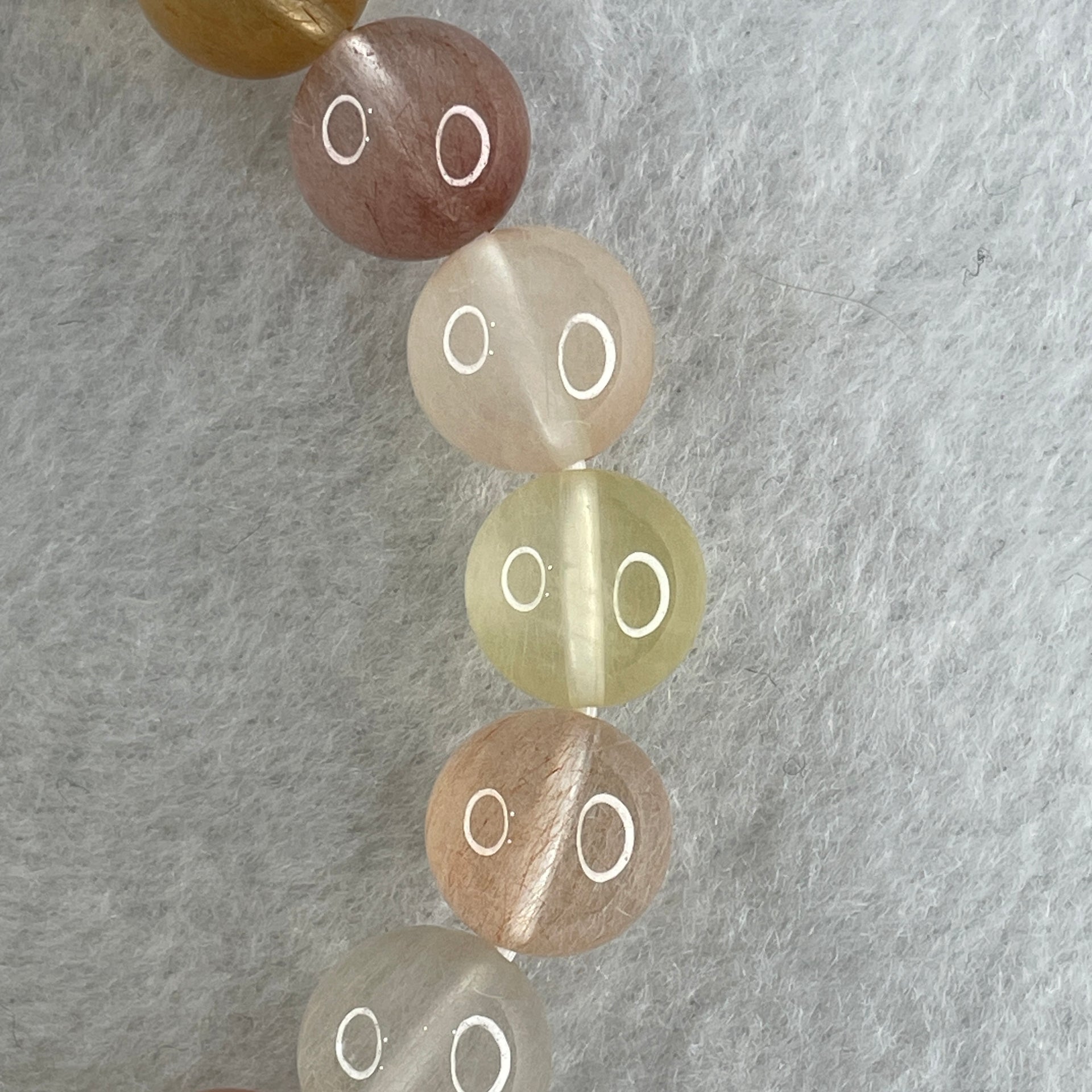 Certified Natural Good Grade Muti Color Rabbit Hair Rutilated Quartz Beads Bracelet 35.22g 16.5cm 11.3mm 18Beads