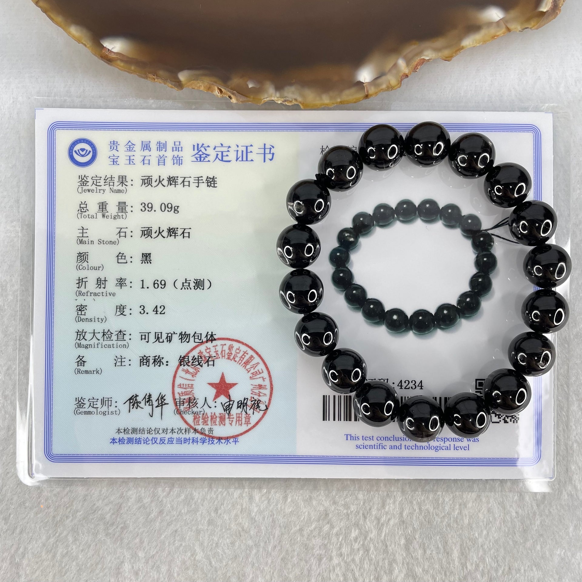 Good Grade Natural Hypersthene Beads Bracelet 39.09g 16.5mm 10.8mm 18 Beads