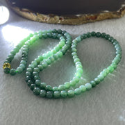 Natural Type A Blueish Green Jadeite Beads Necklace 28.66g 58cm 5.4mm 122 Beads