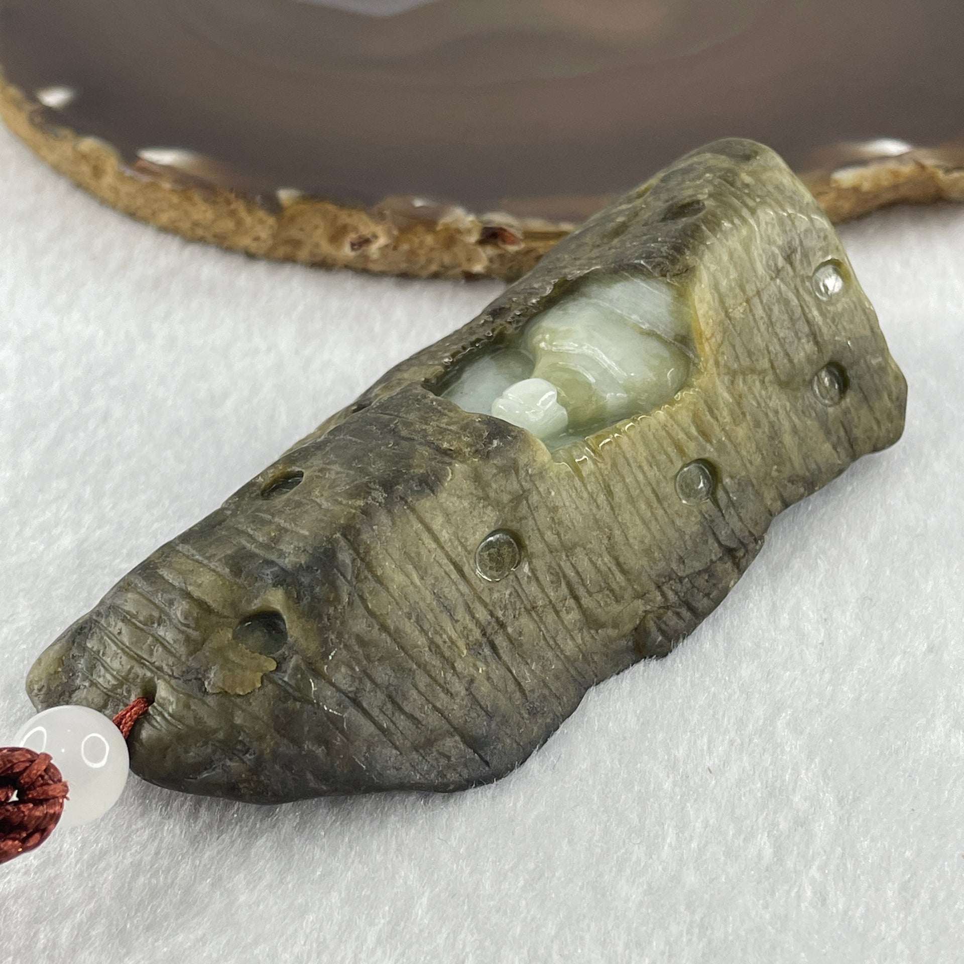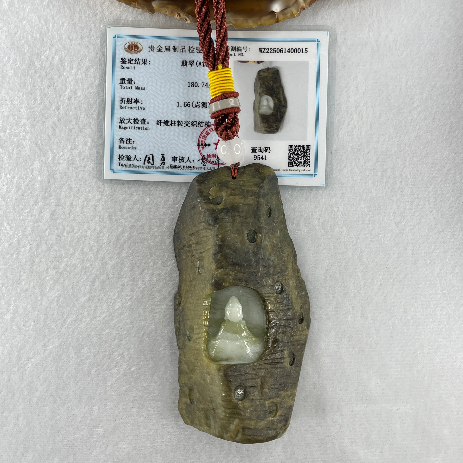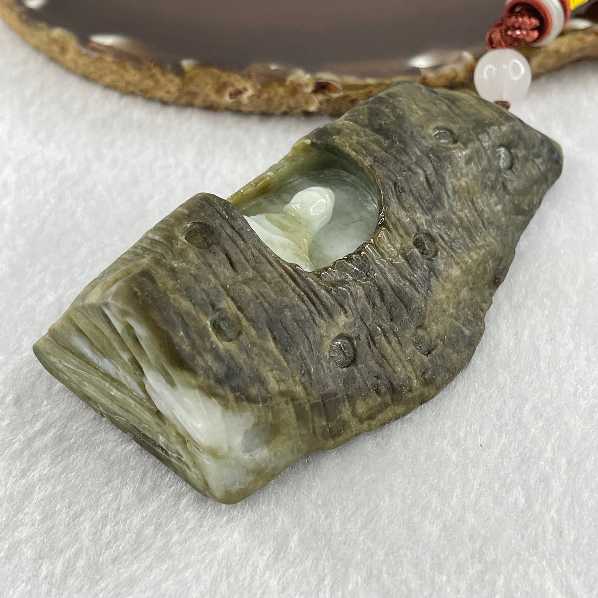 Natural Type A Brown with Light Blueish Green Jadeite Meditating Buddha Handplay 180.45g 92.9 by 50.2 by 28.0mm