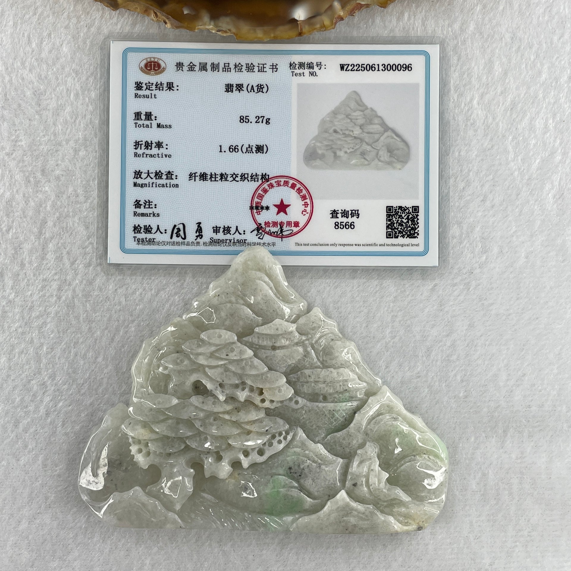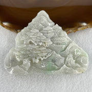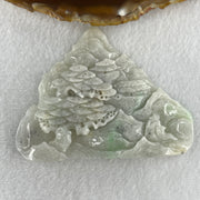 Natural Type A Faint Lavender Faint Green with Grey Wuji Patches Jadeite Shan Shui Scenic with Gui Ren Benefactor 85.27g 66.8 by 88.4 by 10.5mm