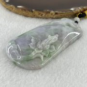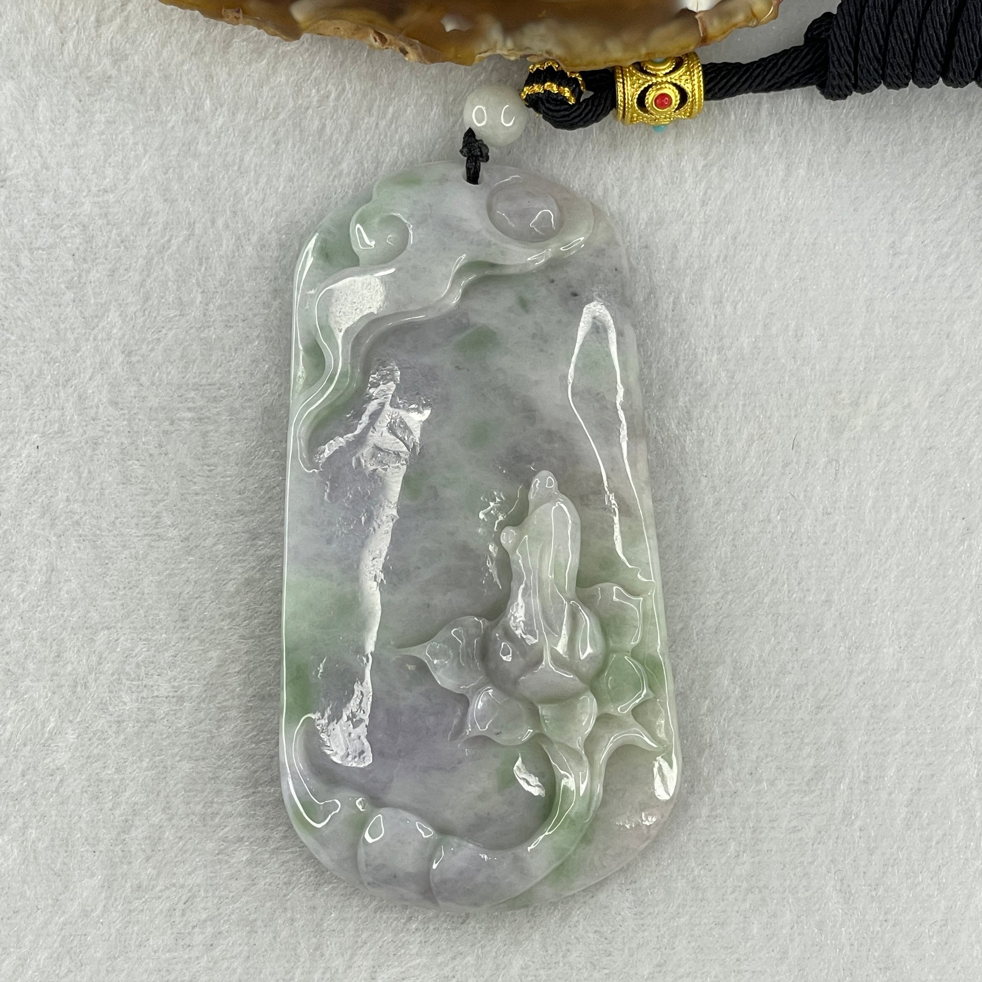 Natural Type A Lavender with Light Green Jadeite People Seeking Enlightenment Pendant 79.86g 80.2 by 42.8 by 11.3mm