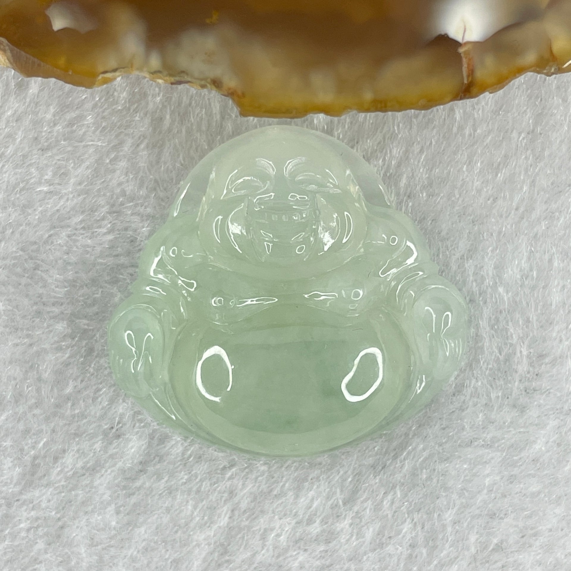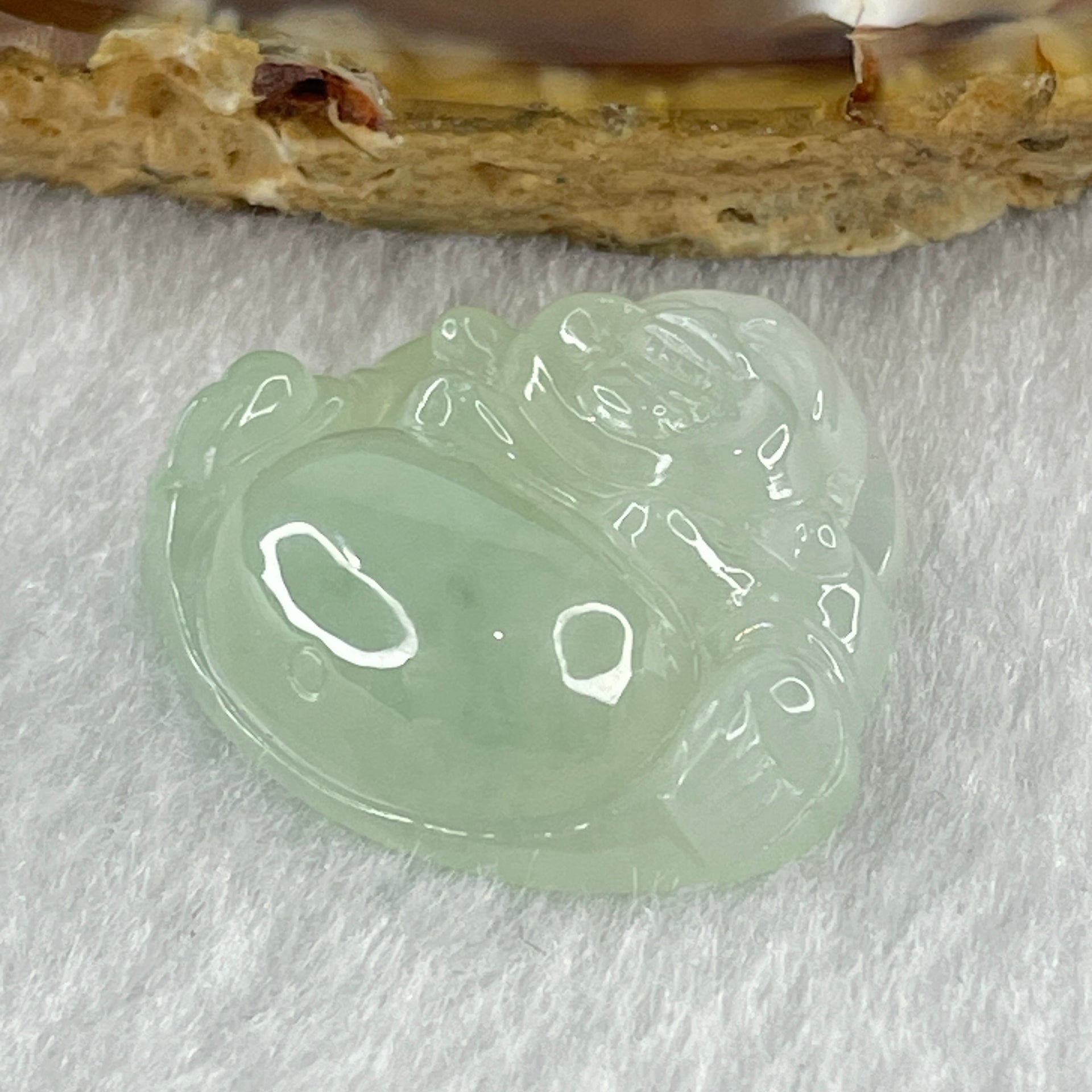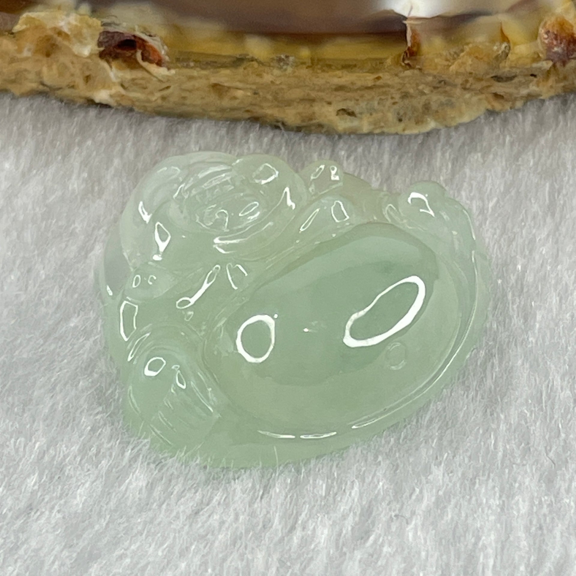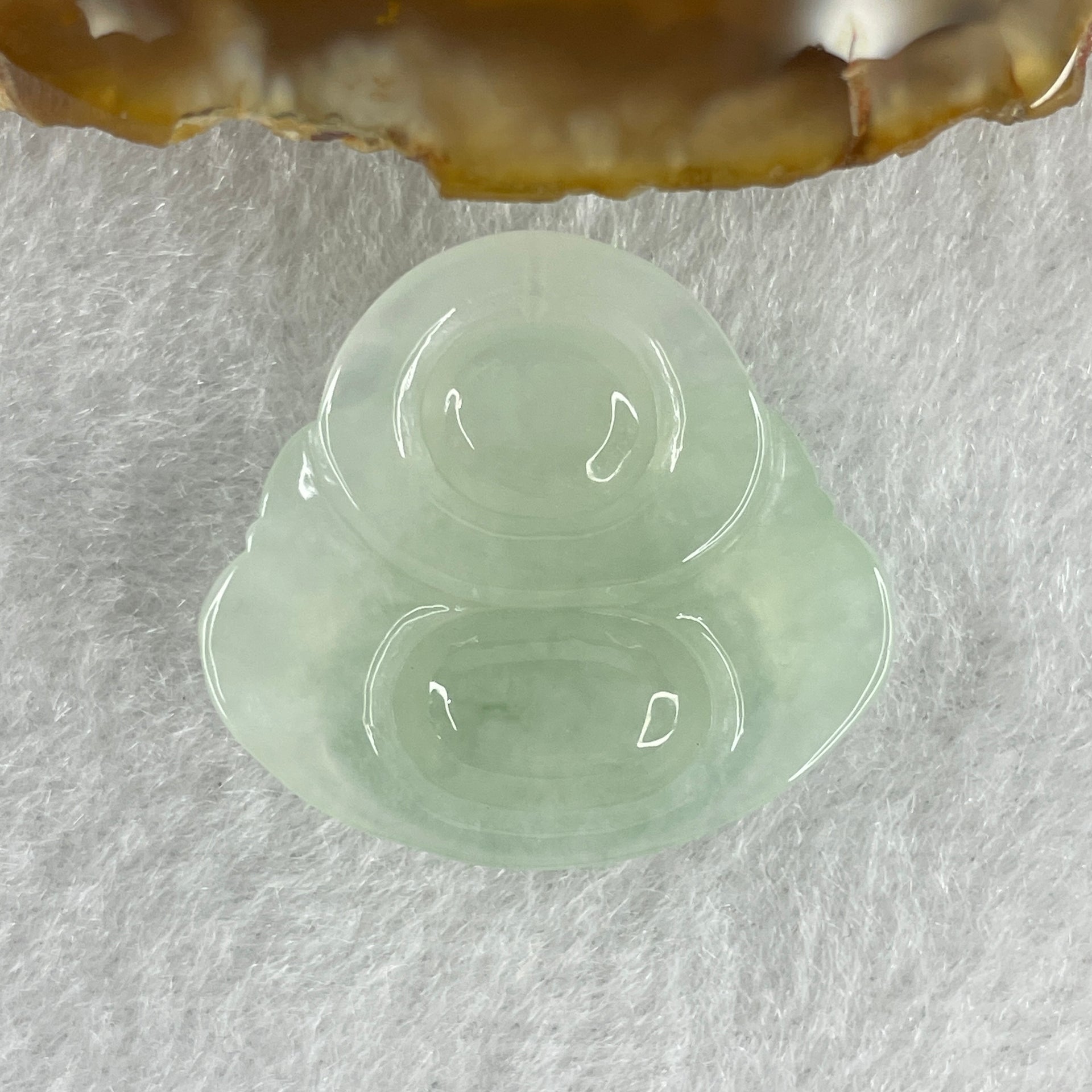 Natural Type A Semi Icy Faint Sky Blue to White Jadeite Milo Laughing Buddha Pendant 6.75g 24.3 by 26.2 by 7.7mm