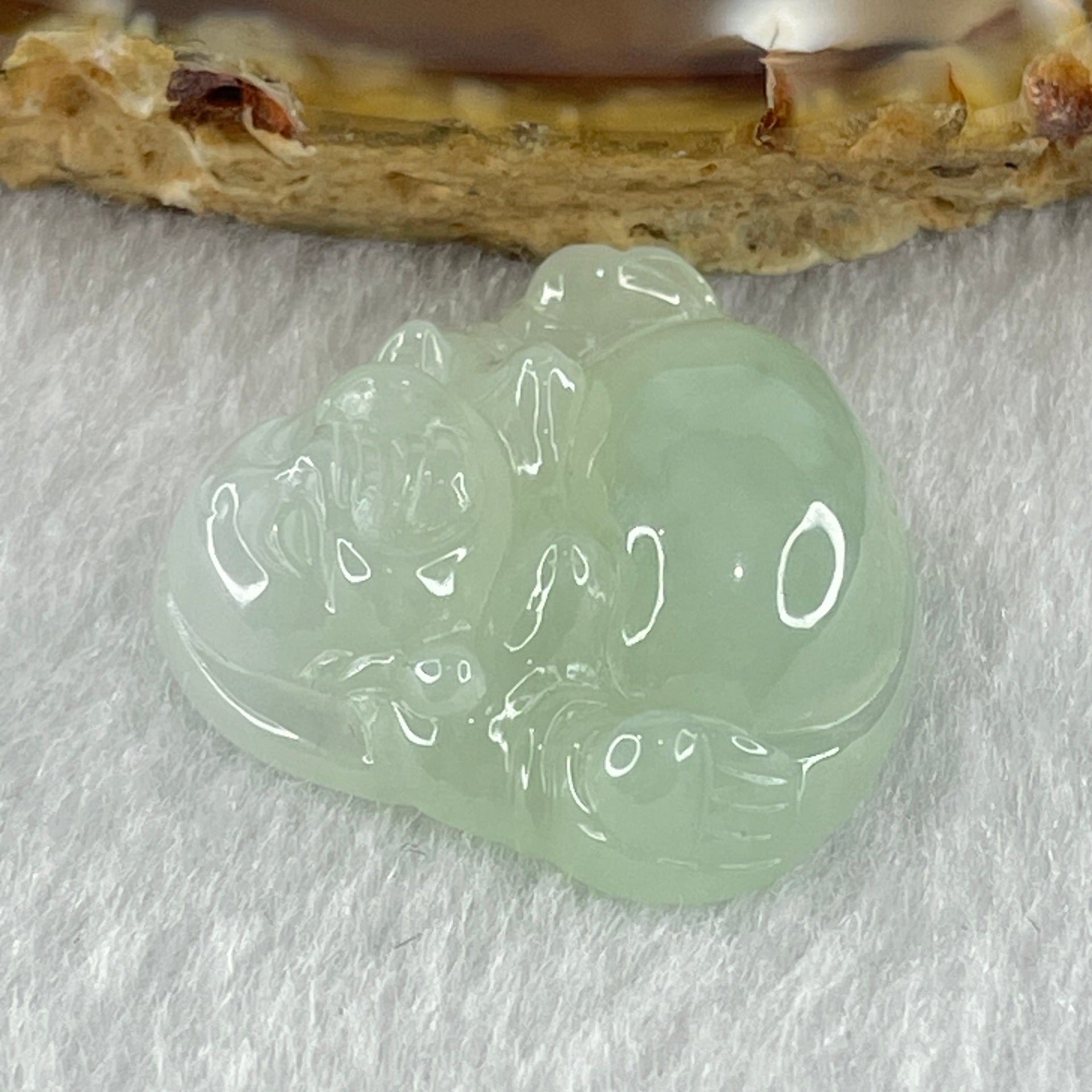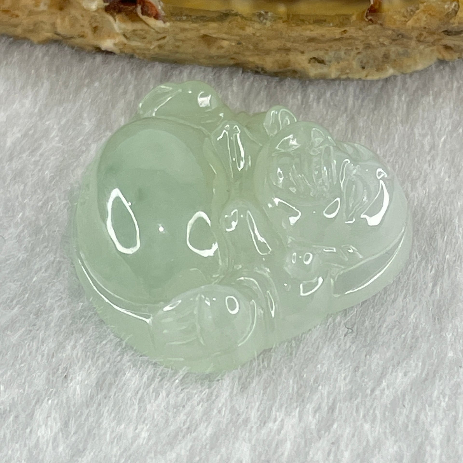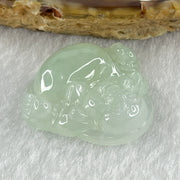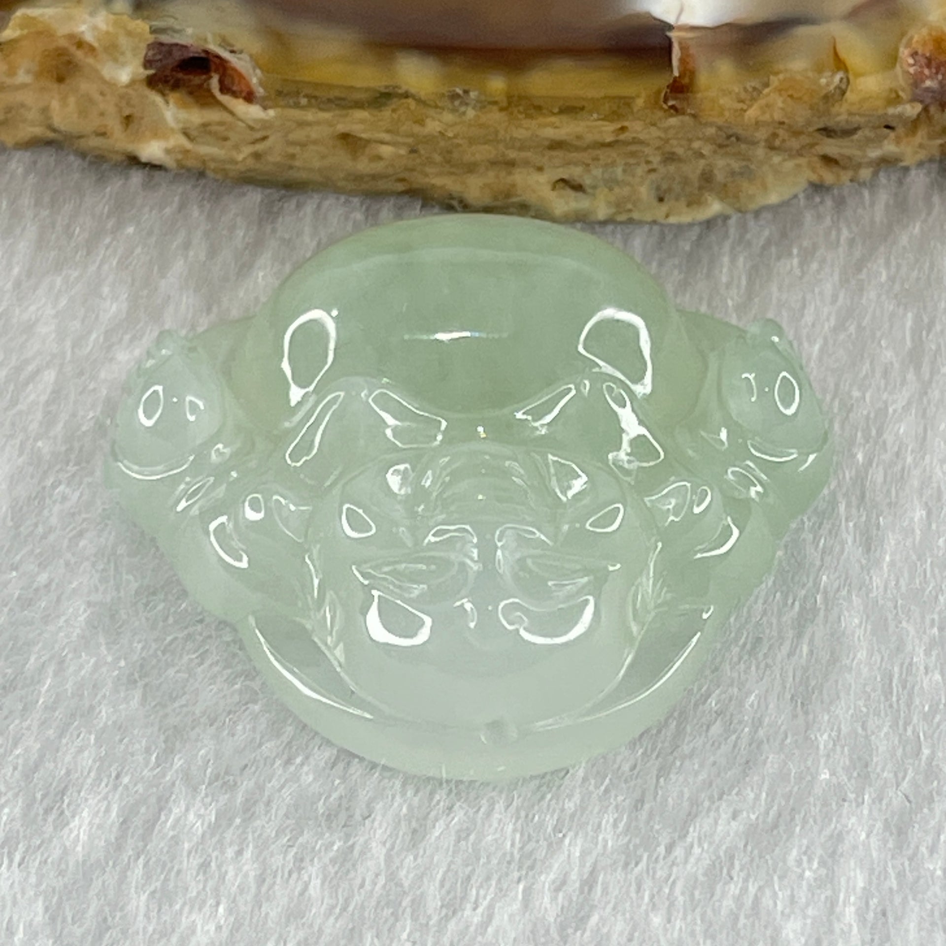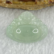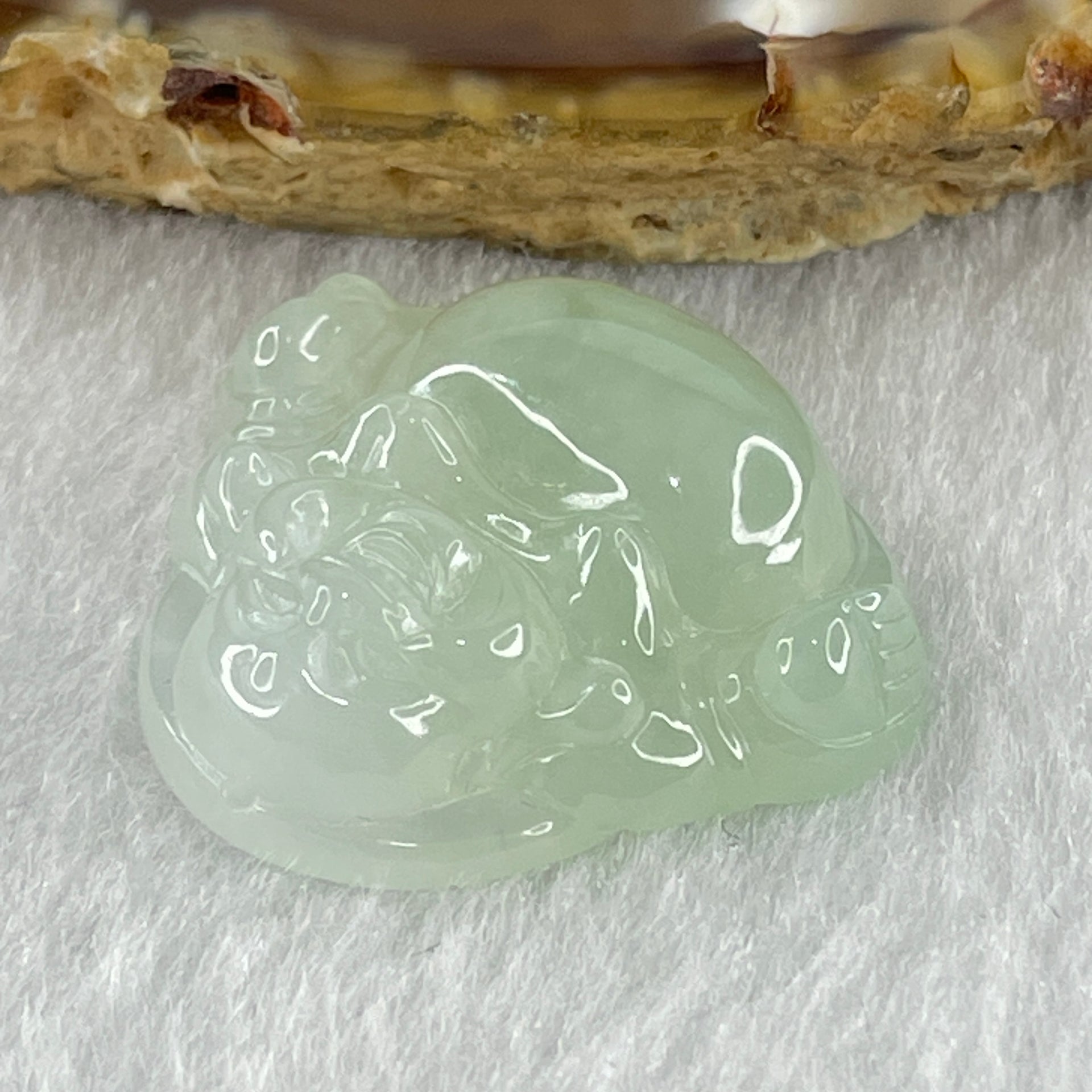 Natural Type A Semi Icy Faint Sky Blue to White Jadeite Milo Laughing Buddha Pendant 6.75g 24.3 by 26.2 by 7.7mm