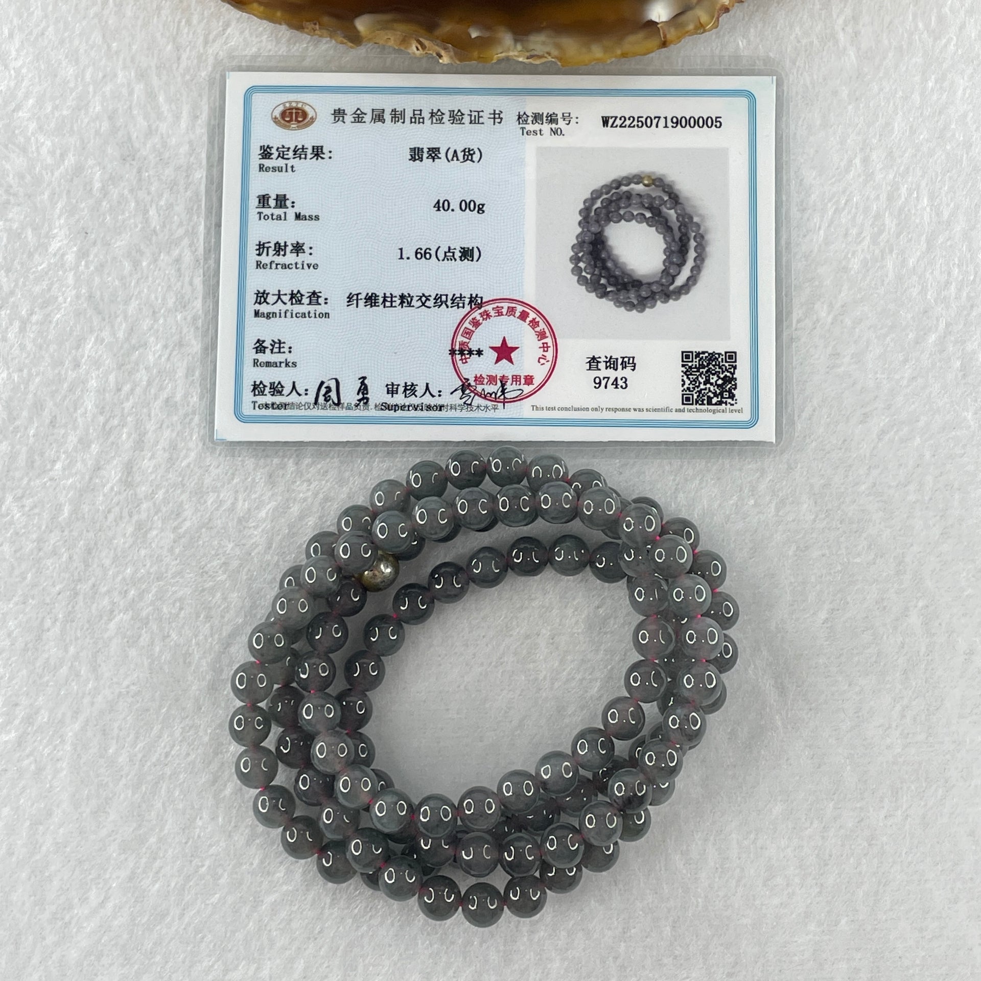 Natural Type A Semi Icy Wuji Grey Jadeite Beads Necklace 40.00g 60cm 6.0mm 109 Beads