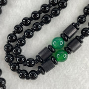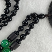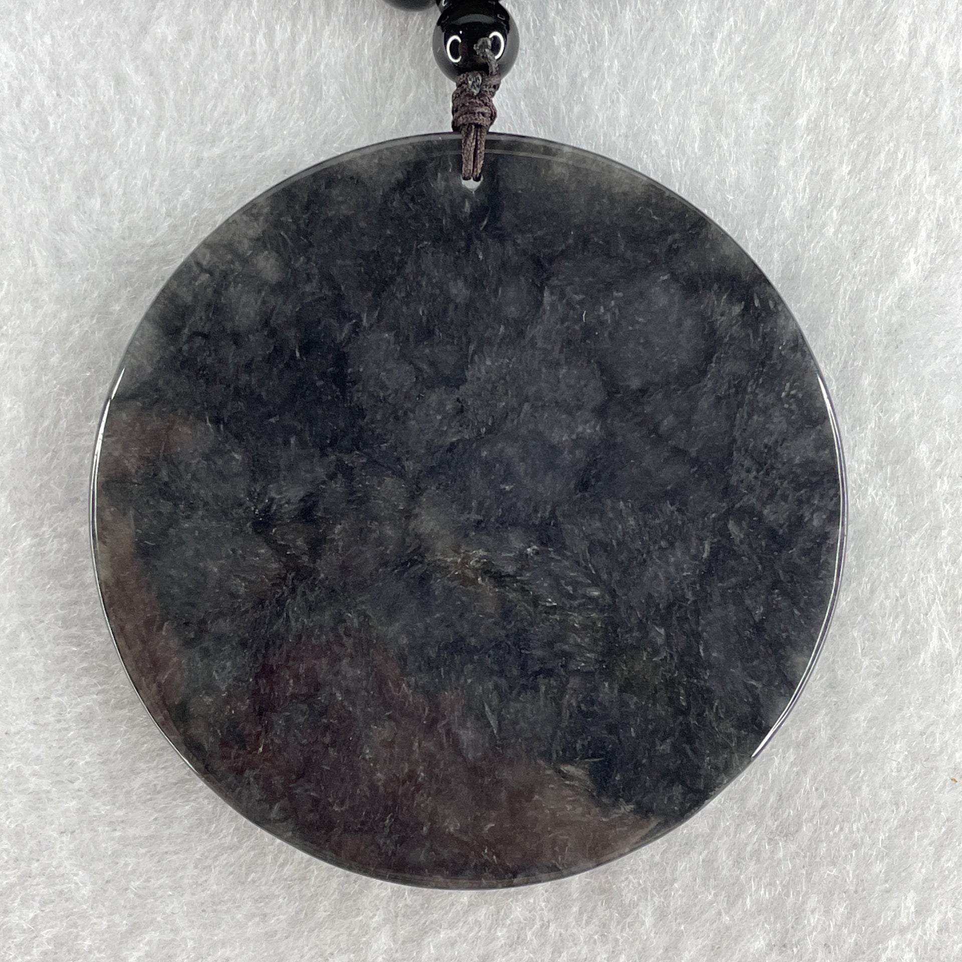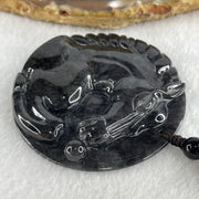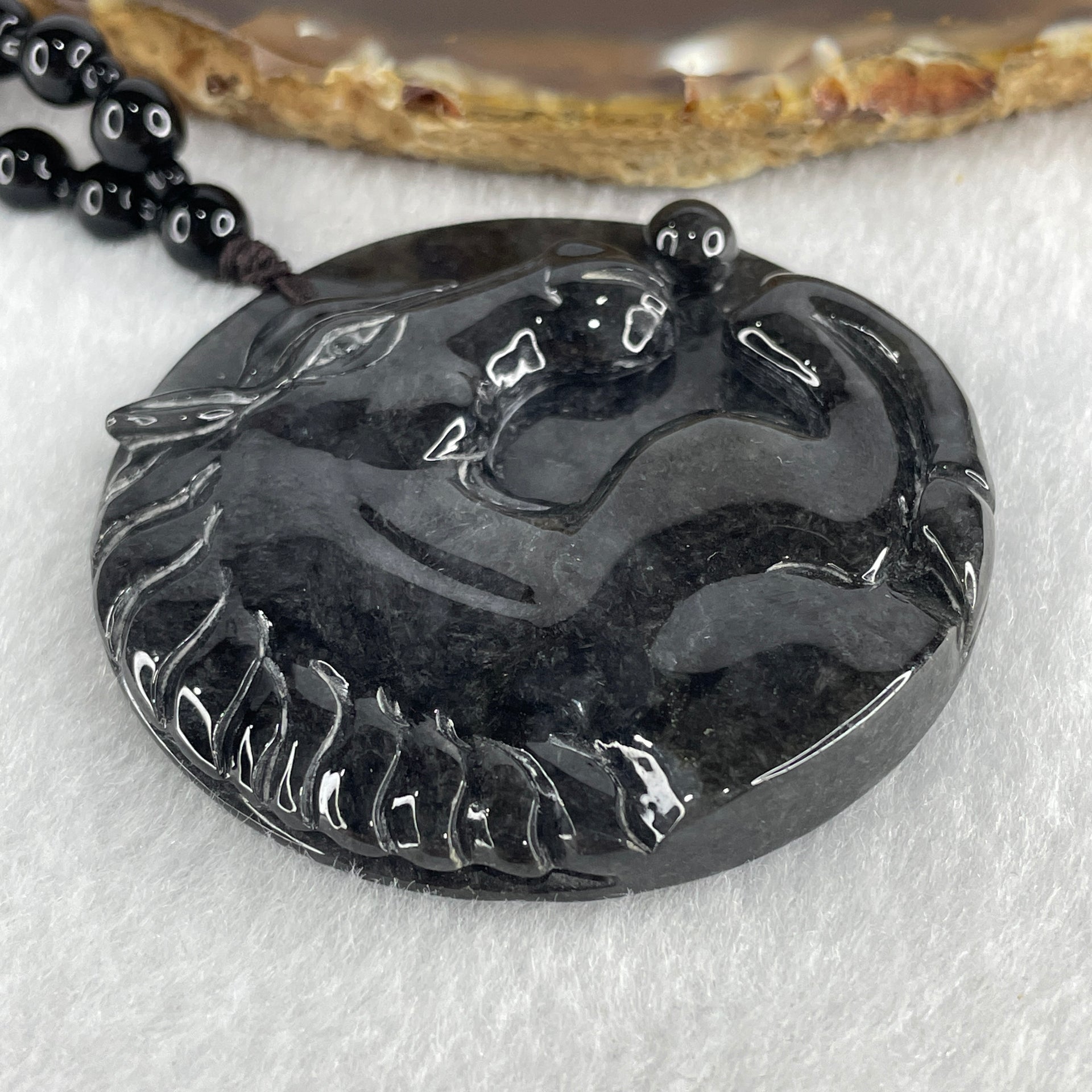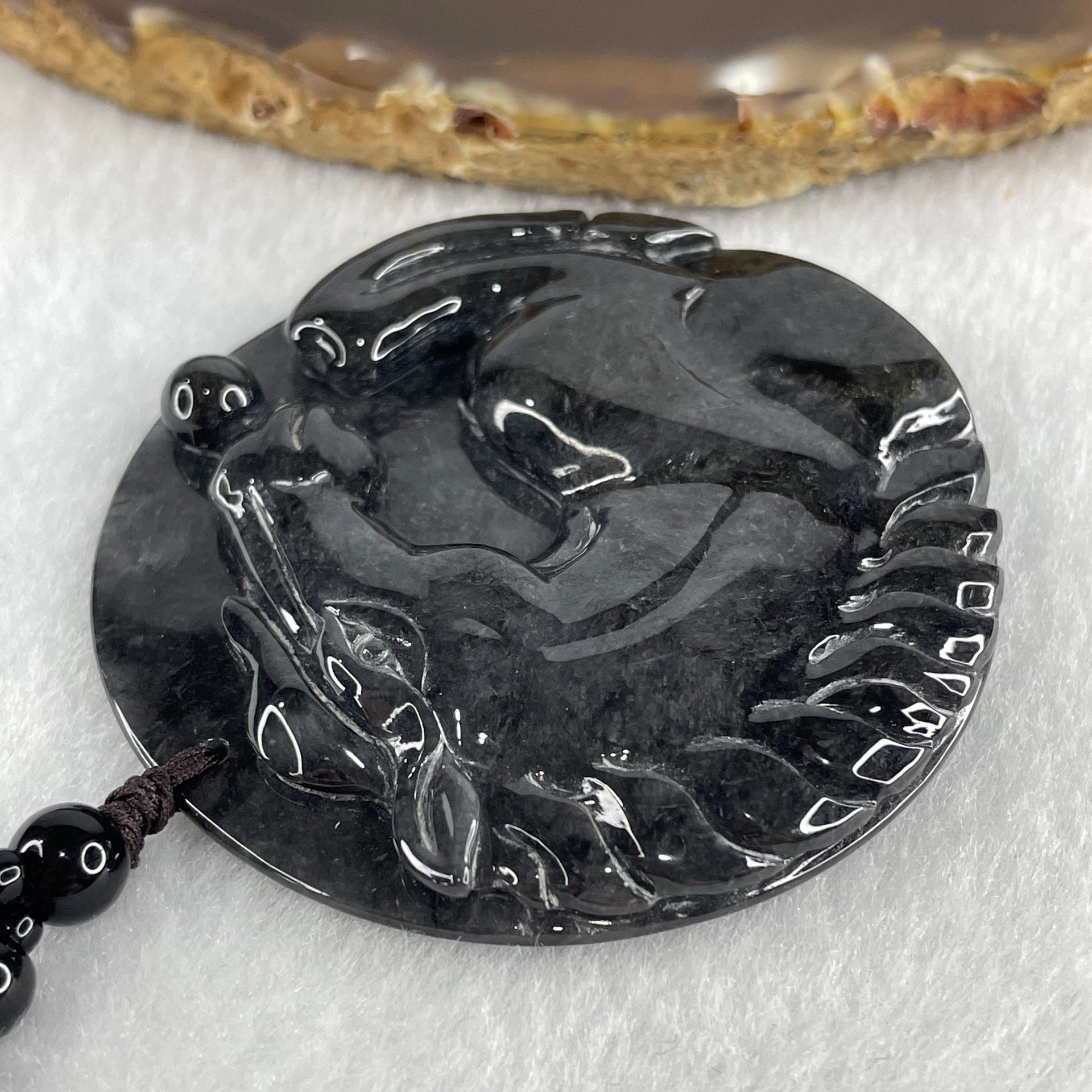 Natural Type A Translucent Wuji Grey Black Horse Pendant with Onyx and Green Agate Beads Necklace 38.92g 54.5 by 54.4 by 7.4mm
