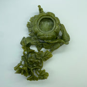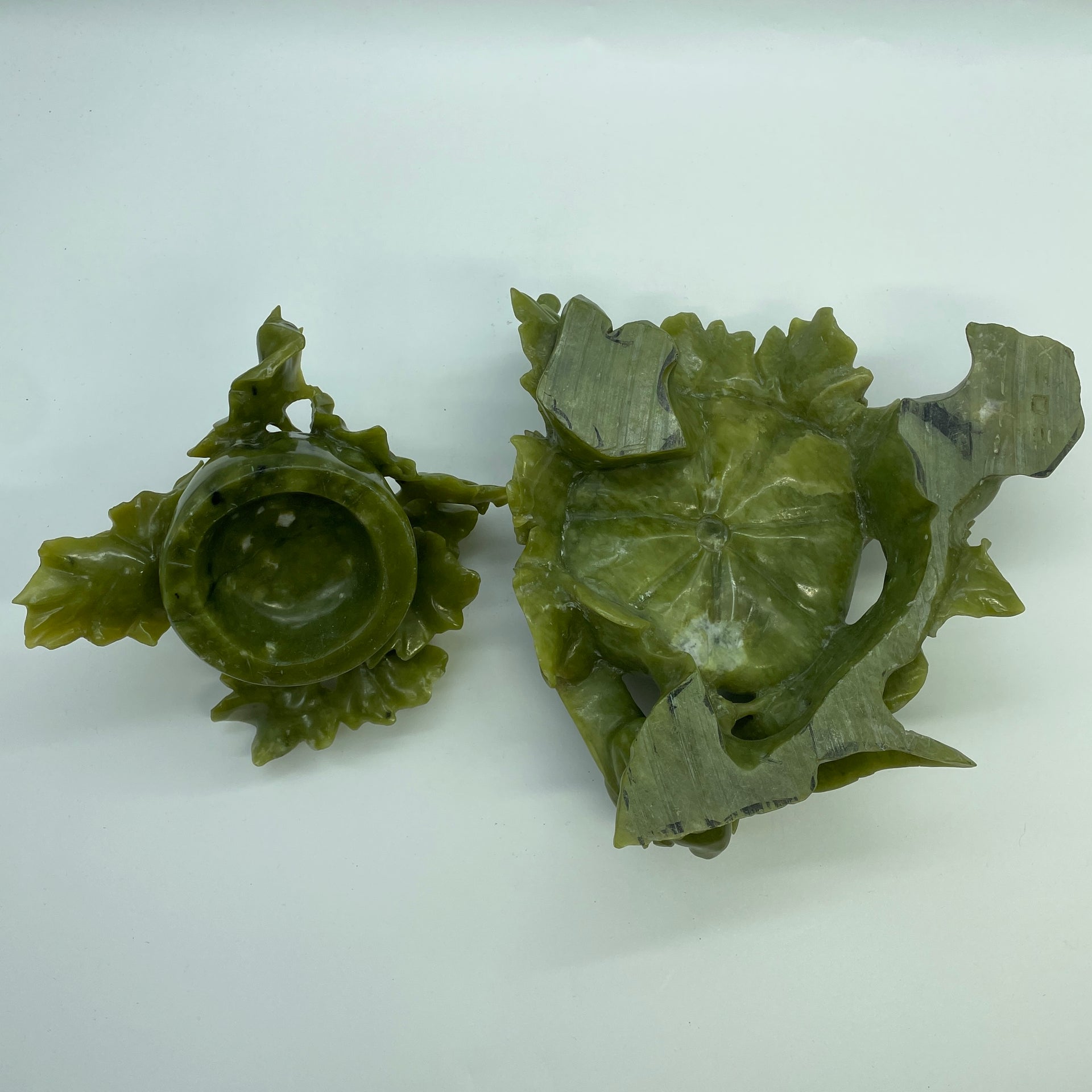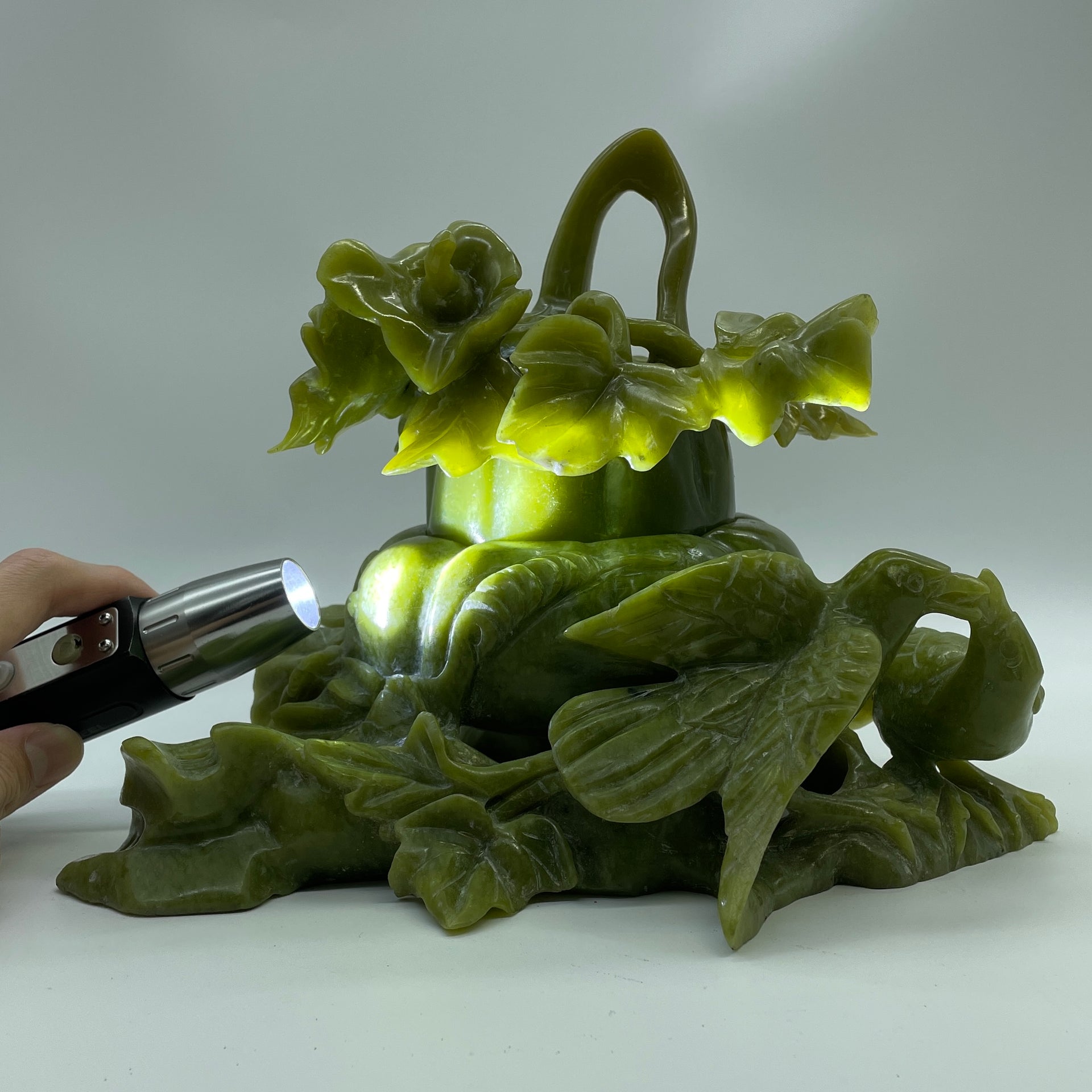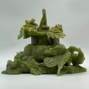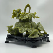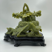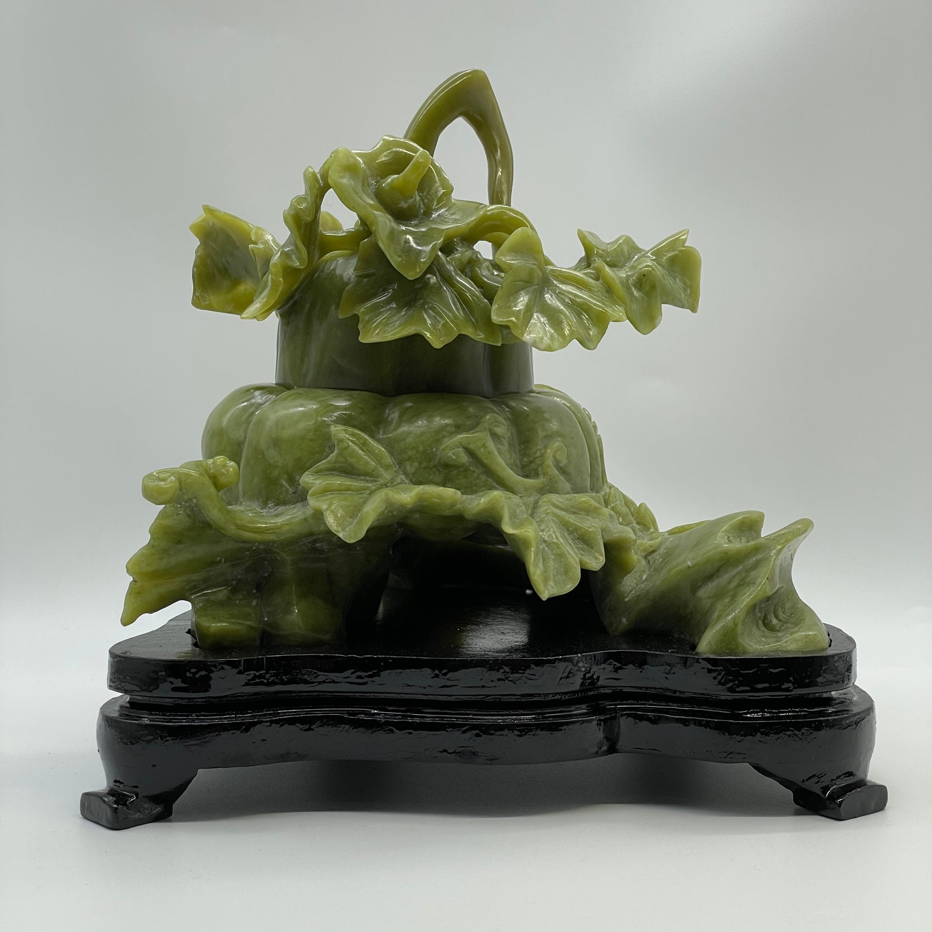 Natural Yellowish Green Serpentine Pumpkin with Twin Birds with Wooden Stand Display 3,622.3g 273.0 by 261.0 by 230.0mm