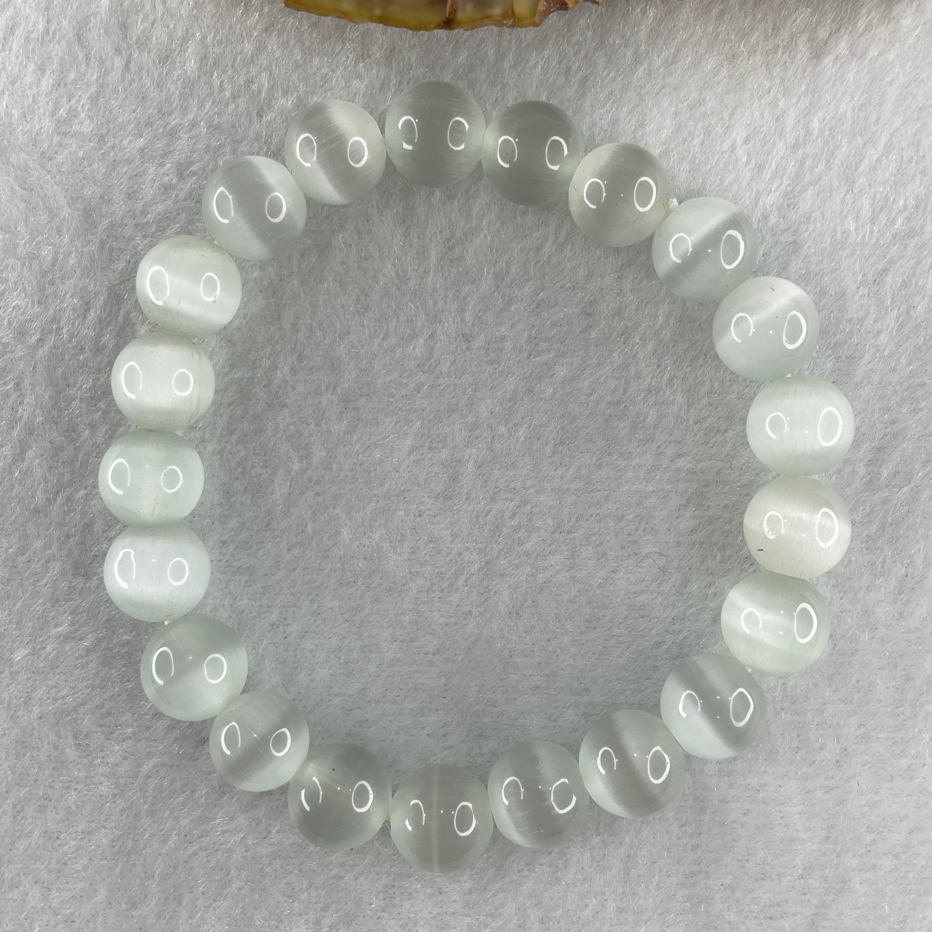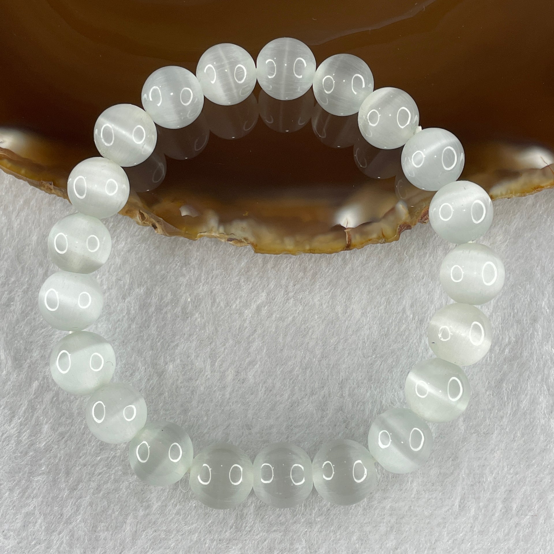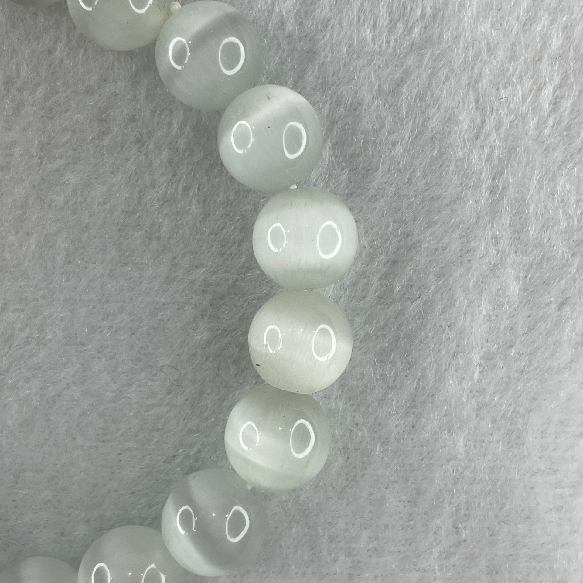 White Cat's Eye Glass Beads Bracelet 26.52g 16.5cm 10.1mm 21 Beads